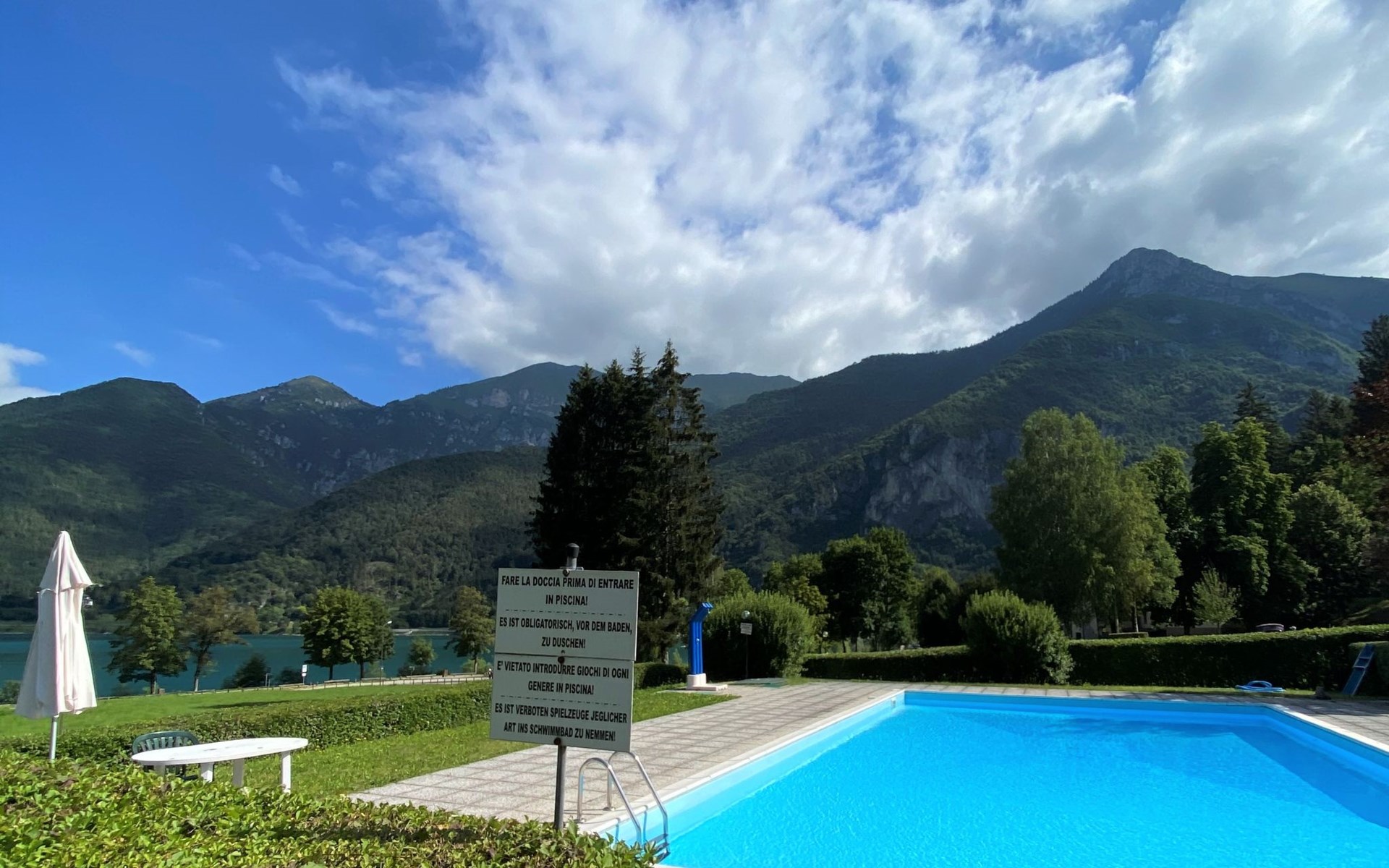 Residenz "Belvedere". 600 m vom Zentrum von Molina di Ledro, in einem Wohnquartier, 100 m vom See. Zur Mitbenutzung: Garten 500 m2 mit Rasen, Schwimmbad (10 x 5 m, saisonale Verfügbarkeit: 21.Jun. - 24.Aug.). Aussendusche. Zufahrt bis zum Haus. Supermarkt, Restaurant, Bar, Fahrradverleih 300 m, Bushaltestelle 550 m. Nahe gelegene Sehenswürdigkeiten: Riva del Garda 12 km. Bekannte Seen in der Umgebung sind gut erreichbar: Garda 12 km. Bitte beachten: Fahrzeug empfohlen.