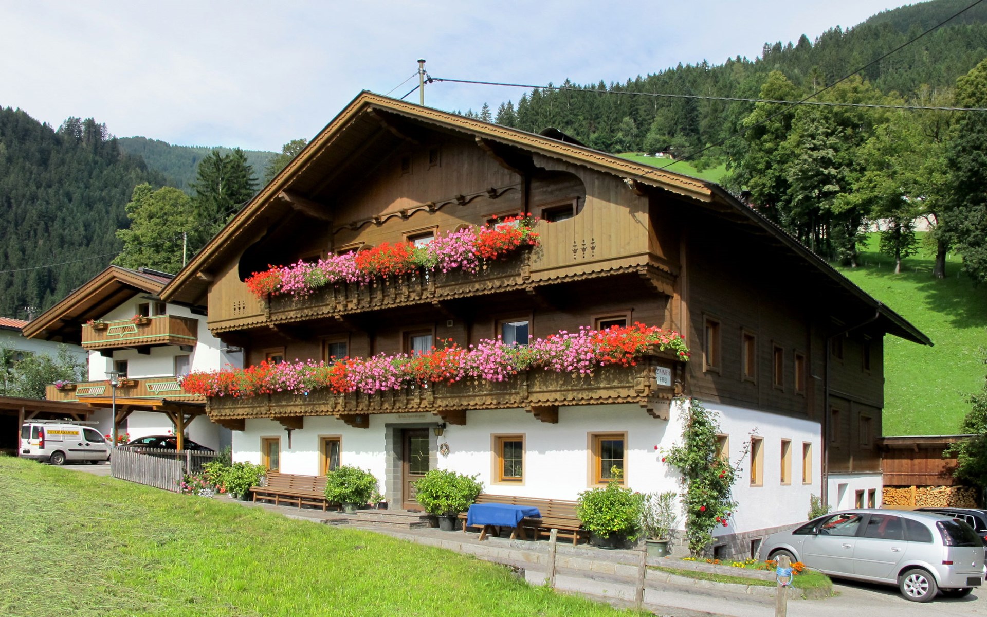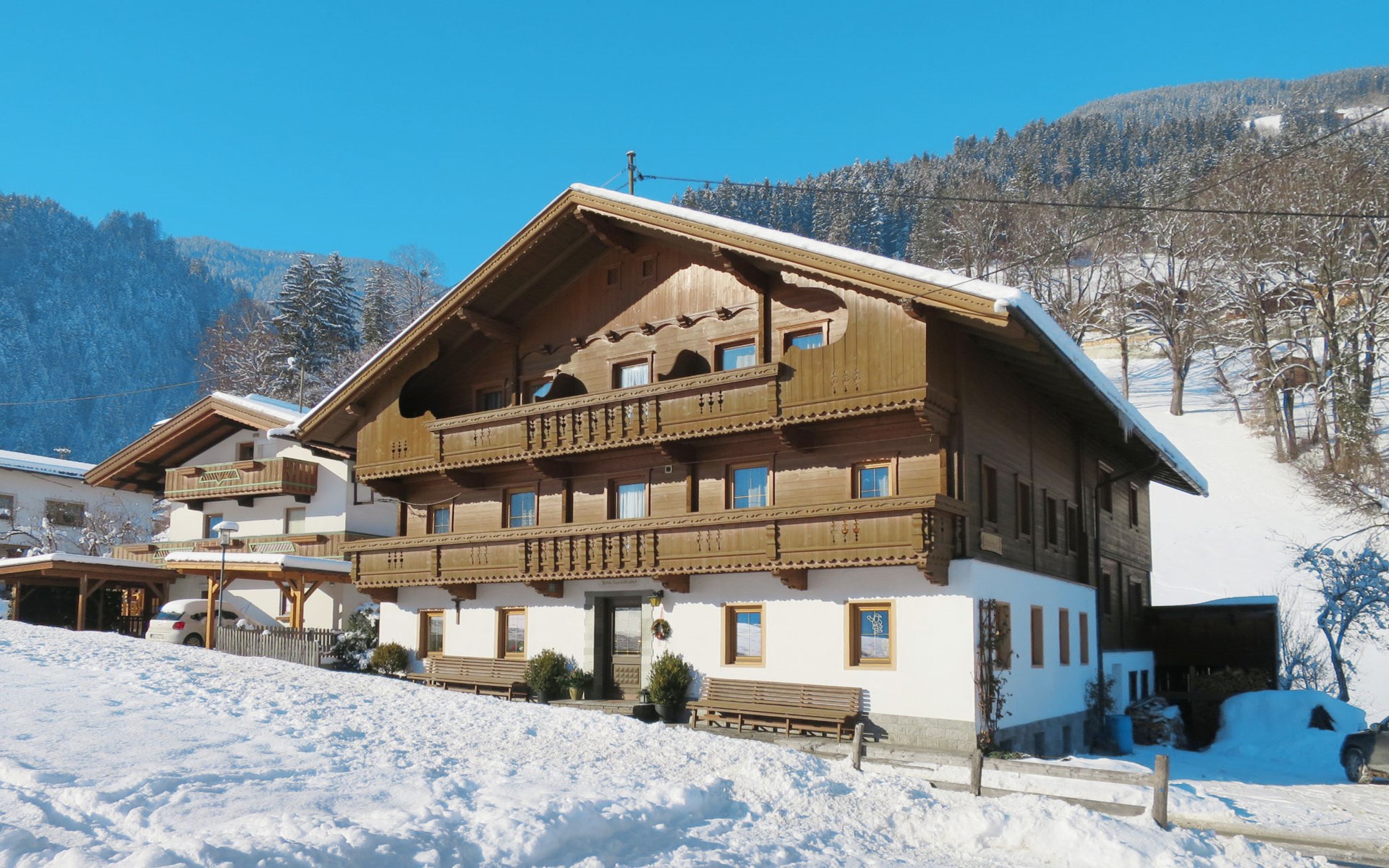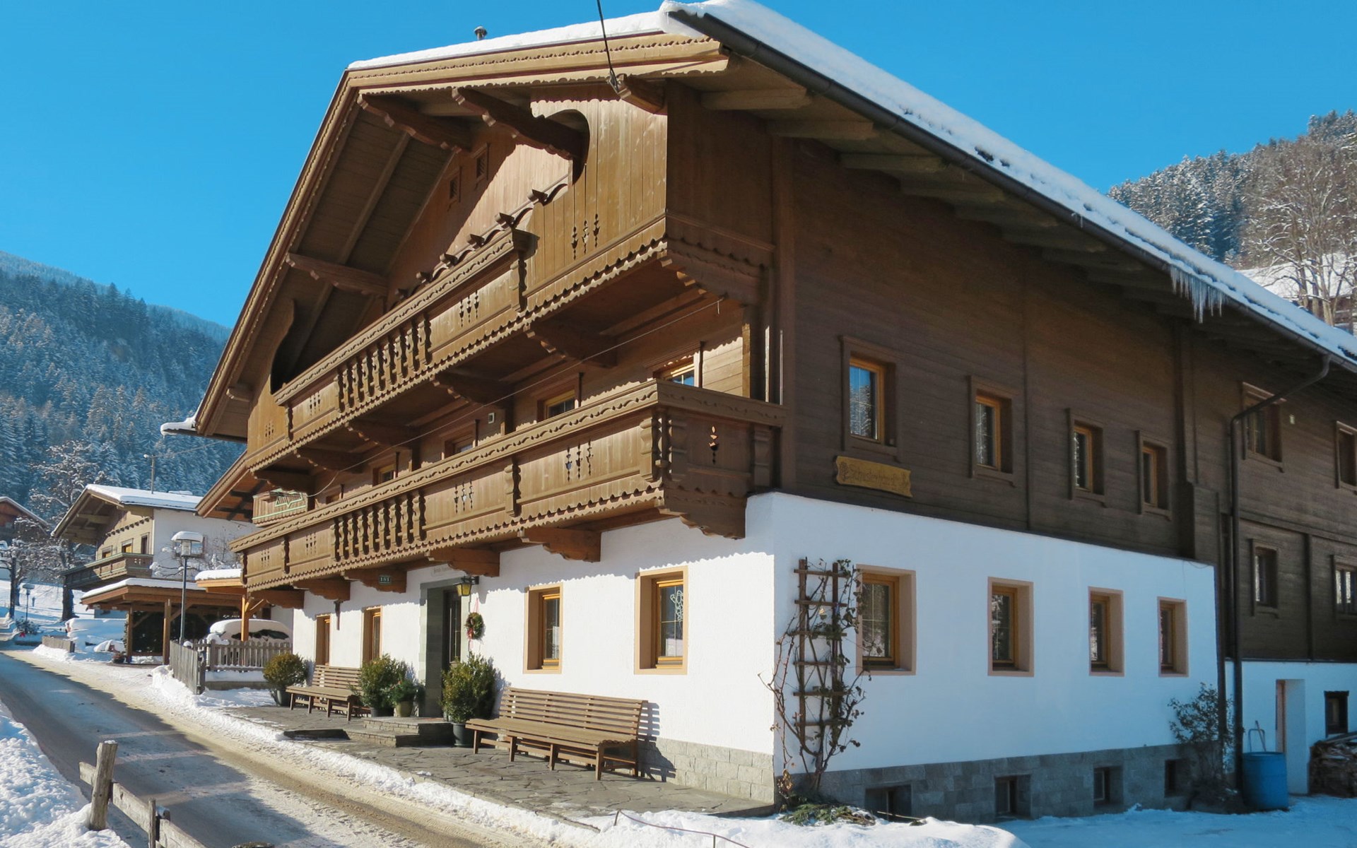 Schwendau 4 km von Mayrhofen: Haus "Schusterhäusl". 4 km vom Zentrum von Mayrhofen, 1.5 km vom Zentrum von Hippach. Im Hause: Internetzugang, Skiraum, Zentralheizung, Skischuhtrockner. Brötchenservice. Parkplatz auf dem Grundstück. Einkaufsgeschäft 1.5 km, Supermarkt 2.5 km, Bushaltestelle "Schwendau Hotel Neuwirt" 260 m, Bahnstation "Ramsau i.Z.-Hippach Bahnhof" 1.4 km, Freibad 1.5 km, Hallenbad 5 km. Golfplatz (18 Loch) 17 km, Bergeisenbahn 4 km, Gondelbahn 500 m, Skibushaltestelle 200 m. Teppich-, Linoleum- und Fliesenböden.