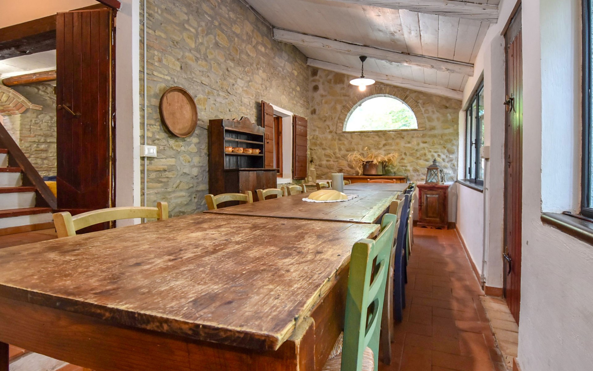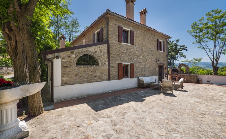 Rustikaler, freistehender, komfortabler Landsitz "Casale Antica Pietra", 400 m.ü.M., auf 2 Stockwerken, umgeben von Bäumen und Feldern. 19 km vom Zentrum von Riccione, 18 km vom Zentrum von Cattolica, ausserhalb des Ortes, 1 km vom Zentrum von Gemmano, ruhige, sonnige Lage, 18 km vom Meer, 18 km vom Strand, im Grünen. Zur Alleinbenutzung: Grundstück (eingezäunt), Park 2'000 m2, Schwimmbad nierenförmig (25 m2, 130 cm tief, saisonale Verfügbarkeit: 01.Mai. - 14.Okt.). Aussendusche, Sitzplatz, Pergola, Gartenmöbel, Grillhaus, Kinderspielplatz. Im Hause: Tischtennis, Einstellraum für Fahrräder, Waschmaschine, Heizung vor Ort zu zahlen. Parkplatz beim Haus in 10 m. Lebensmittelgeschäft 1 km, Restaurant 1 km, Bushaltestelle "Zollara" 250 m, Bahnstation "Riccone / Cattolica" 19 km, Sandstrand "Riccione / Cattolica" 19 km, Kieselstrand "Baia Vallugola" 26 km (klein). Golfplatz 10 km. Nahe gelegene Sehenswürdigkeiten: Grotte di Onferno 6 km, Repubblica di San Marino 12 km, Misano World Circuit 15 km, Gabicce Monte 24 km, Rimini 30 km, Urbino 42 km. Wandergebiete: Parco del Monte San Bartolo 35 km. Bitte beachten: Fahrzeug empfohlen. Geeignet für Familien. Be- und Entladen am Ferienhaus möglich.