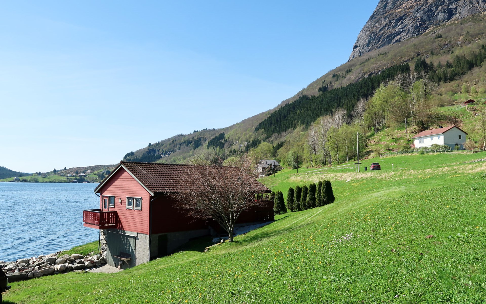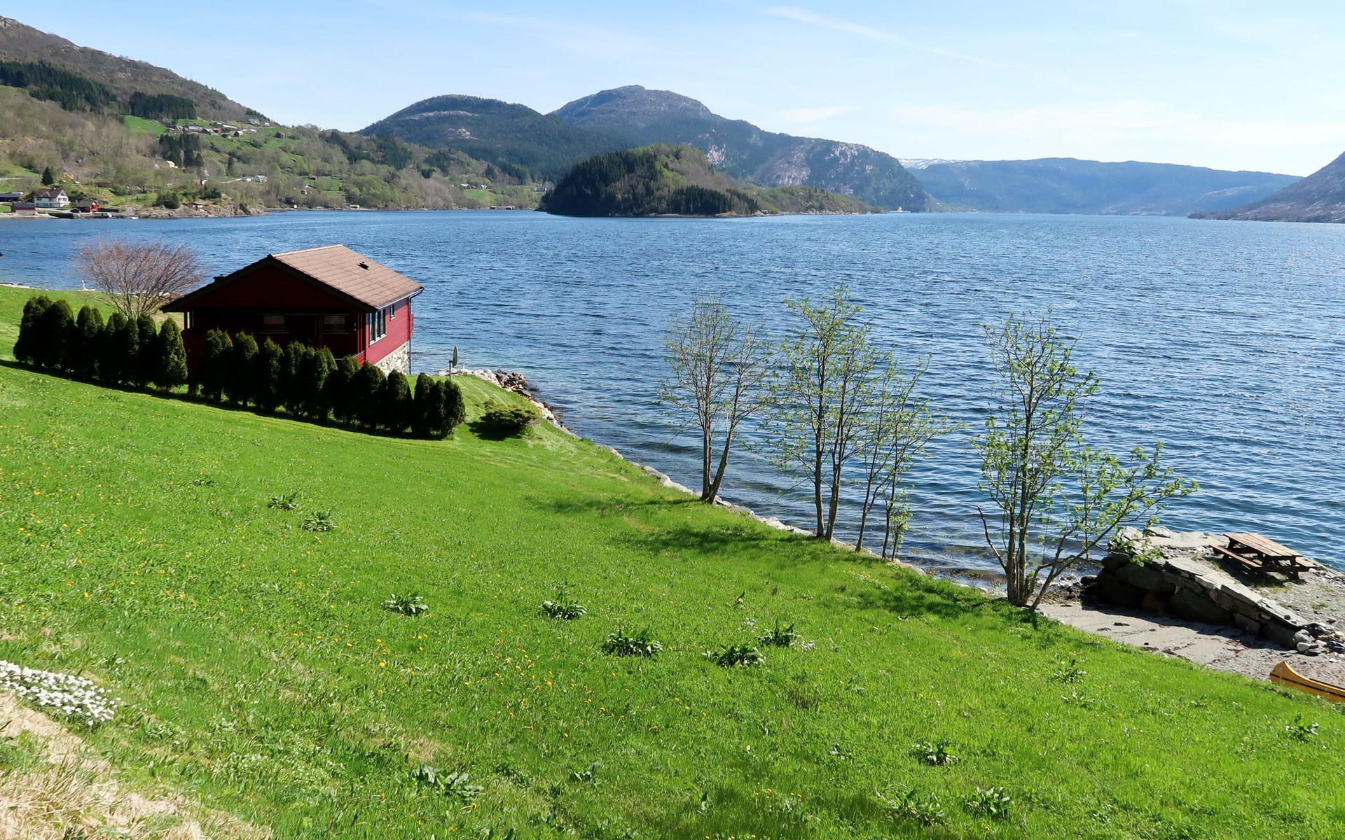 Angelhaus "Nanna". 7 km vom Zentrum von Hyllestad, 77 km vom Zentrum von Høyanger, 90 km vom Zentrum von Førde, am Hang, 2 m vom Meer, 2 m vom Fjord, direkter Zugang zum Strand. Zur Alleinbenutzung: Grundstück mit Wiese. Badeplatz. Ruderboot mit Motor (auf Bestellung), Parkplatz in 20 m auf dem Grundstück. Supermarkt 7 km, Bushaltestelle "Hovlandsvåg Kryss" 300 m, Fähre "Bergen" 143 km, Kieselstrand 2 m. Angelmöglichkeit 50 m.