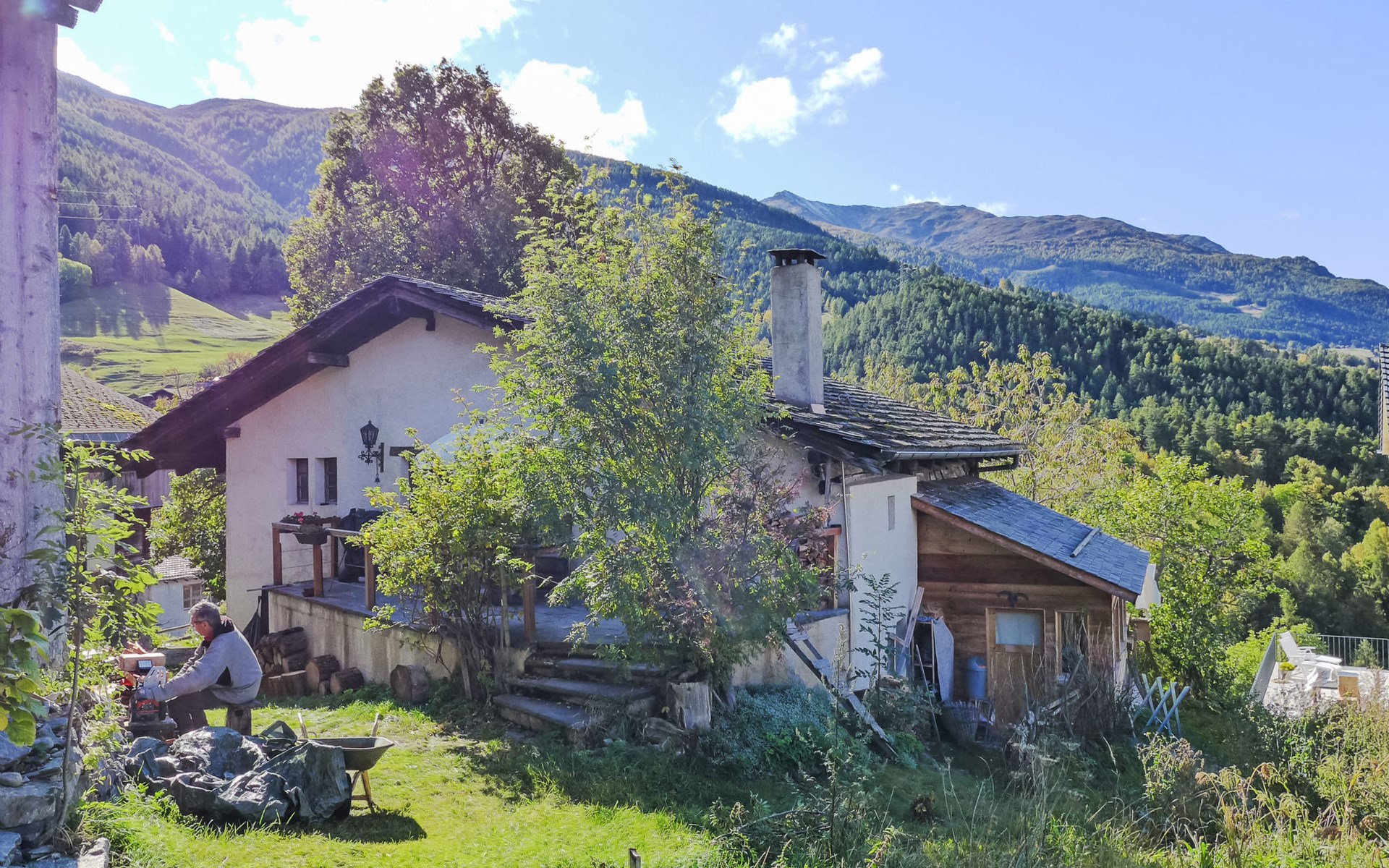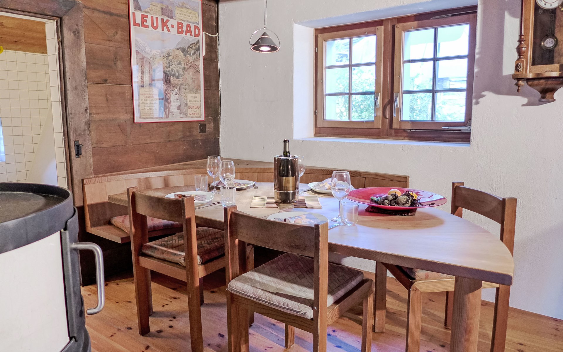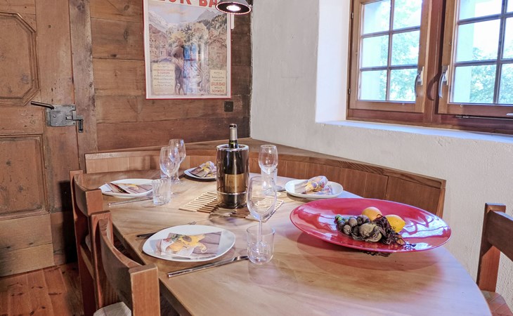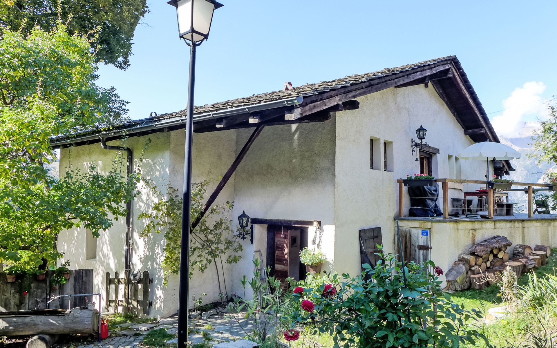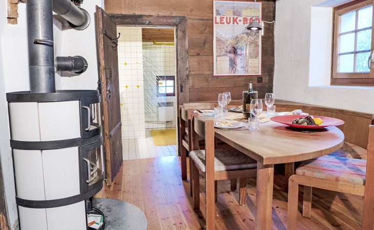 Historisches Zweifamilienhaus auf 3 Stockwerken, Baujahr 1713. Im Ortsteil Zumoberhaus, ruhige, sonnige Lage am Hang. Im Hause: Waschmaschine, Wäschetrockner (zur Mitbenutzung). Schmale Zufahrt bis zum Grundstück. Im Winter bitte Schneeketten mitbringen. 30 m Fussweg bis zum Haus. Parkplatz auf dem Grundstück. Lebensmittelgeschäft 350 m, Einkaufszentrum 11 km, Restaurant 1 km, Bushaltestelle "Bürchen, zum Oberhüs" 120 m, Bahnstation "Visp" 10 km, Thermalbad "Brigerbad" 14 km. Wanderwege ab Haus 10 m, Sessellift 1 km, Skisportanlagen 1 km, Skibushaltestelle 120 m, Kinderskischule 1 km. Bitte beachten: Bei guter Schneelage Zufahrt mit den Skiern bis zum Haus. Der Besitzer wohnt im selben Haus.