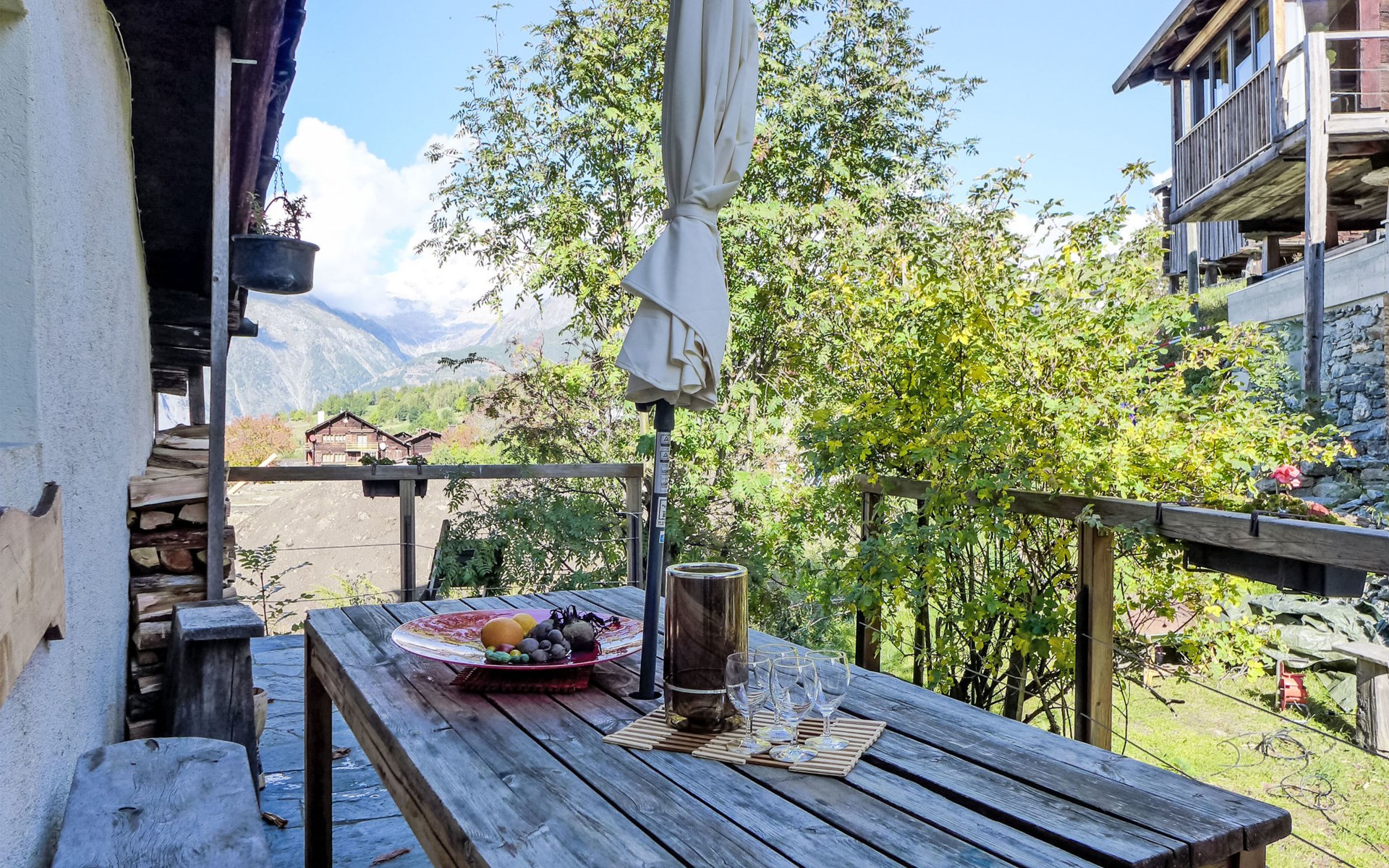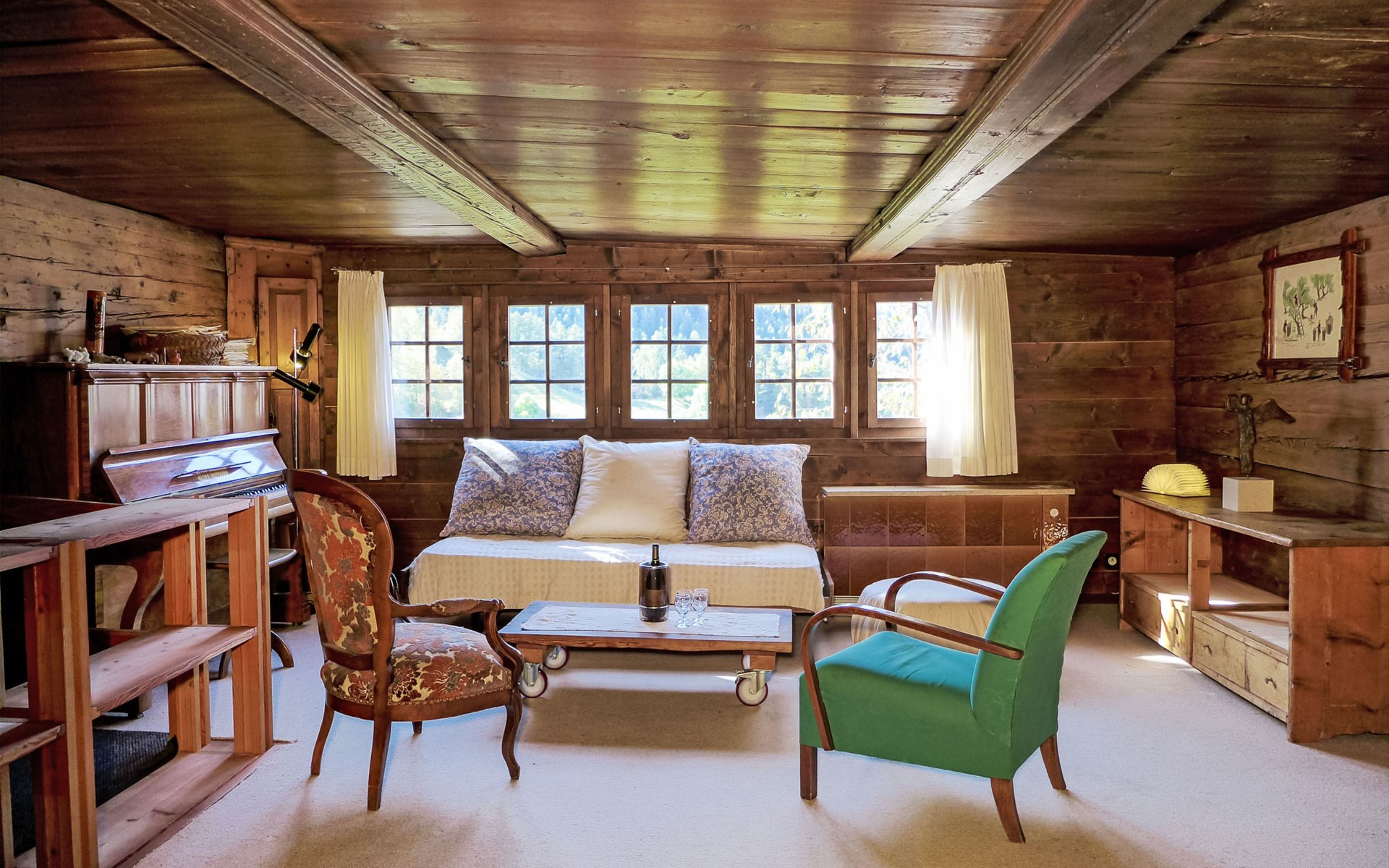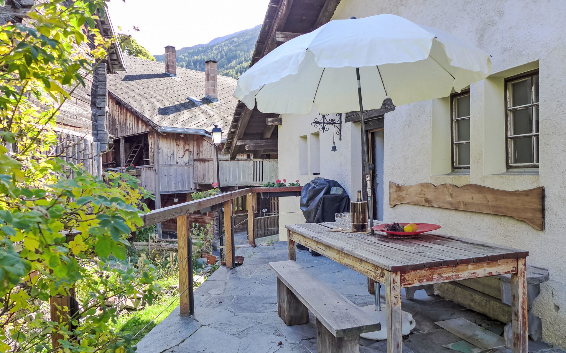 Historisches Zweifamilienhaus auf 3 Stockwerken, Baujahr 1713. Im Ortsteil Zumoberhaus, ruhige, sonnige Lage am Hang. Im Hause: Waschmaschine, Wäschetrockner (zur Mitbenutzung). Schmale Zufahrt bis zum Grundstück. Im Winter bitte Schneeketten mitbringen. 30 m Fussweg bis zum Haus. Parkplatz auf dem Grundstück. Lebensmittelgeschäft 350 m, Einkaufszentrum 11 km, Restaurant 1 km, Bushaltestelle "Bürchen, zum Oberhüs" 120 m, Bahnstation "Visp" 10 km, Thermalbad "Brigerbad" 14 km. Wanderwege ab Haus 10 m, Sessellift 1 km, Skisportanlagen 1 km, Skibushaltestelle 120 m, Kinderskischule 1 km. Bitte beachten: Bei guter Schneelage Zufahrt mit den Skiern bis zum Haus. Der Besitzer wohnt im selben Haus.