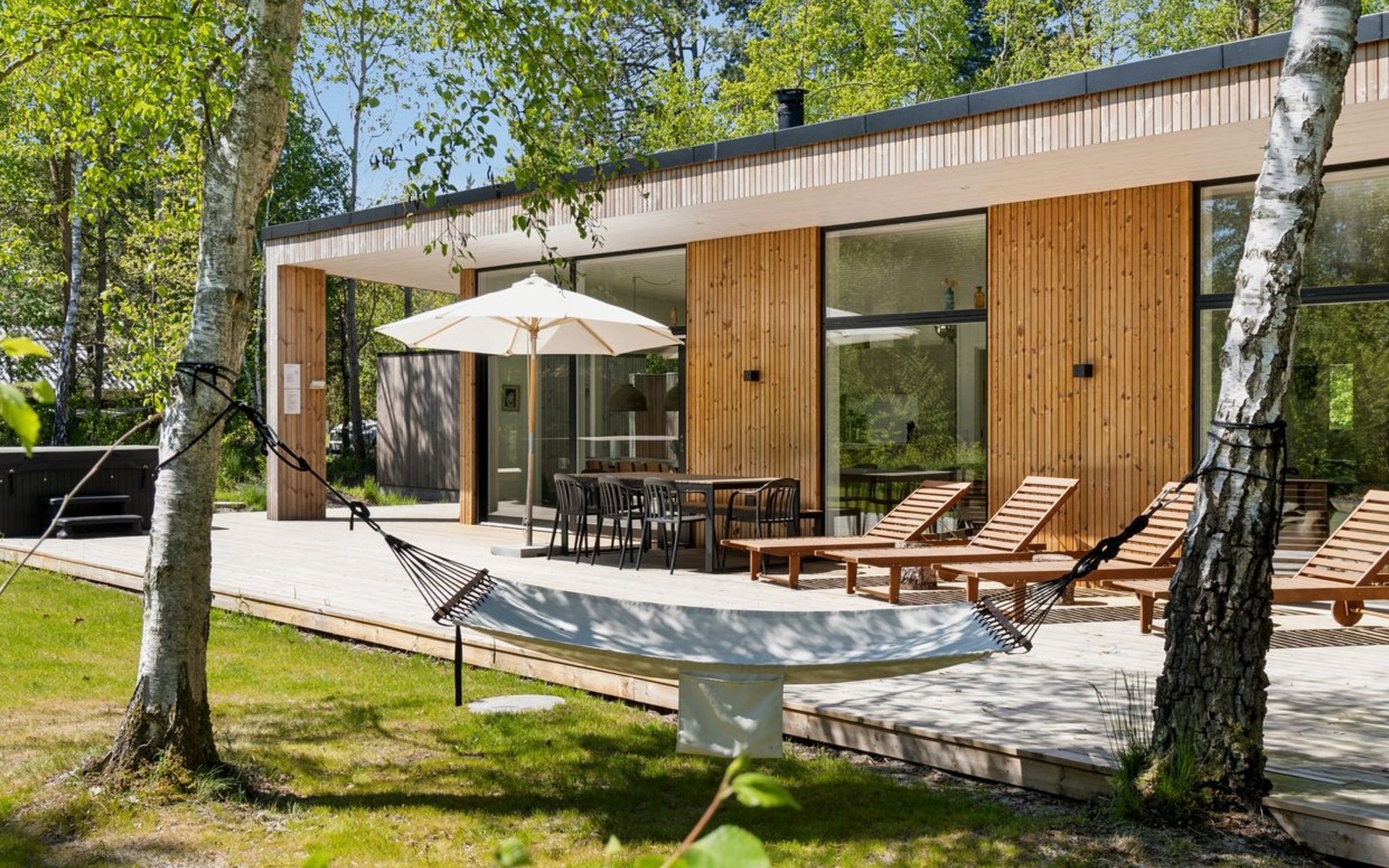Einfamilienhaus, Baujahr 2023. 900 m vom Meer. Zur Alleinbenutzung: naturbelassenes Grundstück 1'205 m2. Aussendusche, Terrasse (112 m2), Grill. Im Hause: Sauna, Tischfussball, Trampolin, Waschmaschine, Wäschetrockner. Parkplatz beim Haus. E-Ladestation. Lebensmittelgeschäft 3.7 km. Golfplatz 2 km. Der Besitzer akzeptiert keine Jugendgruppen.