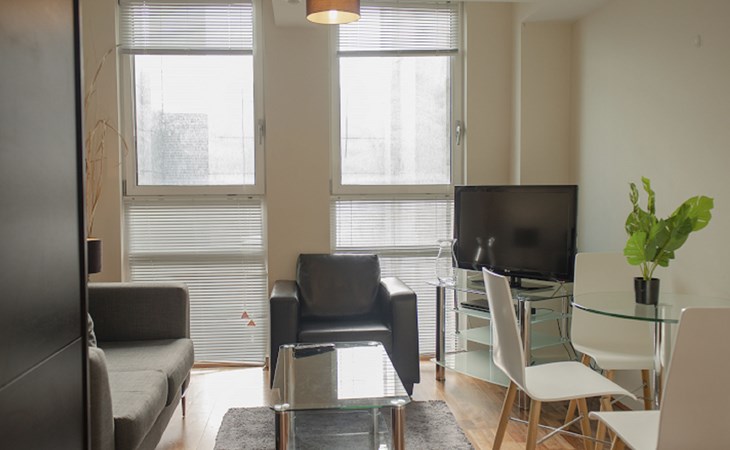 Modernes Appartementhaus "Lambs Passage". Im Ortszentrum von London, zentrale Lage. In der Anlage: Wireless LAN, Fahrstuhl, Zentralheizung, Wäscherei (extra). Wohnungsreinigung 1 mal wöchentlich (inkl.). Lebensmittelgeschäft, Bar 100 m, Bushaltestelle "Silk Street" 160 m, Bahnstation "Old Street" 800 m, U-Bahnstation "Old Street" 800 m. Nahe gelegene Sehenswürdigkeiten: Barbican Cultural Centre 3 km, St. Paul‘s Cathedral / Tate Modern 3 km, Buckingham Palace 6 km, Piccadilly Circus 6 km, Tower of London & London Bridge 5 km, London Eye 4 km. Bitte beachten: geeignet für Familien, Babyausstattung auf Anfrage (extra), Kinderbetreuung (extra). Das Foto ist nur ein Hausbeispiel.
