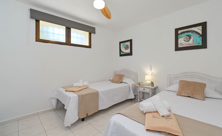 - Schlafzimmer mit 2 Einzelbetten (190 x 80 cm) und Ventilator