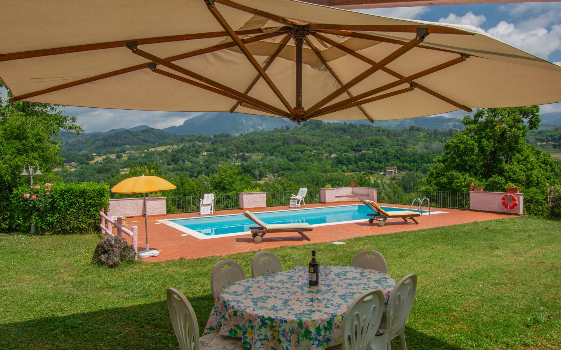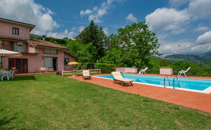 Gemütliches, rustikales Einfamilienhaus "Casa dei Ciliegi", 475 m.ü.M., Baujahr 1800, renoviert im Jahre 2000, umgeben von Bäumen und Wiesen. Im Ort, 2 km vom Zentrum von Castelnuovo Garfagnana, ruhige, sonnige Lage, 100 m vom See, im Grünen. Zur Alleinbenutzung: grosser Garten 300 m2 (eingezäunt) mit Blumen und Bäumen, Schwimmbad (11 x 6 m, 140 - 140 cm tief, saisonale Verfügbarkeit: 15.Mai. - 30.Sep.). Dusche/WC im Poolbereich. Im Hause: Wireless LAN, Waschmaschine. 100 m lange holprige Zufahrt bis zum Haus. Parkplatz (für 4 Autos) auf dem Grundstück. Lebensmittelgeschäft 2.5 km, Supermarkt 2.5 km, Restaurant 2.5 km, Bushaltestelle 100 m, Bahnstation 2.5 km. Nahe gelegene Sehenswürdigkeiten: Rafting Bagni di Lucca 2.5 km, Versilia 48 km, Lucca 35 km, Torre di Pisa 65 km, Sentiero Fortezza delle Verruccole 7 km. Bitte beachten: Fahrzeug empfohlen. Geeignet für Familien, Babyausstattung auf Anfrage (inkl.).