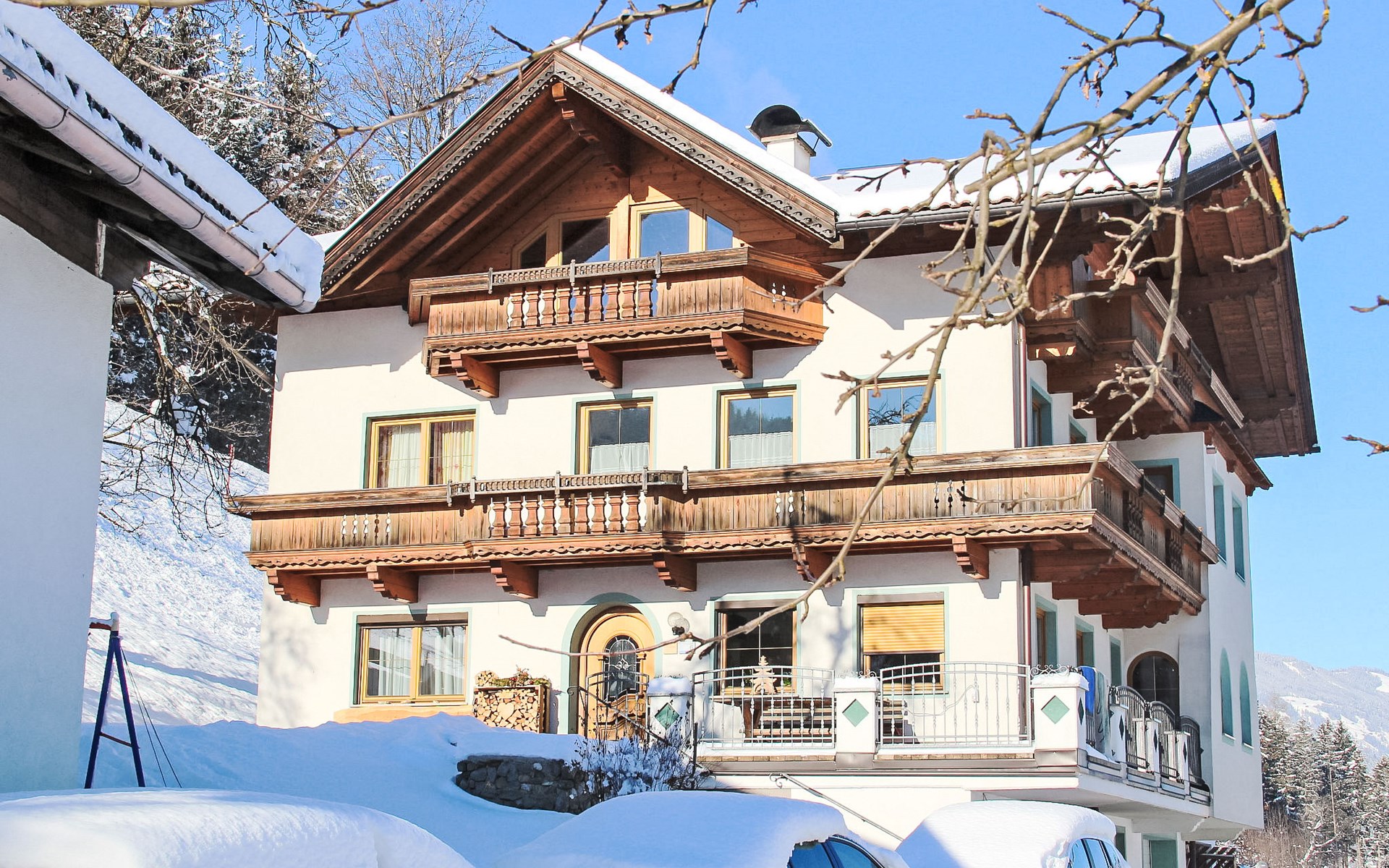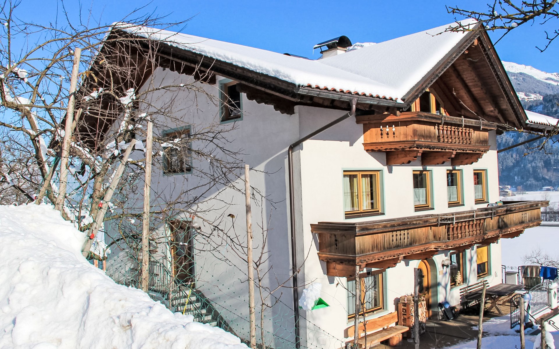 Kaltenbach: Kinderfreundliches, schönes Dreifamilienhaus "Herbert". Am Ortsrand, 1.2 km vom Zentrum von Kaltenbach, ruhige, sonnige, erhöhte Lage, 4 km vom See, 1 km vom Skigebiet. Zur Mitbenutzung: Garten, Liegewiese. Im Hause: Wireless LAN, Einstellraum für Fahrräder, Skiraum, Zentralheizung, Skischuhtrockner. Zufahrt bis zum Haus. Parkplatz beim Haus. Supermarkt 1 km, Restaurant 1 km, Bushaltestelle "Kaltenbach-Stumm" 2 km, Bahnstation " Angererbach-Ahrnbach" 850 m, Freibad 3 km, Hallenbad 1.4 km, Thermalbad "Erlebnistherme Fügen" 8 km, Badesee 4 km. Radweg 400 m, Gondelbahn 1 km, Skisportanlagen 1 km, Skibushaltestelle 200 m, Eisfeld 1 km. Nahe gelegene Sehenswürdigkeiten: Freizeitpark Aufenfeld 4 km. Bekannte Skigebiete sind gut erreichbar: Hochzillertal-Hochfügen 1 km, Zillertal Arena Zell 6 km. Bitte beachten: Fahrzeug empfohlen. Geeignet für Familien. Ab Hof Verkauf von bäuerlichen Produkten. Bei Schneefall sind auf einer kurzen Strecke von etwa 100 m Schneeketten notwendig.