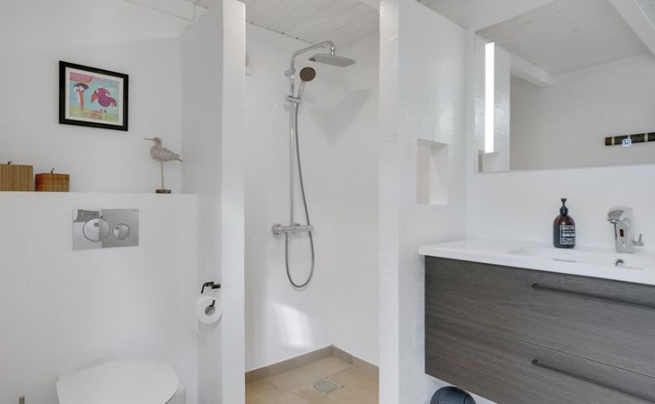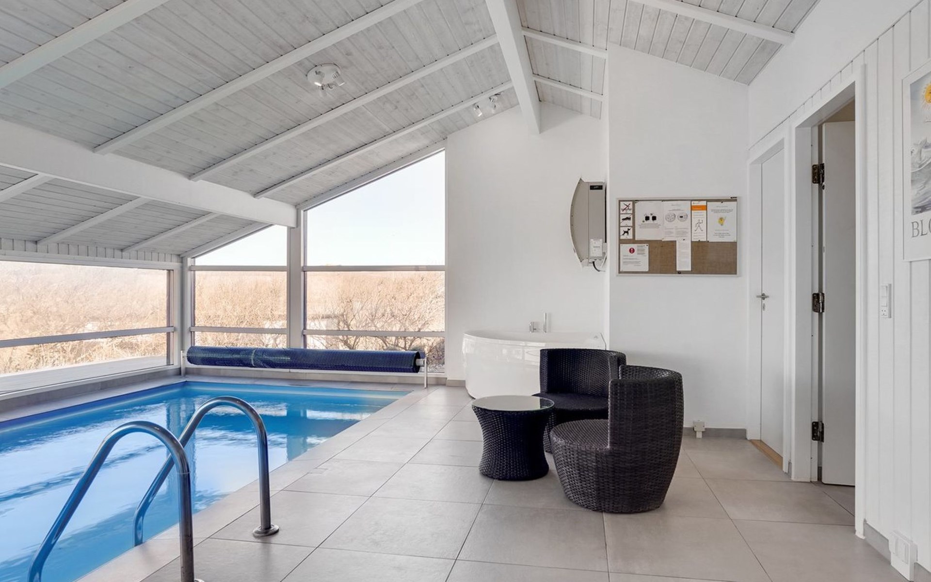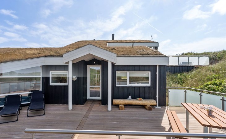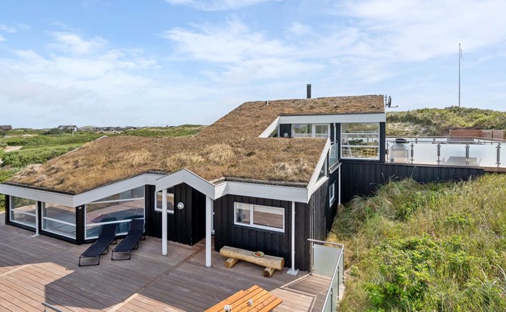 Einfamilienhaus, Baujahr 1991. 230 m vom Meer. Zur Alleinbenutzung: naturbelassenes Grundstück 2'650 m2, Hallenbad (3 x 6 m, 18 m2, 130 - 130 cm tief). Terrasse (85 m2), Grill. Im Hause: Sauna, Waschmaschine, Wäschetrockner. Carport. E-Ladestation. Lebensmittelgeschäft 3.5 km. Der Besitzer akzeptiert keine Jugendgruppen.
