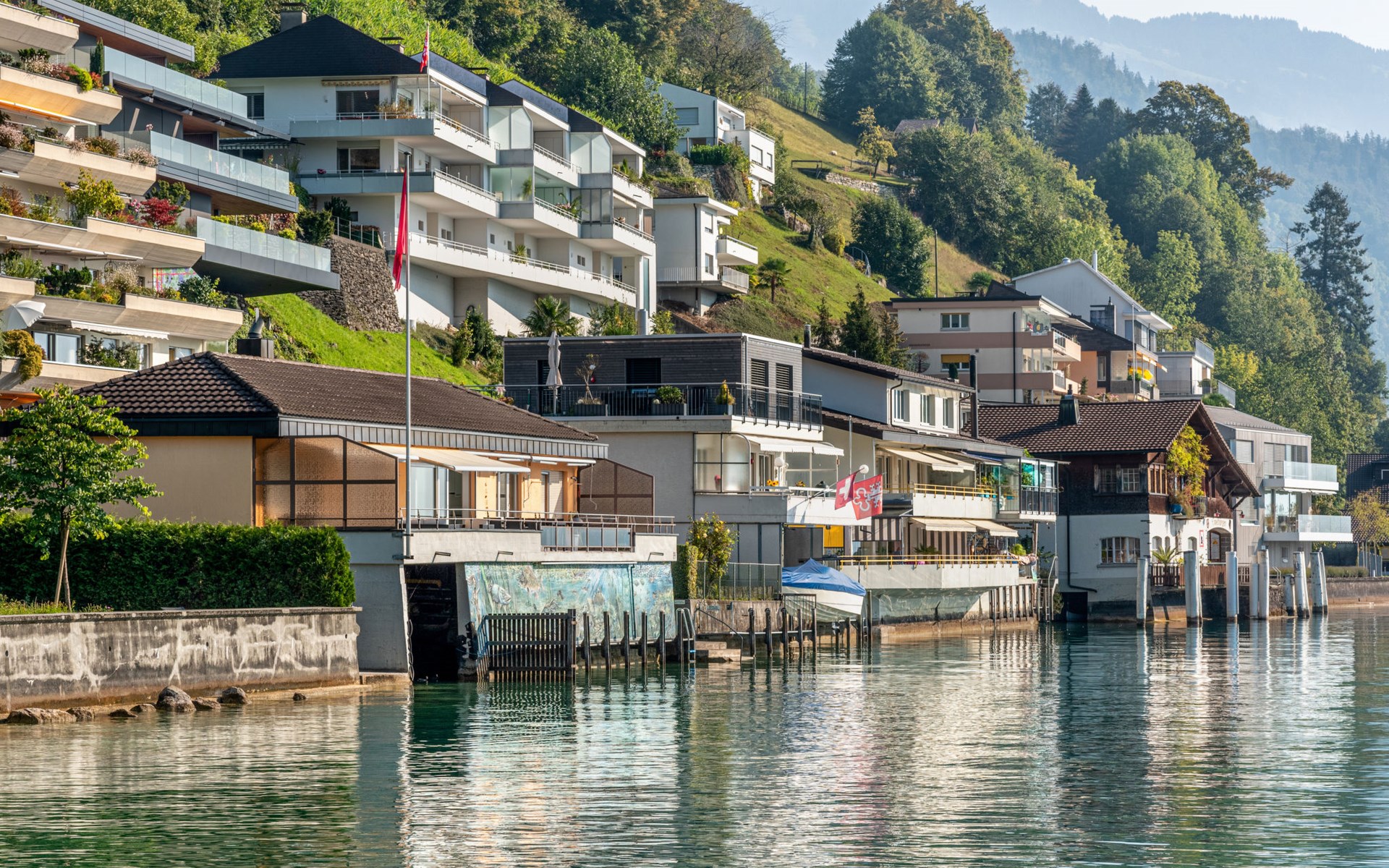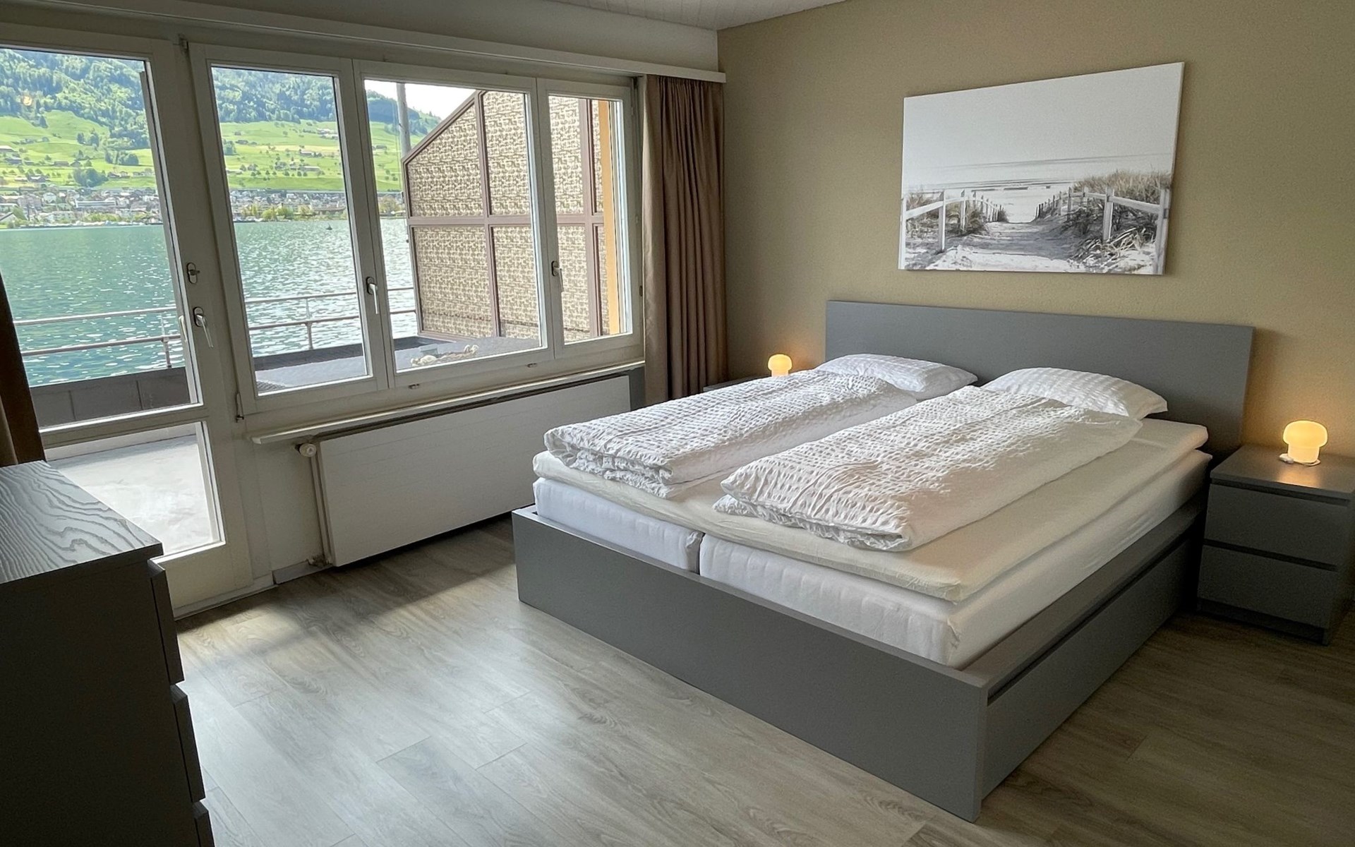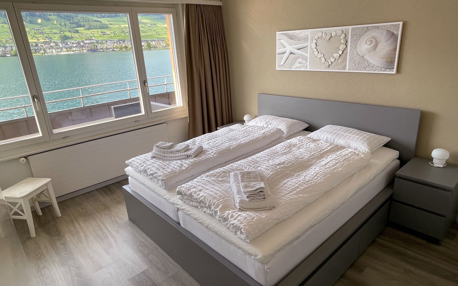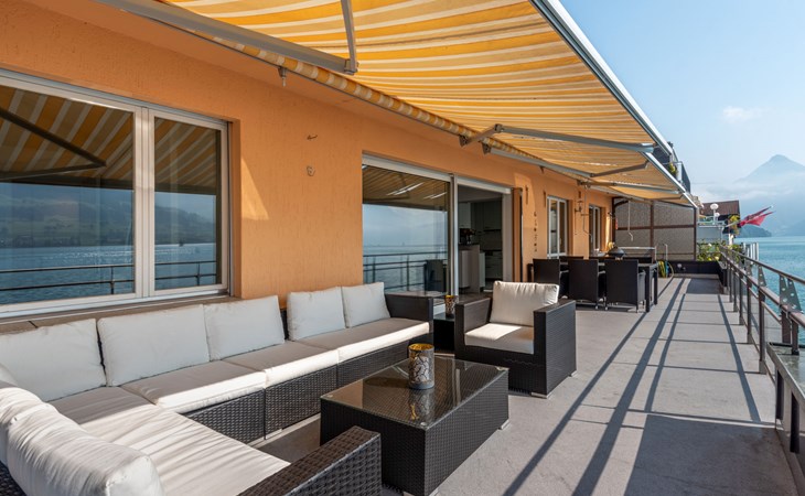 Gemütliches, komfortables Einfamilienhaus "Seestern direkt am See". Am Ortsrand, ruhige, sonnige Lage, direkt am See. Zur Mitbenutzung: Liegewiese 50 m2 (eingezäunt). Badesteg Badeplatz. Im Hause: Zentralheizung. Motorboot (auf Anfrage). Zufahrt bis zum Haus. Parkplatz (für 2 Autos) beim Haus. Einkaufsgeschäft, Lebensmittelgeschäft 300 m, Supermarkt 1 km, Restaurant 50 m, Bushaltestelle 300 m, Bahnstation 4 km, Steinstrand 5 m, Freibad 1 km, See Vierwaldstättersee 5 m. Luftseilbahn 5 km, Skilift 5 km, Skischule 5 km, Kinderspielplatz 500 m. Nahe gelegene Sehenswürdigkeiten: Stanserhorn 5 km. Bekannte Skigebiete sind gut erreichbar: Klewenalp 5 km, Engelberg 20 km. Bekannte Seen in der Umgebung sind gut erreichbar: Vierwaldstättersee. Schiffsstation Ennetbürgen 50m entfernt. Einkaufsladen Volg auch sonntags geöffnet. Motorboot: Das Ferienhaus Seestern hat ein Bootshaus. Exklusiv für die Feriengäste besteht die Möglichkeit, das Motorboot (2021) während des Aufenthalts dazu zu mieten: Morningstar M 498 R für 5 Personen (Führerschein Kat. A), Aussenbord-Motor: Suzuki DF 80 ATL, Badeplattform, vollkasko-versichert. Depot CHF 500.00 (Versicherungs-Selbstbehalt), exkl. Benzin. Für Gäste ohne Schiffsführerschein besteht die Möglichkeit einen Halbtagesausflug zu buchen. Kontaktieren Sie bitte den Gastgeber bei Erhalt der Reiseunterlagen. Das Boot ist ganzjährig zu fahren.