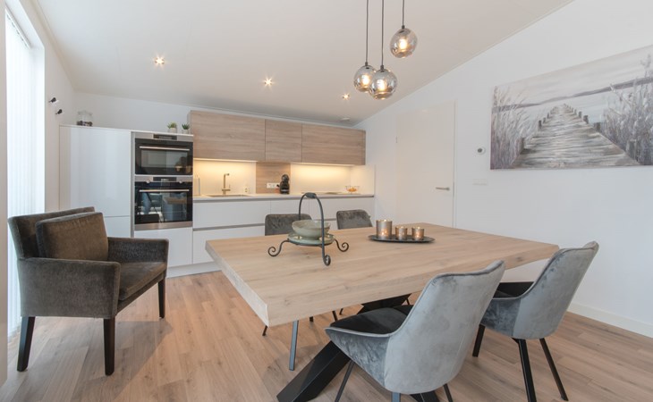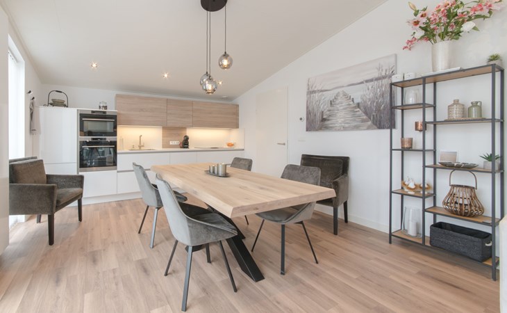 Dieser 3-Zimmer-Ferienbungalow in ruhiger Lage am Ortsrand ist besonders für Senioren geeignet. Das Interieur ist praktisch und modern eingerichtet mit einer offenen Küche inklusive Induktionskochfeldern und Geschirrspüler sowie einem gemütlichen Wohn-/Esszimmer mit Flachbild-TV. Vom Wohnzimmer aus haben Sie direkten Zugang zur Terrasse mit Gartenmöbeln und Liegestühlen, wo Sie die frische Luft genießen können.