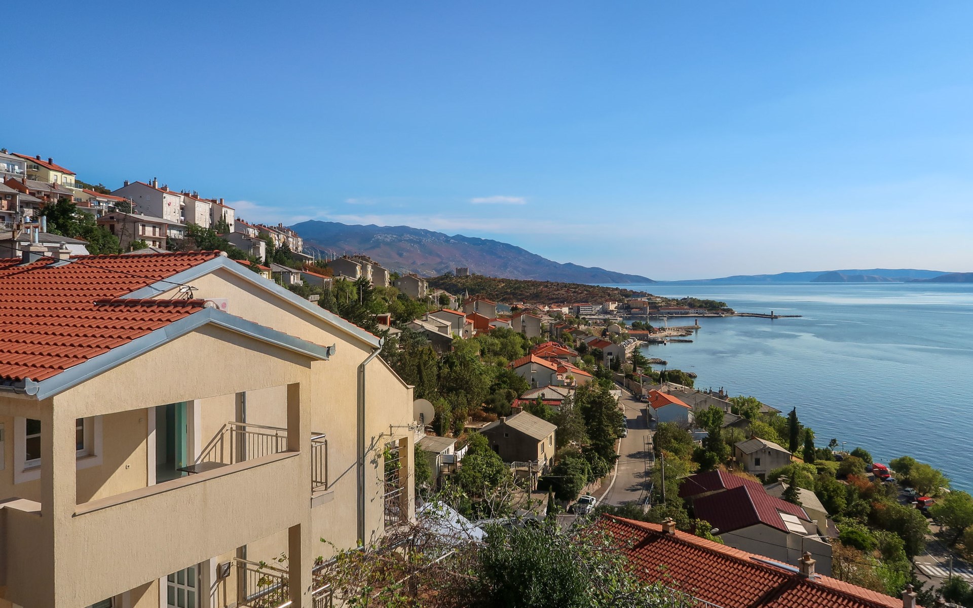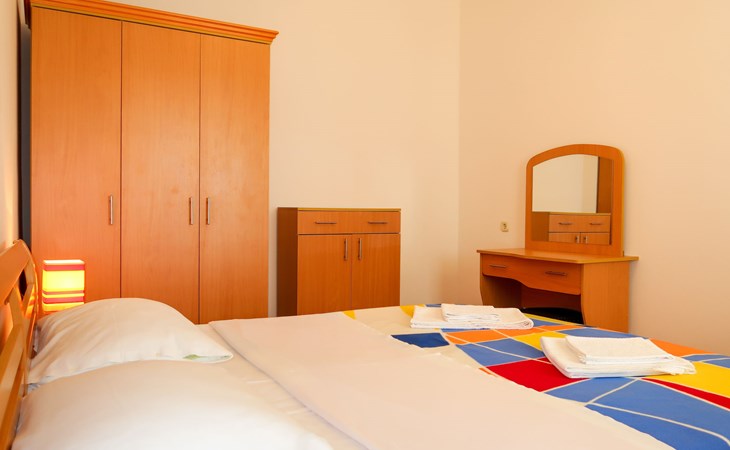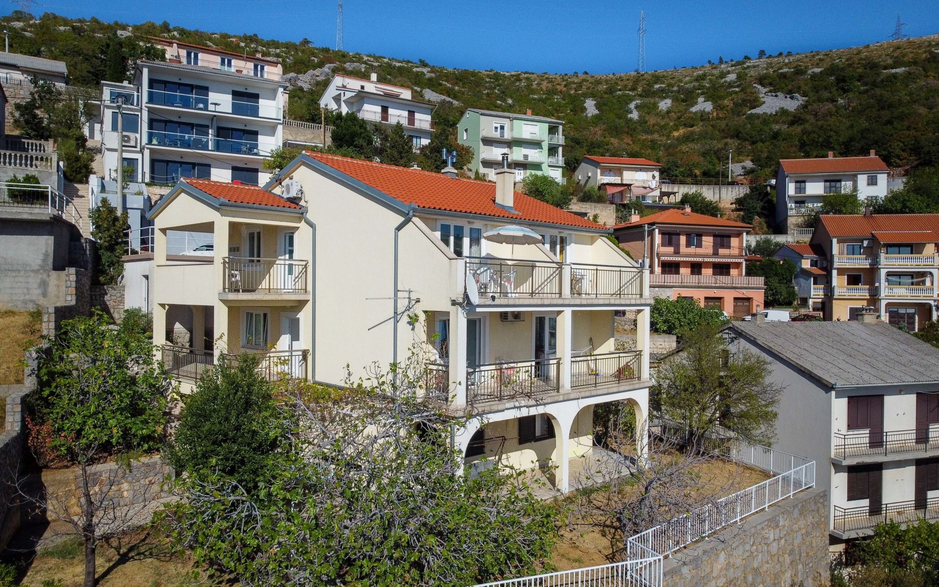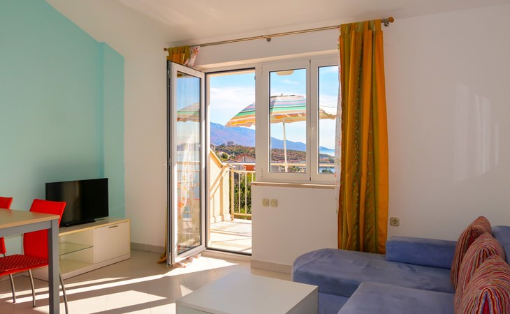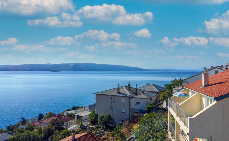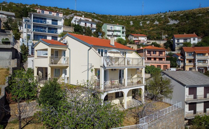 Dreifamilienhaus. 1 km vom Zentrum von Senj, sonnige, erhöhte Lage, 300 m vom Meer, 300 m vom Strand. Im Hause: Internetzugang. Parkplatz auf dem Grundstück. Supermarkt 900 m, Restaurant 1 km, Café 500 m, Bushaltestelle 1.3 km, Kieselstrand 300 m.