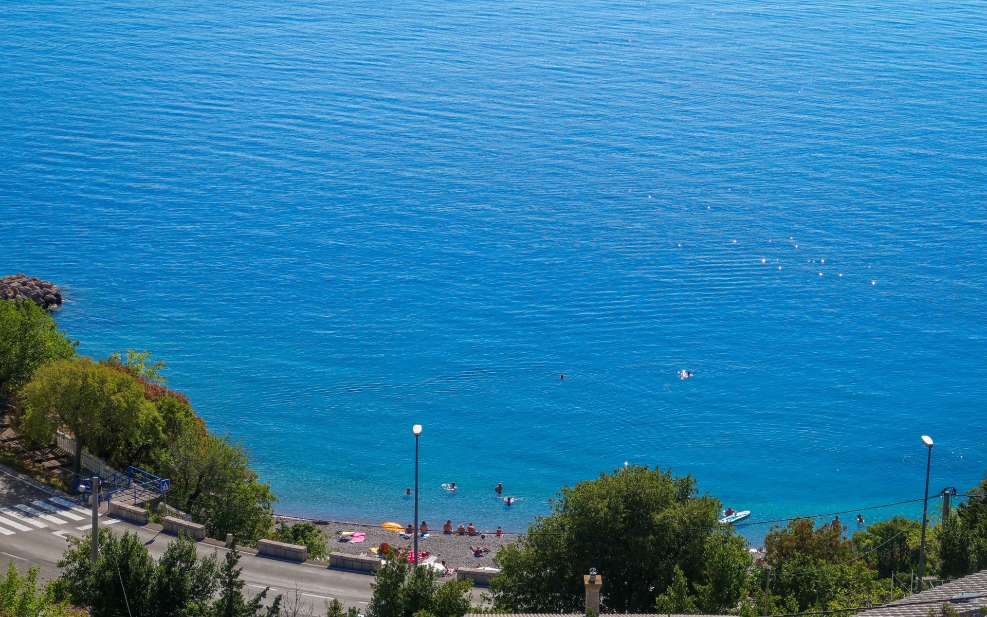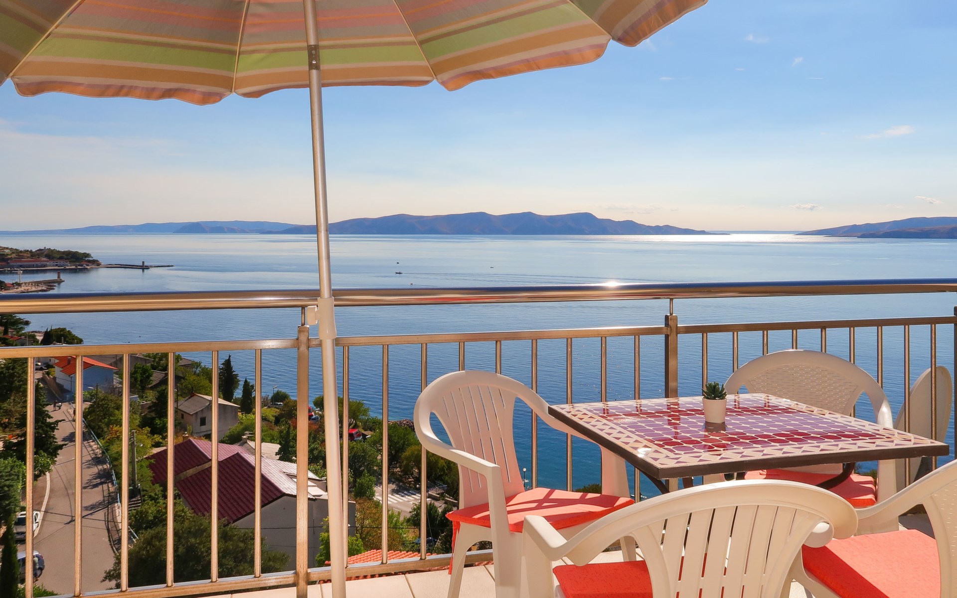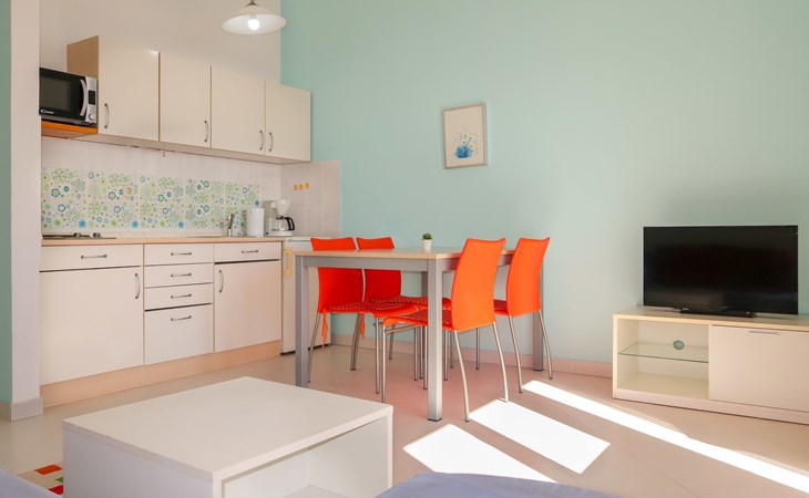 Dreifamilienhaus. 1 km vom Zentrum von Senj, sonnige, erhöhte Lage, 300 m vom Meer, 300 m vom Strand. Im Hause: Internetzugang. Parkplatz auf dem Grundstück. Supermarkt 900 m, Restaurant 1 km, Café 500 m, Bushaltestelle 1.3 km, Kieselstrand 300 m.