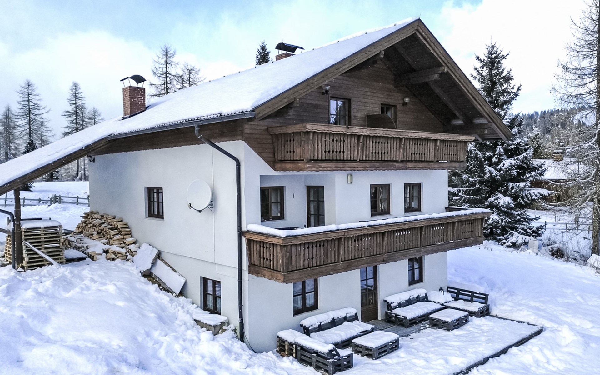 Skipiste "direkt" vorm Haus. Schigebiet Hochrindl in ca. 300 m fußläufig erreichbar. Nächstes Schigebiet Turracher Höhe . Grosses, gemütliches Landhaus "Almvilla", auf 3 Stockwerken, renoviert im Jahre 2014. Im Ortsteil Hochrindl-Alpl, sonnige Lage, 500 m vom Skigebiet. Zur Alleinbenutzung: naturbelassenes Grundstück 1'300 m2, Liegewiese 600 m2. Grill. Im Hause: Sauna, Skiraum, Zentralheizung. Zufahrt bis zum Haus. Im Winter bitte Schneeketten mitbringen. Parkplatz beim Haus. Lebensmittelgeschäft 2.5 km, Supermarkt 15 km, Restaurant 500 m, Bushaltestelle 300 m, Freibad 8 km, Thermalbad "Römerbad Bad Kleinkirchheim" 19 km. Golfplatz (18 Loch) 15 km, Skisportanlagen 500 m, Skibushaltestelle 300 m, Skischule 2.5 km, Schlittelbahn 300 m. Bekannte Skigebiete sind gut erreichbar: Sirnitz-Albeck-Hochrindl 500 m, Turracher Höhe, Bad Kleinkirchheim-St.Osqald. Wandergebiete: Nockberge. Bitte beachten: Fahrzeug empfohlen.