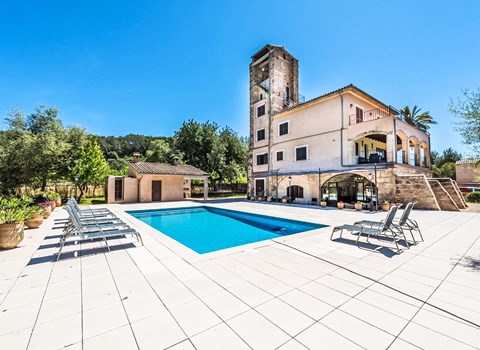 Inca: Sehr grosse, moderne Villa "Can Pedro", auf 2 Stockwerken, renoviert, umgeben von Bäumen. Ausserhalb des Ortes, 1.8 km vom Zentrum von Inca, ruhige, sonnige Lage, verkehrsberuhigte Zone, 900 m vom Waldrand, 28 km vom Meer, 28 km vom Strand, im Grünen. Zur Alleinbenutzung: grosser terrassierter Garten mit Rasen und Pflanzen, Schwimmbad eckig (14 x 6 m, 80 - 250 cm tief, saisonale Verfügbarkeit: 01.Jan. - 31.Dez.). Aussendusche, Sitzplatz, Gartenmöbel, Grill, Kinderspielplatz. Im Hause: Internetzugang, Wireless LAN, Einstellraum für Fahrräder, Zentralheizung, Klimaanlage, Alarmanlage, Waschmaschine, Heizung vor Ort zu zahlen. Parkplatz (überdacht) beim Haus. Einkaufsgeschäft 1.8 km, Lebensmittelgeschäft 1.6 km, Supermarkt 1.7 km, Restaurant 1.7 km, Bar 1.6 km, Bäckerei 1.6 km, Café 1.6 km, Internet-Café 1.8 km, Fußgängerzone 1.9 km, Biergarten 1.9 km, Zentrum zu Fuss in 20 Minuten erreichbar, Bushaltestelle 1.9 km, Bahnstation 1.9 km, Sandstrand 28 km, Felsstrand 28 km. Sporthafen 28 km, Jacht-Hafen 28 km, Golfplatz (18 Loch) 26 km. Bitte beachten: Fahrzeug empfohlen, kein Fahrstuhl vorhanden. Geeignet für Familien, geeignet für Senioren. Objekt geeignet für 10 Erwachsene Jugendgruppen nur auf Anfrage. Be- und Entladen am Ferienhaus möglich. Flugplatz 40 km vom Haus.