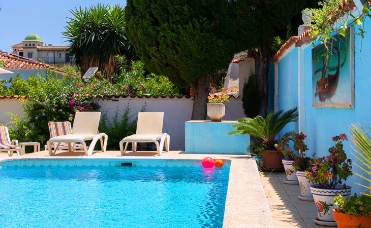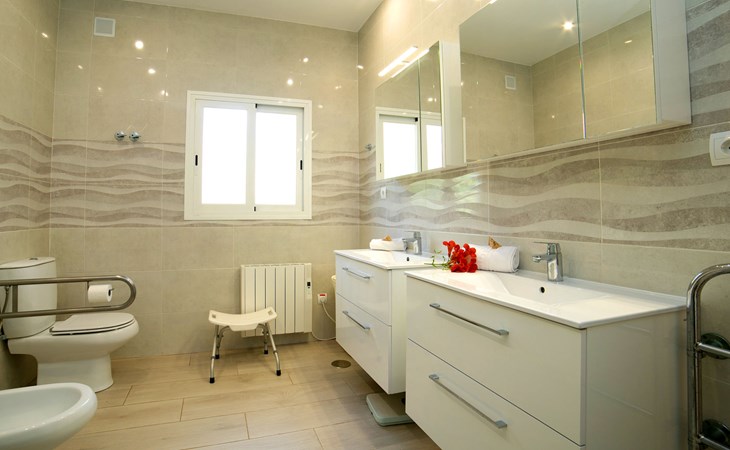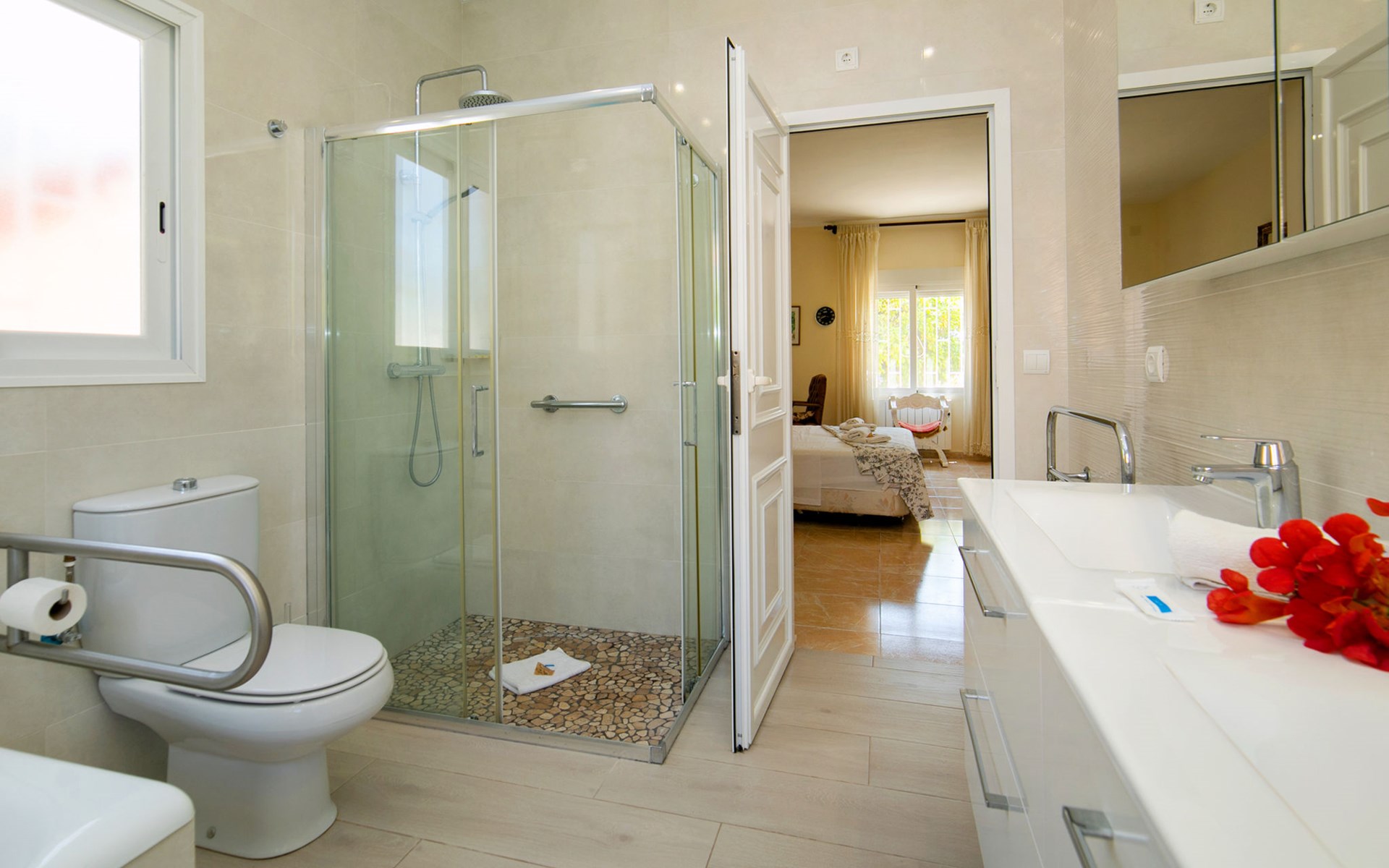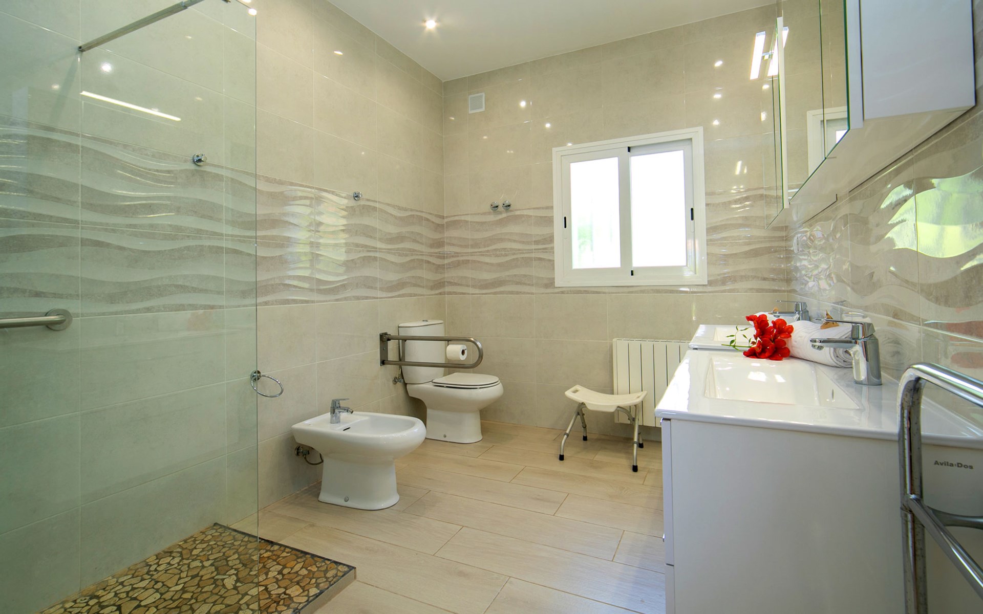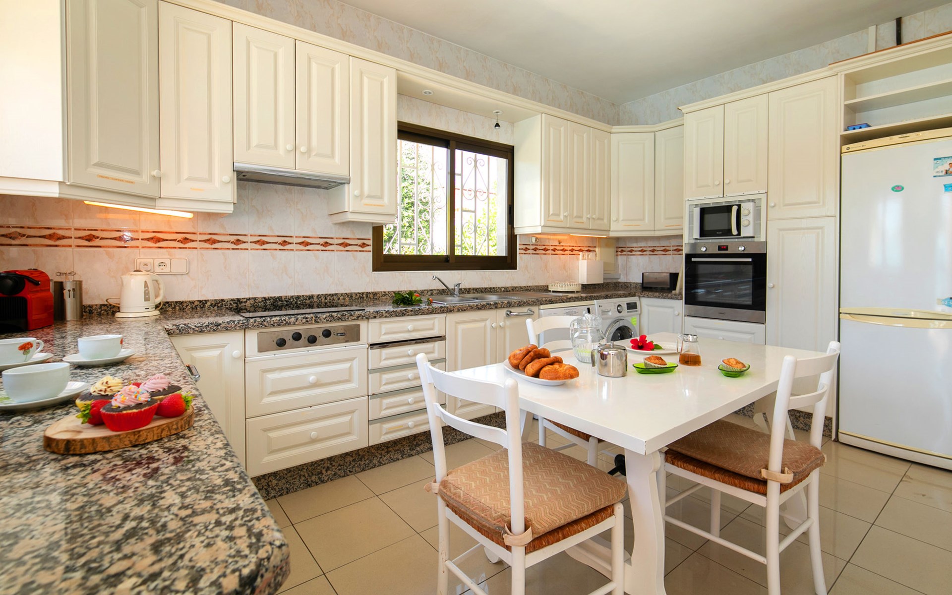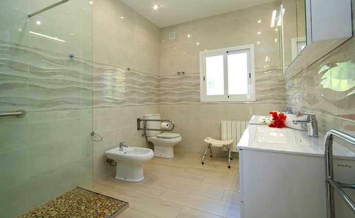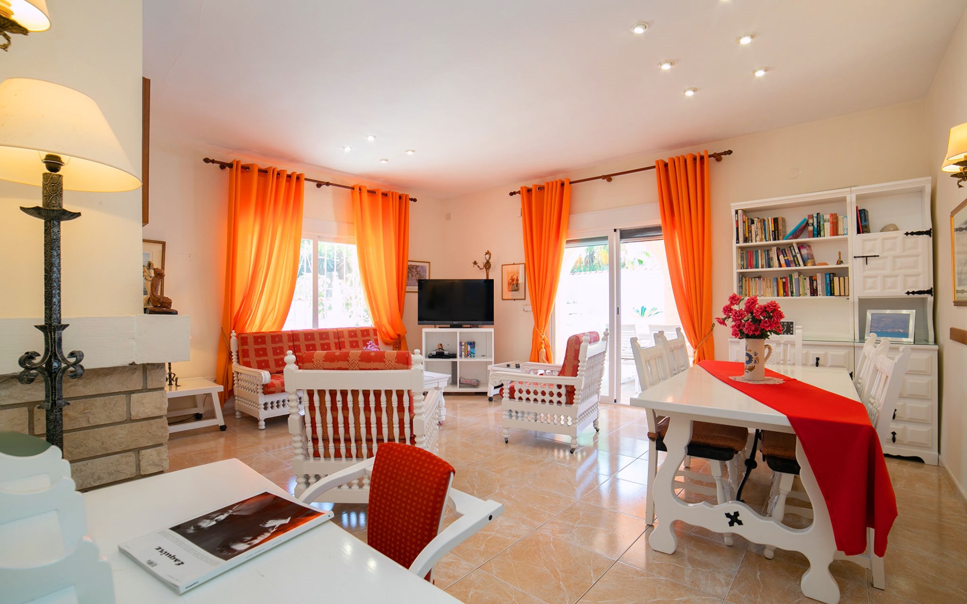 Playa Albir: Sehr grosses, sehr gemütliches, komfortables Haus "Sandra". Im Ort, 600 m vom Zentrum von Albir, sonnige Lage, 800 m vom Meer, 800 m vom Strand, in einer Sackgasse. Zur Alleinbenutzung: Grundstück 800 m2 (eingezäunt), grosser Garten mit Pflanzen, Obstgarten, Schwimmbad eckig (9 x 4 m, 150 - 230 cm tief, saisonale Verfügbarkeit: 01.Jan. - 31.Dez.) mit Innentreppe. Aussendusche, Laube, Pergola, Gartenmöbel, Grill, Parkplatz (für 3 Autos) auf dem Grundstück. Einkaufsgeschäft, Supermarkt 300 m, Einkaufszentrum 400 m, Restaurant, Bar, Café 300 m, Bushaltestelle "Albir" 800 m, Bahnstation "Albir", Sandstrand "Benidorm" 8 km, Kieselstrand "Albir" 800 m. Golfplatz (18 Loch) 8 km, Wanderwege ab Haus 800 m. Nahe gelegene Sehenswürdigkeiten: Benidorm Palace 8 km, Aqualandia 8 km, Mundomar 8 km, Terra Mitica 10 km, Terra Natura 10 km, Alicante 45 km. Bitte beachten: Babyausstattung auf Anfrage. Der Besitzer akzeptiert keine Jugendgruppen. Wichtig für Rollstuhlfahrer: Die Haupteingangstüre ist 82 cm breit, die Türen drinnen 70 cm. Breite des Korridors: mind. 95 cm, Bad 2.4 x 3.6 m. Schwimmbecken: um 30 cm erhöht.