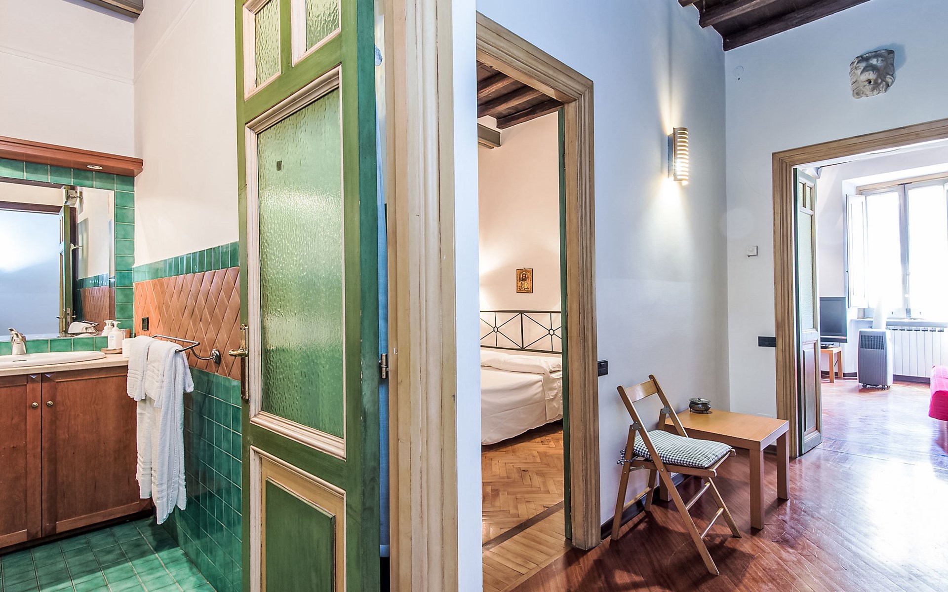 Roma Piazza Navona: Historisches Appartementhaus auf 4 Stockwerken. 2 km vom Zentrum von Città del Vaticano, im Bezirk Rione Parione, zentrale Lage, im Herzen der Stadt. Einkaufsgeschäft 50 m, Restaurant 100 m, Bar 50 m, Bushaltestelle "64" 50 m, Bahnstation "Roma Termini" 2.8 km, U-Bahnstation "Barberini" 2 km. Nahe gelegene Sehenswürdigkeiten: Piazza Navona 100 m, Pantheon 550 m, Fontana di Trevi 1.2 km, Foro Romano 1.3 km, Piazza di Spagna 1.6 km, Colosseo 2.1 km. Bitte beachten: kein Fahrstuhl vorhanden. In einem der angesehensten Stadtviertel gelegen. Nur wenige Schritte von der Piazza Navona und dem Campo de' Fiori entfernt. ,Check-in nach 22.00 Uhr zusätzlich 30 Euro, nach 24 Uhr zusätzlich 50 Euro, bei der Ankunft zu bezahlen.