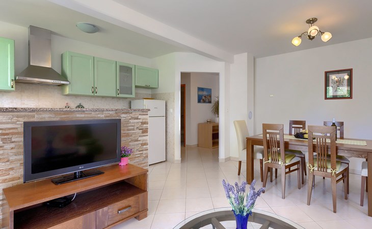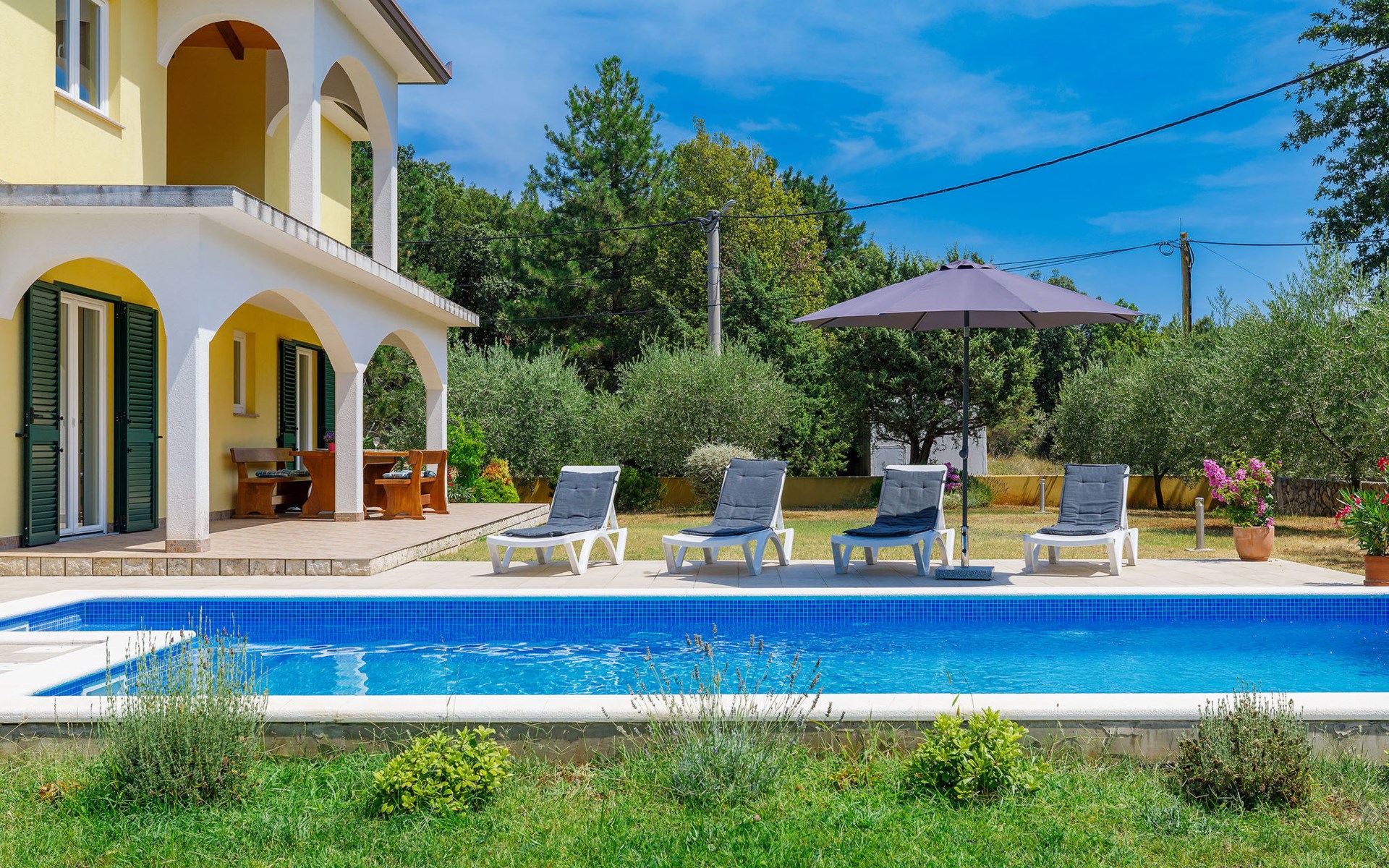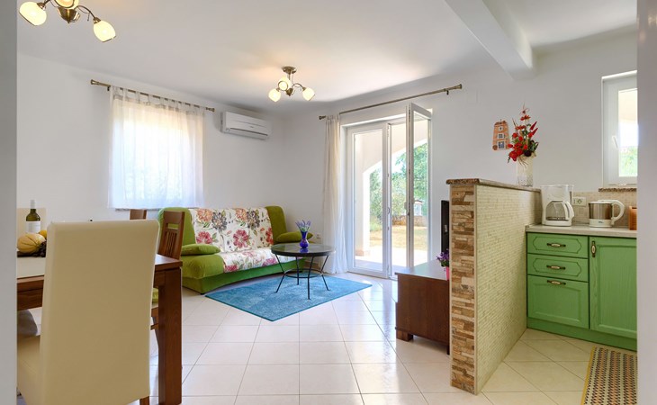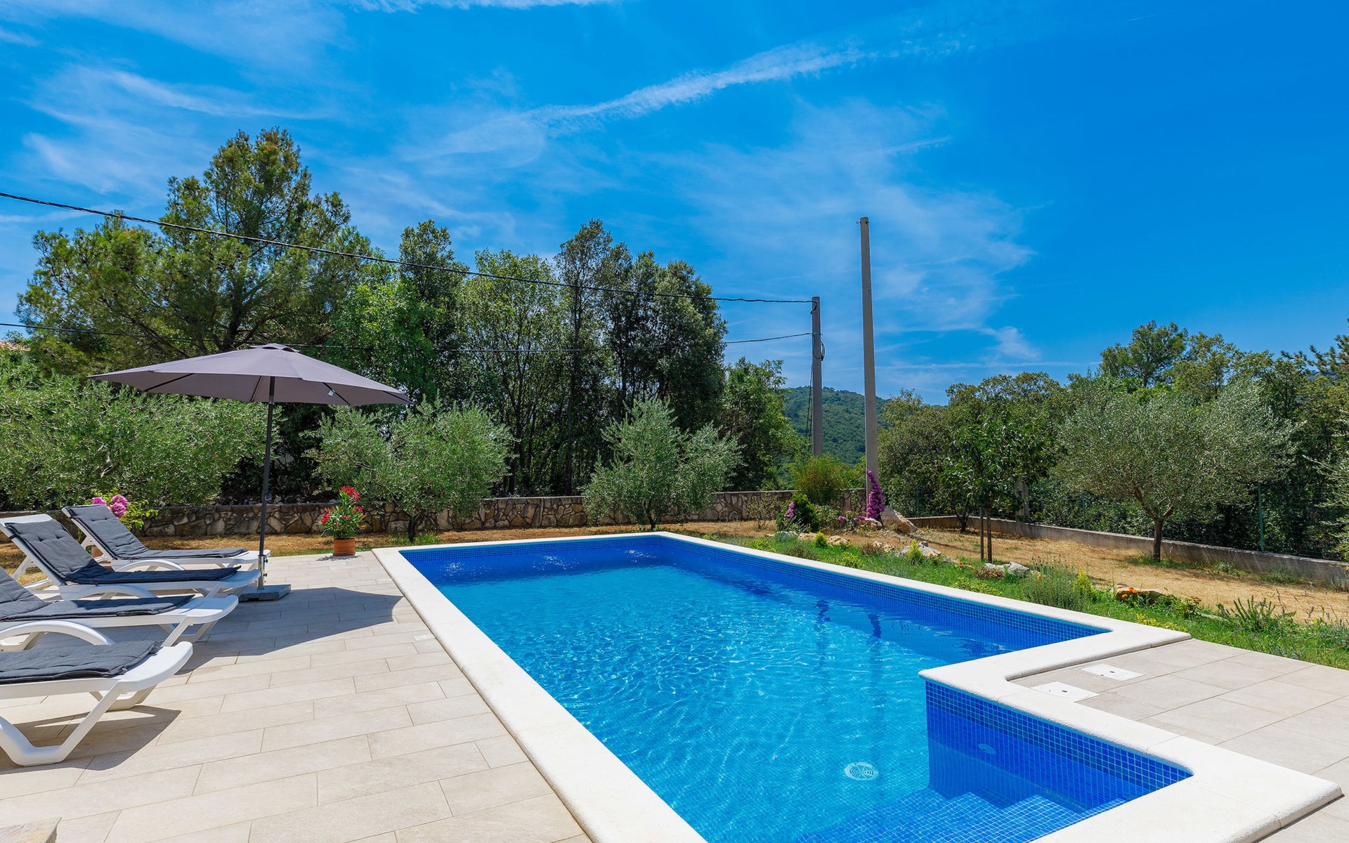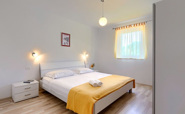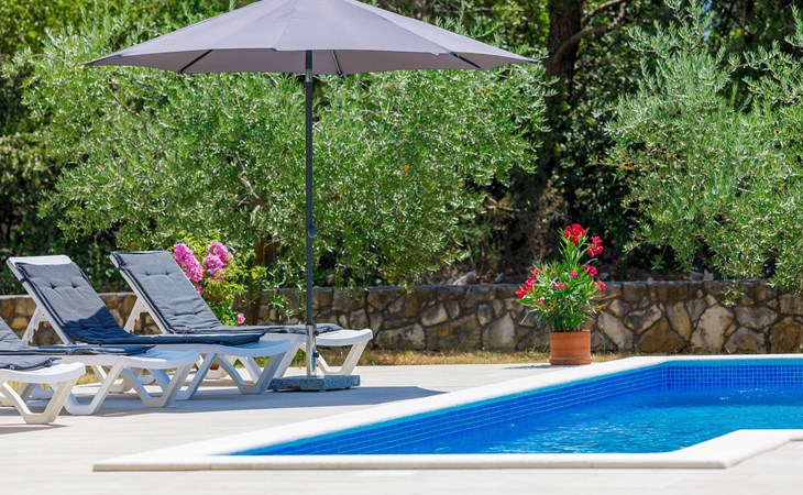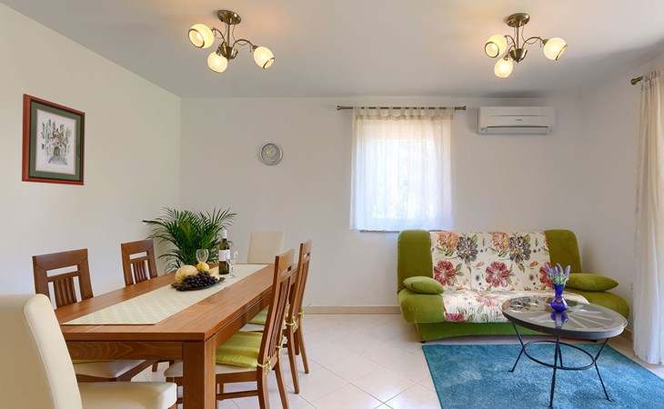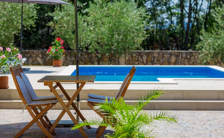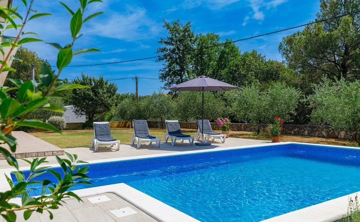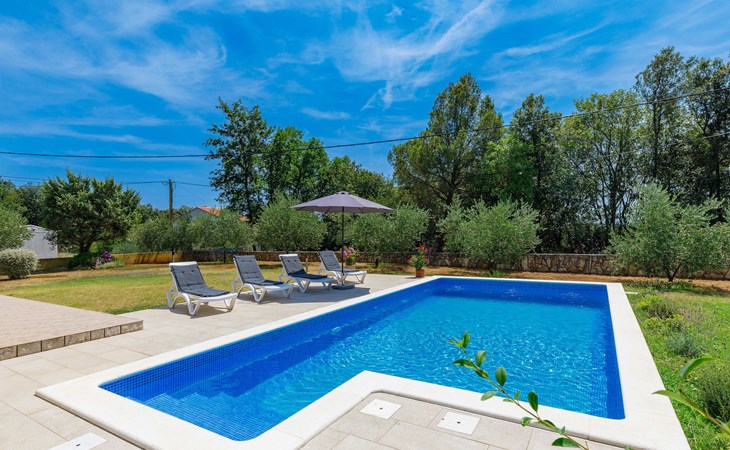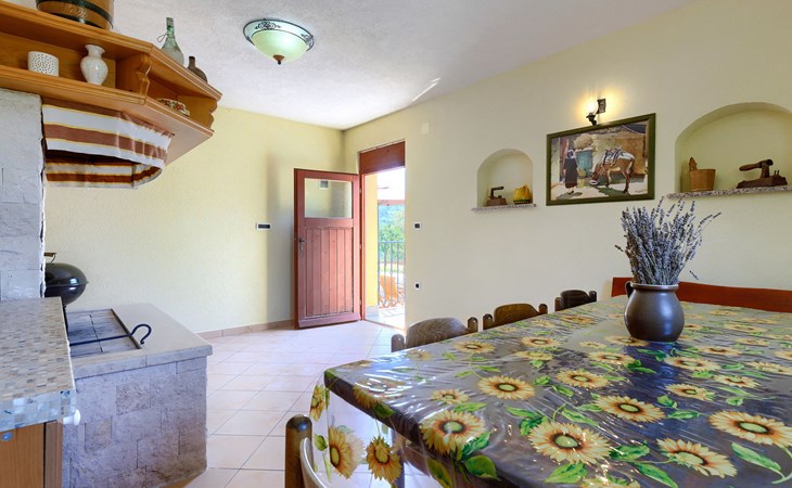 Einfamilienhaus "Carla". Im Ortsteil Smolići, 1.5 km vom Zentrum von Labin, 3 km vom Zentrum von Rabac, 3 km vom Meer, 3 km vom Strand. Zur Alleinbenutzung: Grundstück 1'200 m2 (eingezäunt) mit Rasen, Schwimmbad eckig (7 x 4 m, 140 cm tief, saisonale Verfügbarkeit: 29.Apr. - 26.Nov.) mit Innentreppe. Im Hause: Internetzugang, Waschmaschine. Parkplatz (für 2 Autos) auf dem Grundstück. Einkaufsgeschäft 1.5 km, Supermarkt 2 km, Restaurant 500 m, Bushaltestelle 2.2 km, Kieselstrand 3 km, Felsstrand 3 km. Bitte beachten: Das 1. Stockwerk ist geschlossen und nicht bewohnt.