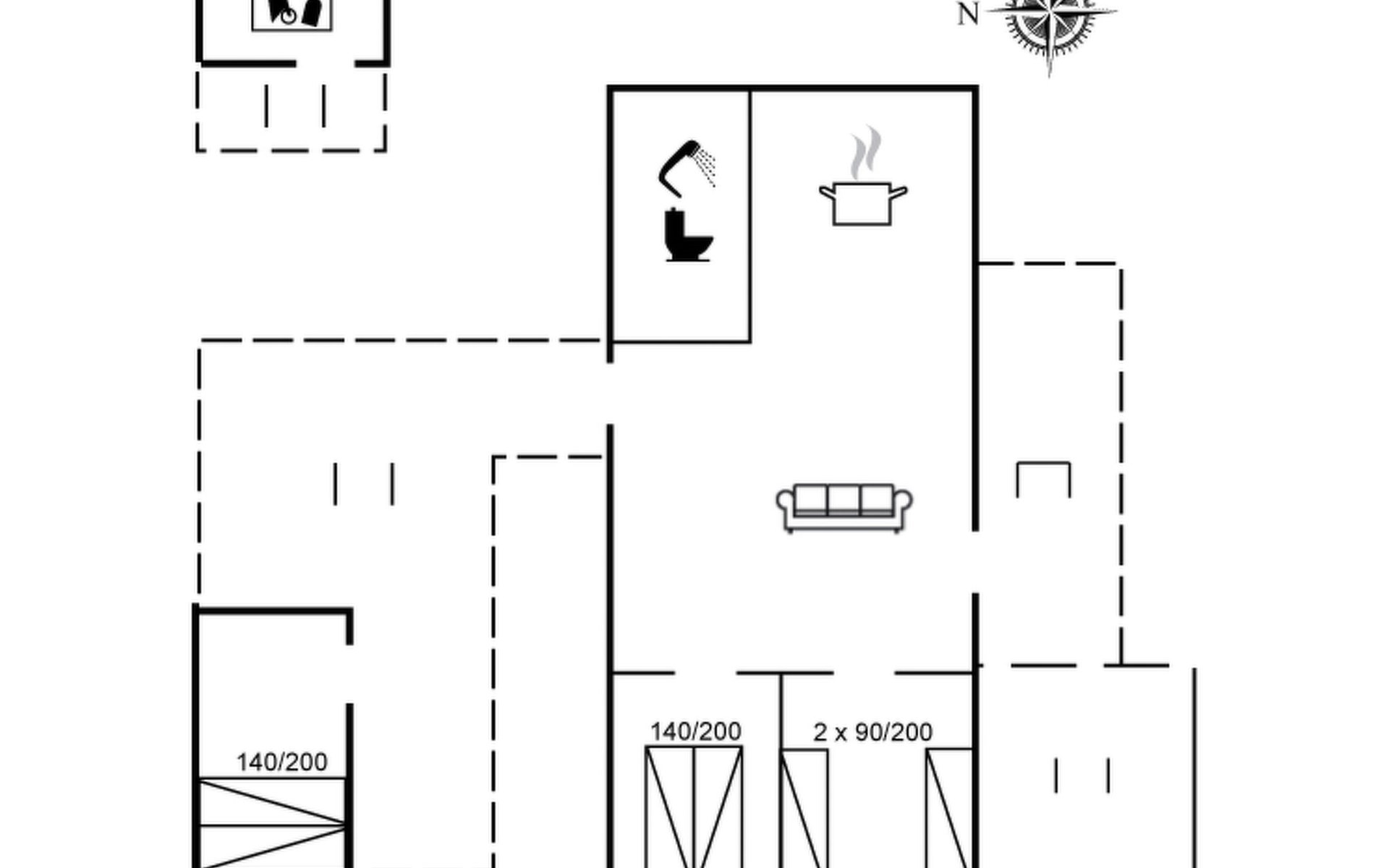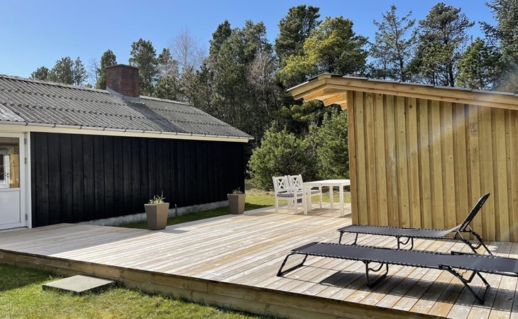 Einfamilienhaus, Baujahr 1968. 3 km vom Meer. Zur Alleinbenutzung: naturbelassenes Grundstück 2'572 m2. Terrasse (61 m2), Kinderspielplatz. Im Hause: Waschmaschine, Wäschetrockner. Parkplatz beim Haus. Lebensmittelgeschäft 2 km. Der Besitzer akzeptiert keine Jugendgruppen.