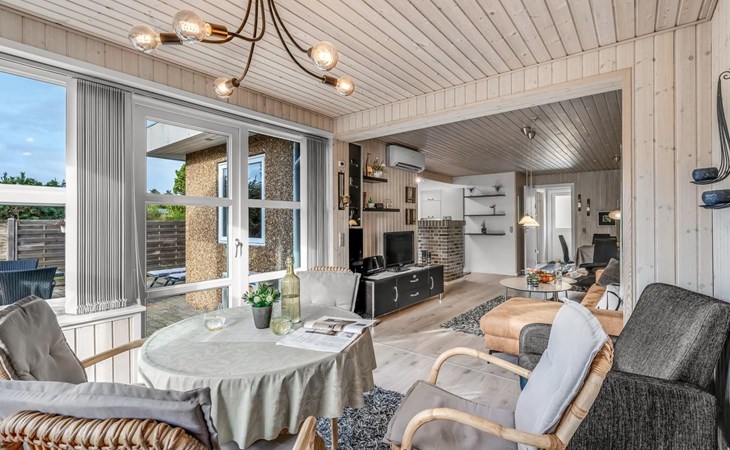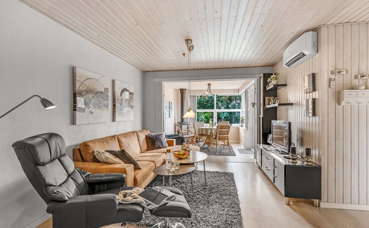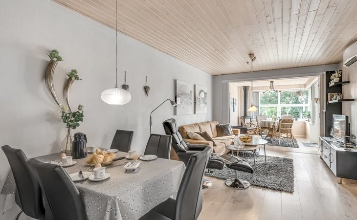 Einfamilienhaus, Baujahr 1978. 900 m vom Meer. Zur Alleinbenutzung: naturbelassenes Grundstück 400 m2. Terrasse (60 m2), Grill, Kinderspielplatz (Schaukel). Im Hause: Waschmaschine, Wäschetrockner. Carport. Lebensmittelgeschäft 100 m. Der Besitzer akzeptiert keine Jugendgruppen.