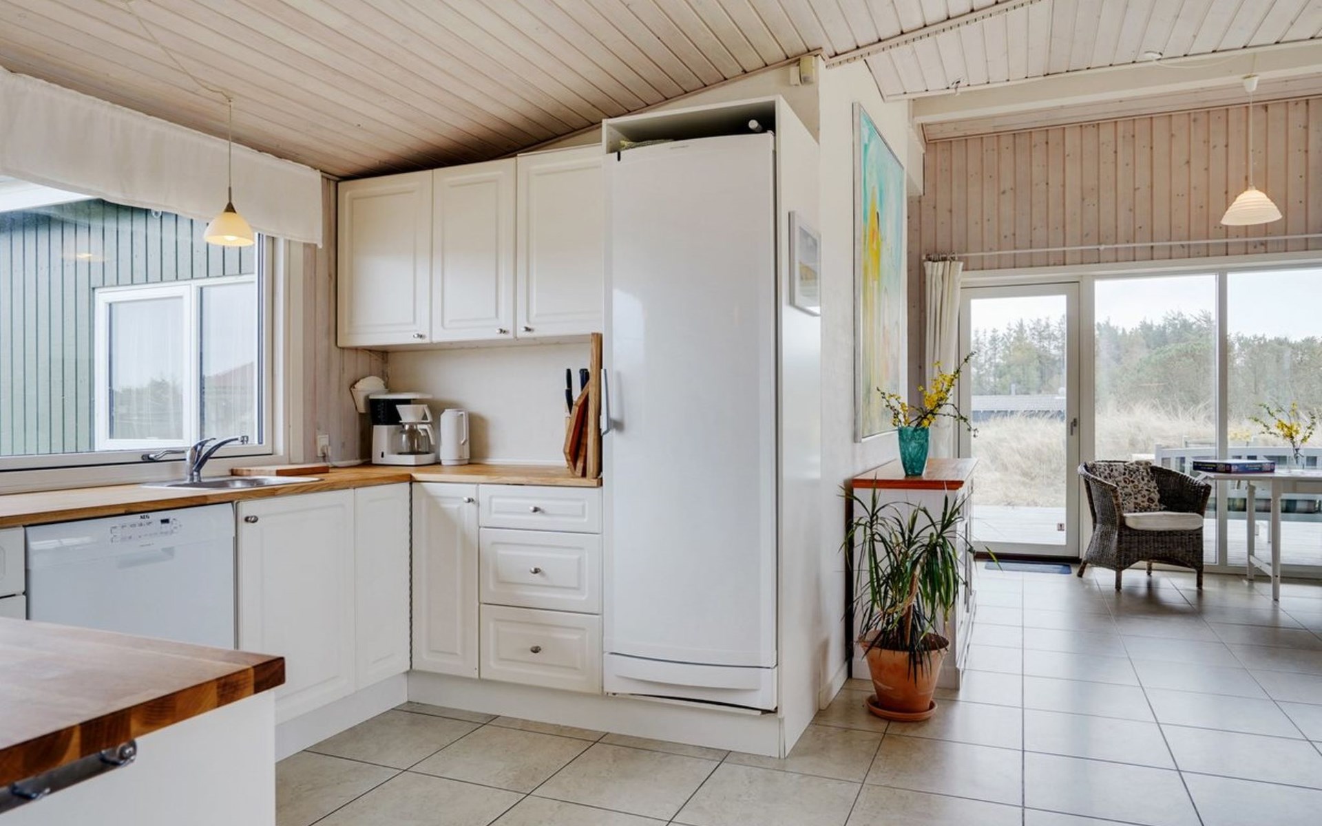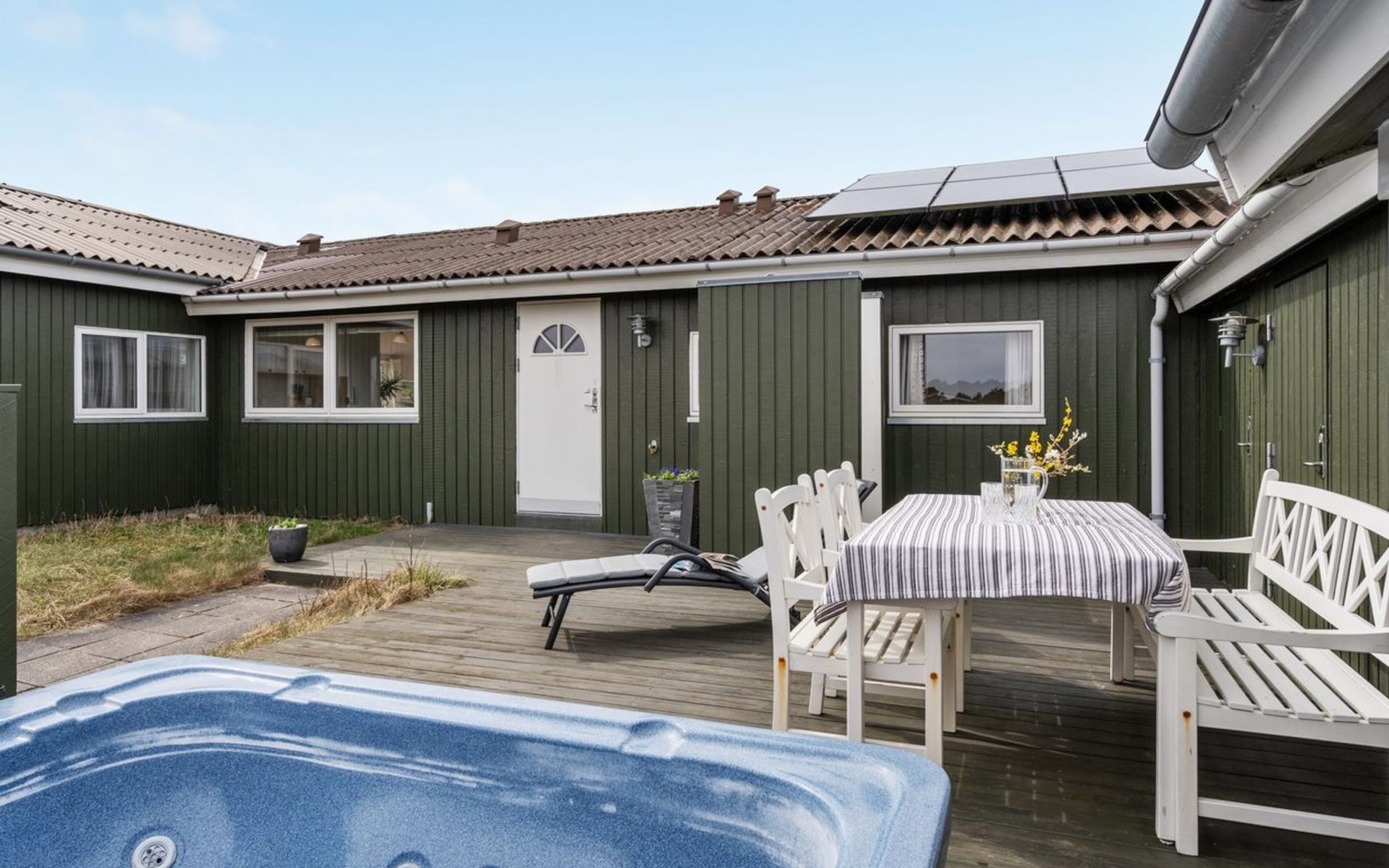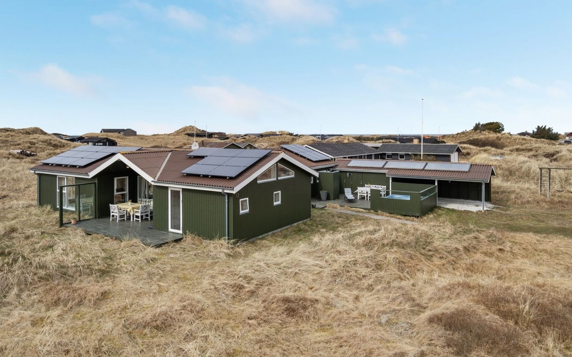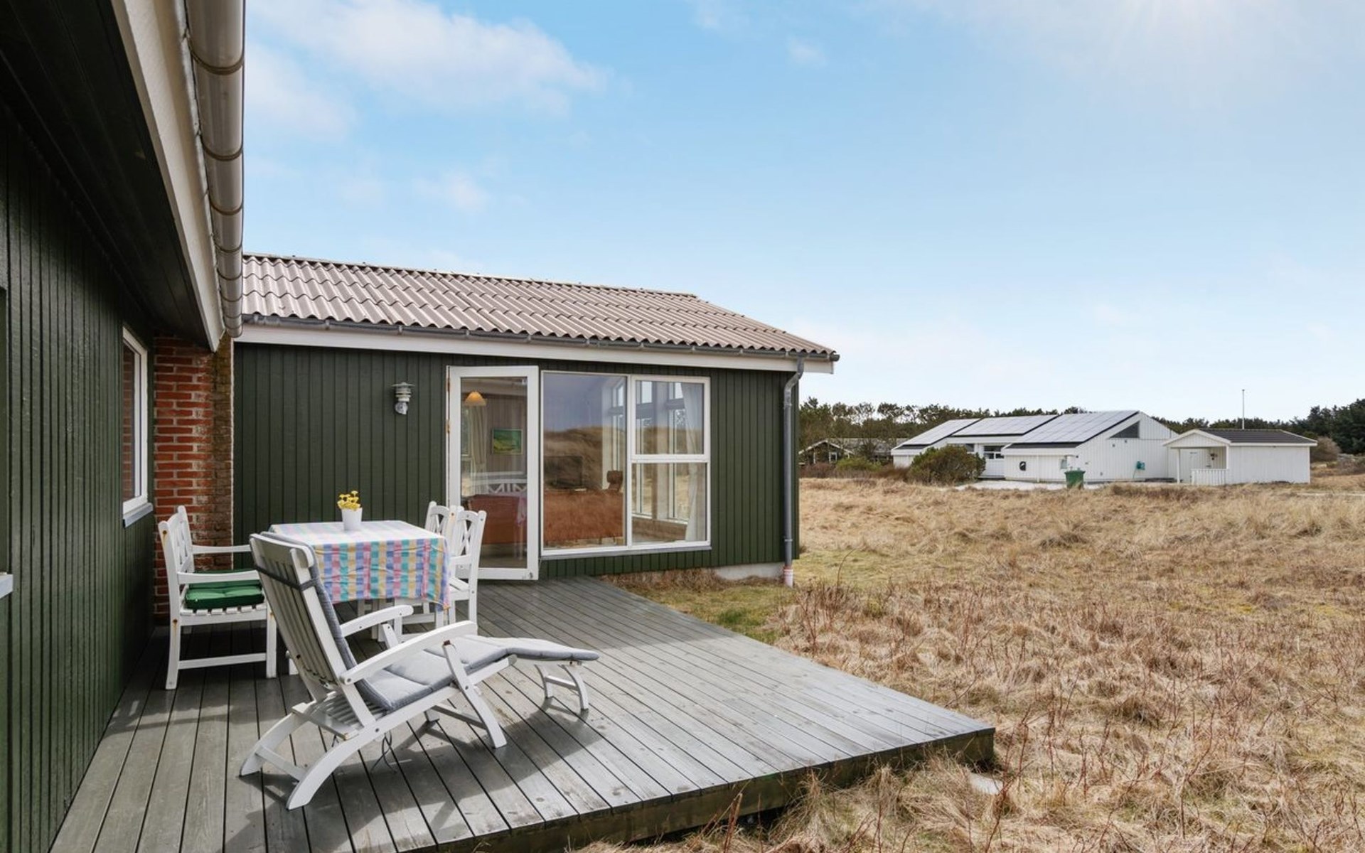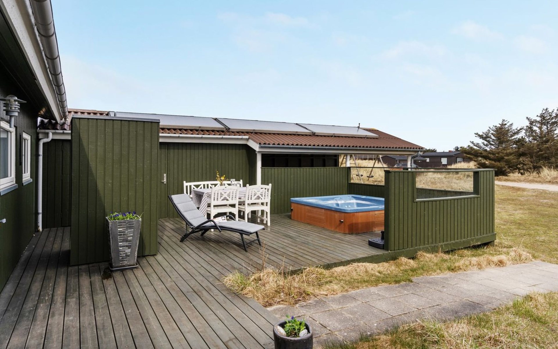 Einfamilienhaus, Baujahr 1984. 450 m vom Meer. Zur Alleinbenutzung: Grundstück 2'769 m2. Aussendusche, Terrasse (48 m2), Kinderspielplatz (Schaukel). Im Hause: Sauna, Waschmaschine, Wäschetrockner. Carport. E-Ladestation. Lebensmittelgeschäft 700 m. Der Besitzer akzeptiert keine Jugendgruppen.