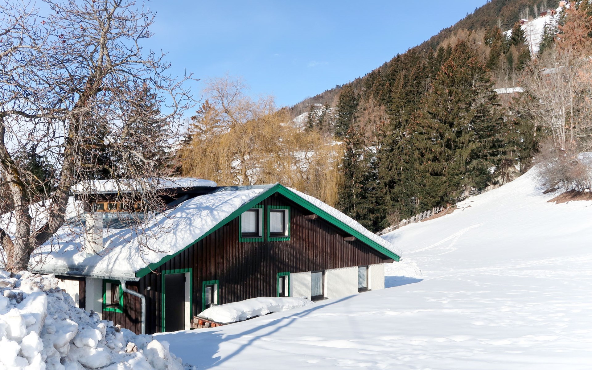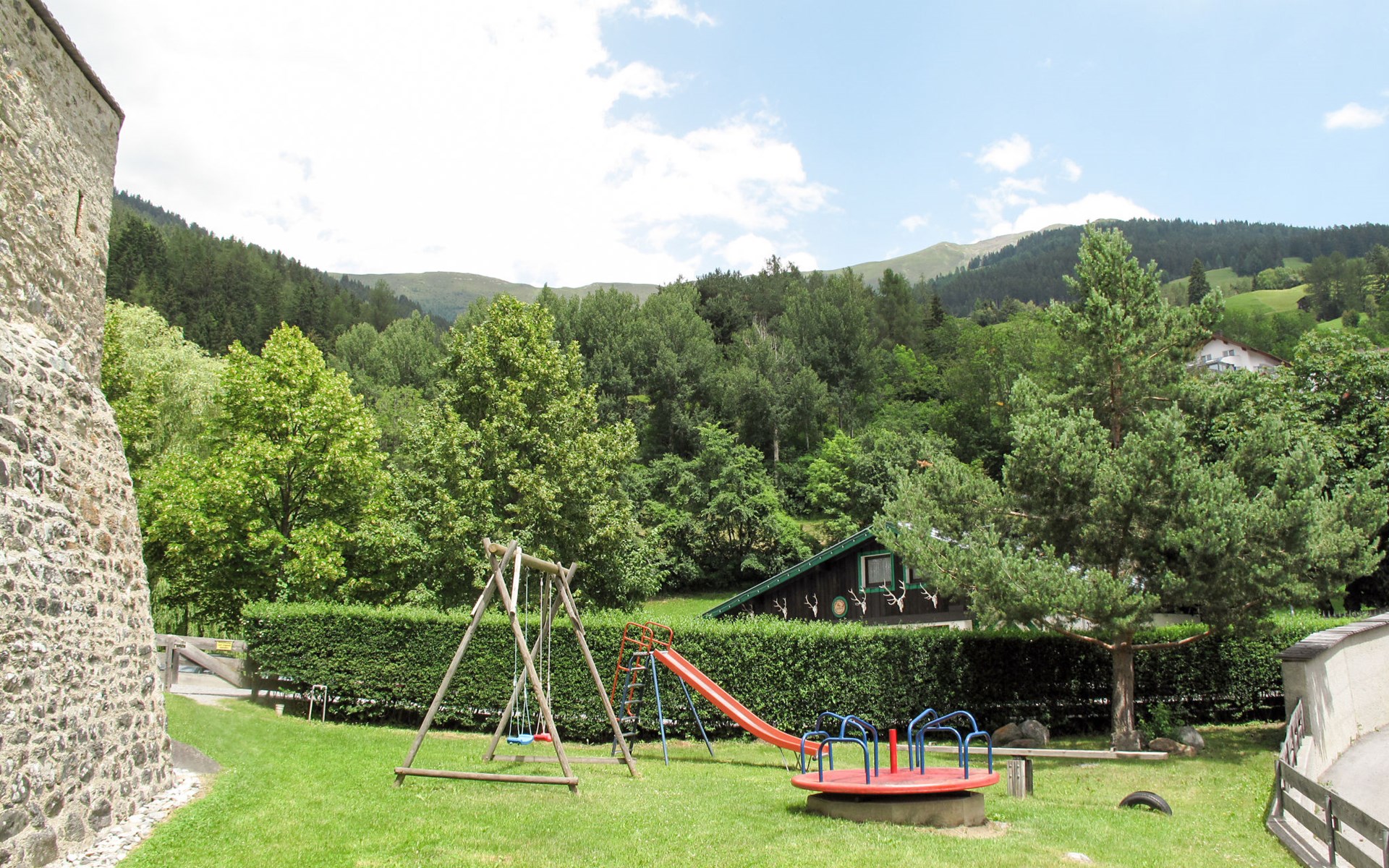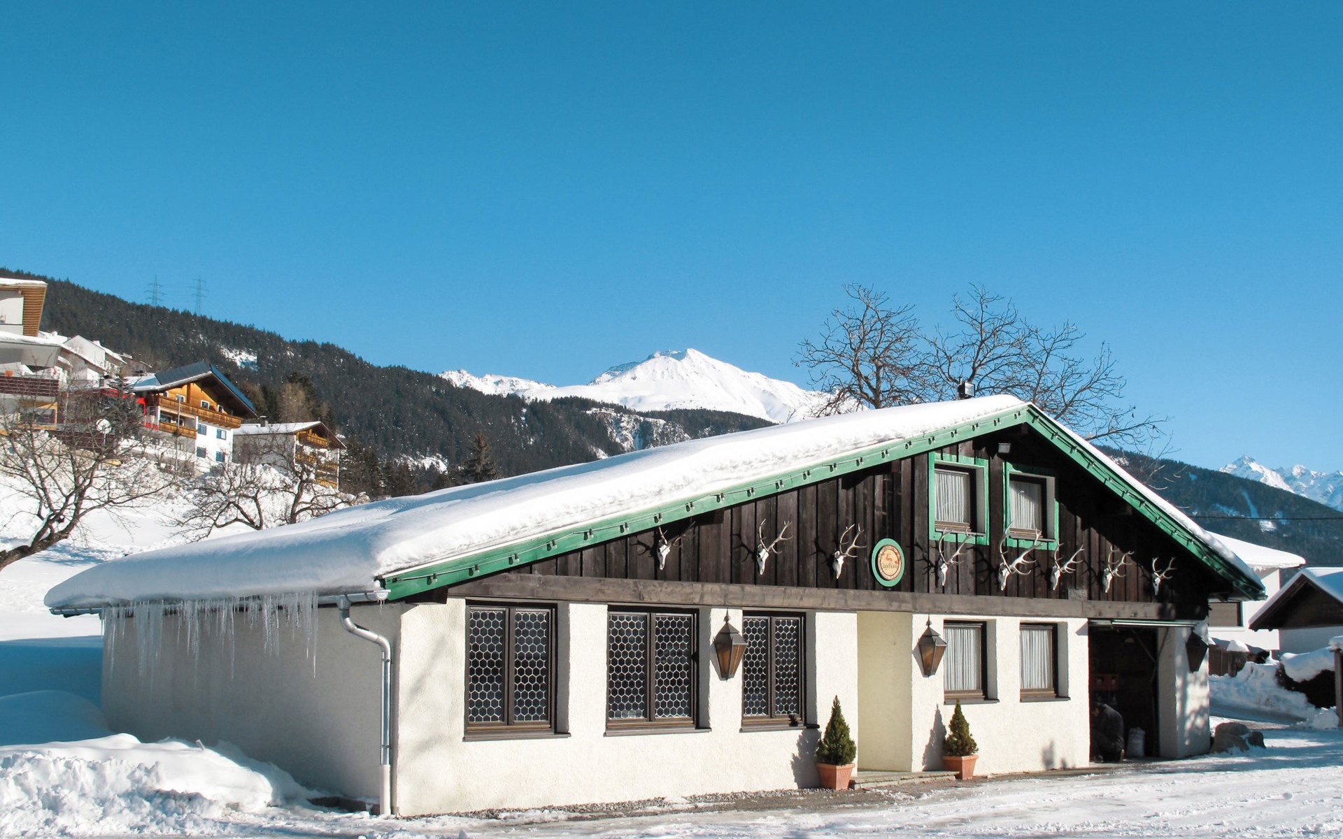 Chalet "Jagdhaus Biedenegg", 1'150 m.ü.M.. Oberhalb von Fliess, im Ortsteil Silberplan, 850 m vom Zentrum von Fliess, 8 km vom Zentrum von Landeck/Zams, im Bezirk Burg Biedenegg, 4.5 km vom Skigebiet. Zur Mitbenutzung: Grundstück, Park, Garten (nicht eingezäunt) mit Bäumen, Wiese, Obstgarten, Teich. Kinderspielplatz. Einkaufsgeschäft 850 m, Supermarkt 8 km, Bushaltestelle 850 m, Bahnstation "Landeck" 8 km, Freibad 2 km, Hallenbad 8 km, Naturbadeteich 2 km. Golfplatz (9 Loch) 50 km, Bergeisenbahn 12 km, Skilift 12 km, Skipisten 12 km, Skibushaltestelle 150 m, Skischule 4.5 km, Schlittelbahn 4.5 km, Langlaufloipe 2.5 km. Bekannte Skigebiete sind gut erreichbar: Fiss/Serfaus 20 km, St. Anton am Arlberg 27 km, Kaunertaler Gletscher 42 km. Bitte beachten: Gratis Skibus. Der gratis Skibus fährt zum Skigebiet Venet-Süd. Bitte beachten: Ferienwohnung Ref. AT6521.610.7 befindet sich auf dem gleichen Grundstück. Winter: Schneekettenpflicht bei entsprechenden Witterungsverhältnissen!