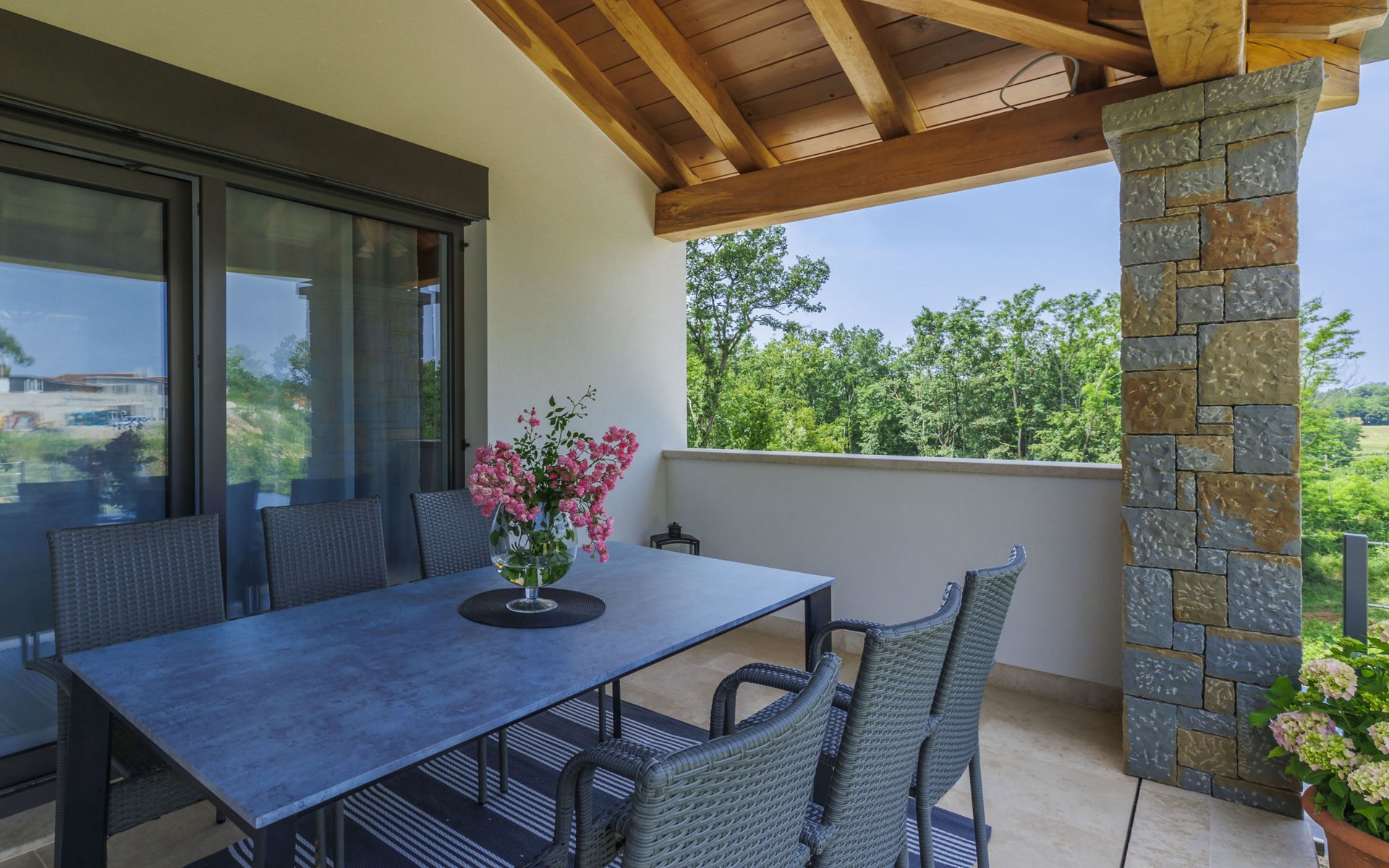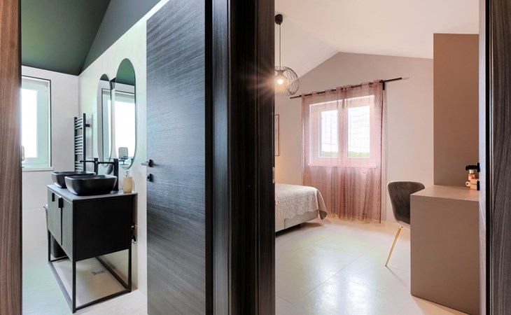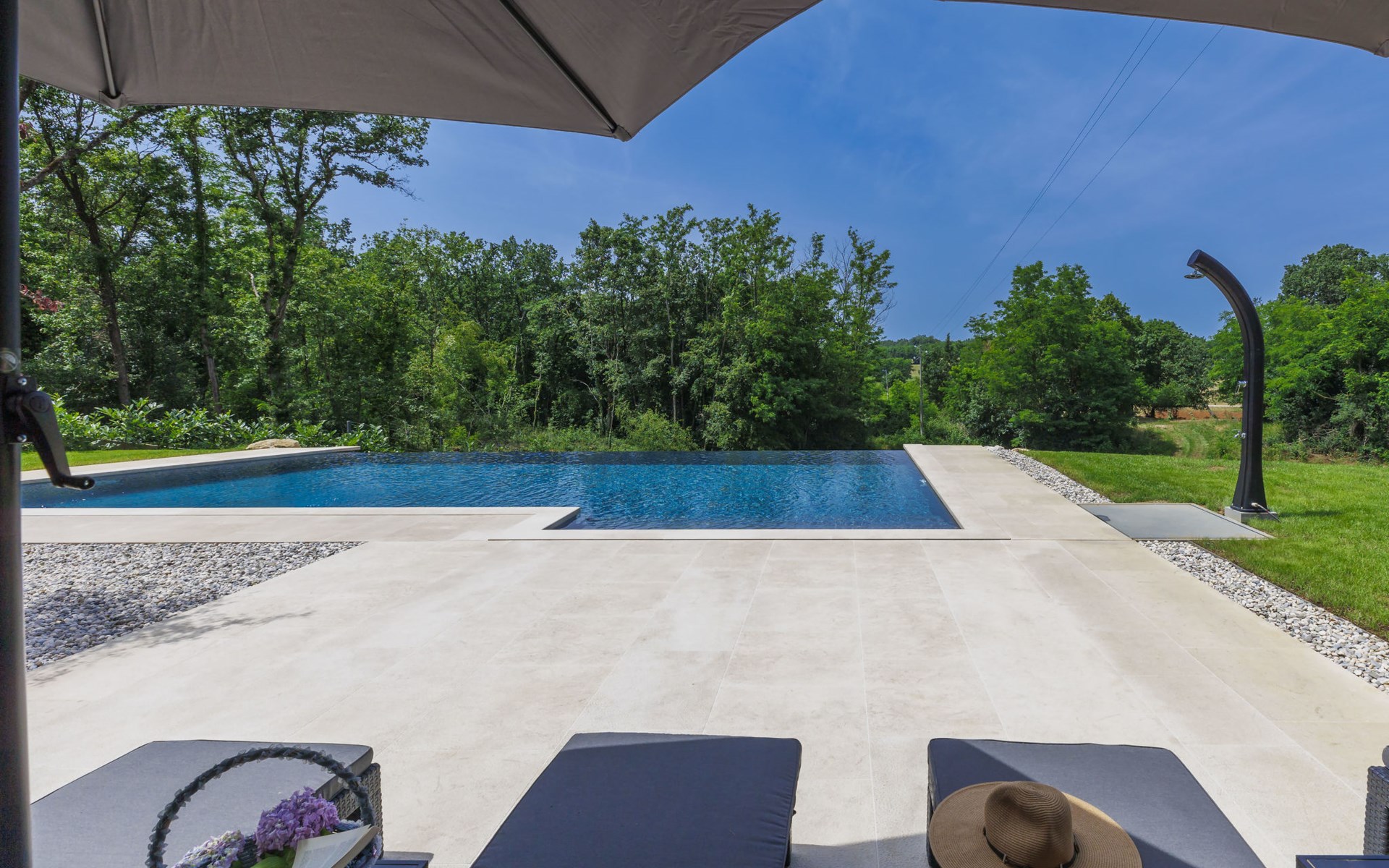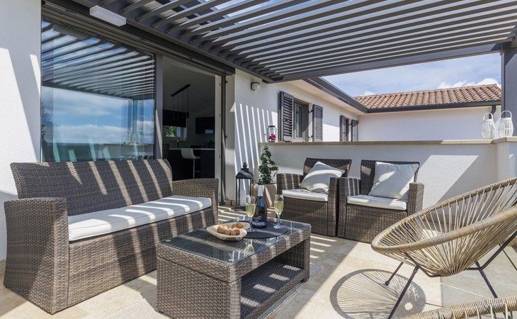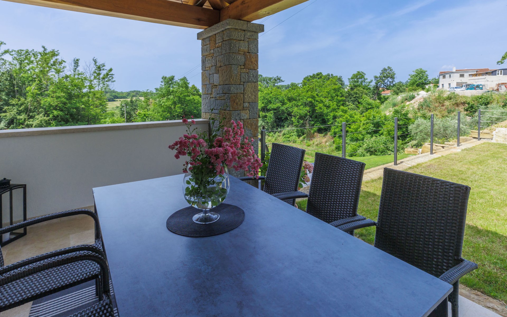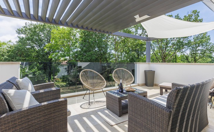 Karojba 4 km von Motovun: Sehr schönes Doppelhaus "Rokvilla", auf 2 Stockwerken. Im Weiler Krizmani, 4 km vom Zentrum von Karojbe, sonnige Lage, 20 km vom Meer. Zur Alleinbenutzung: Grundstück 800 m2, Garten mit Rasen, Schwimmbad eckig (51 m2, 138 cm tief, saisonale Verfügbarkeit: 01.Mai. - 15.Okt.) mit Innentreppe und Salzelektrolyse-Reinigungssystem. Aussendusche, Tischtennis, Terrasse (10 m2), Gartenmöbel, Grill, Poolpflege durch den Besitzer/Gärtner. Im Hause: Internetzugang, Waschmaschine. Parkplatz (für 2 Autos) beim Haus auf dem Grundstück. Einkaufsgeschäft 3 km, Restaurant 4 km, Bushaltestelle 6.3 km, Kieselstrand 25 km, Felsstrand 20 km. Bitte beachten: geeignet für Familien. Der Besitzer akzeptiert keine Jugendgruppen.