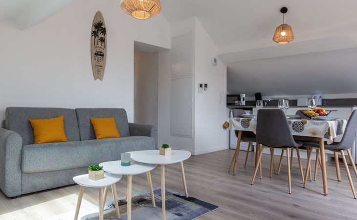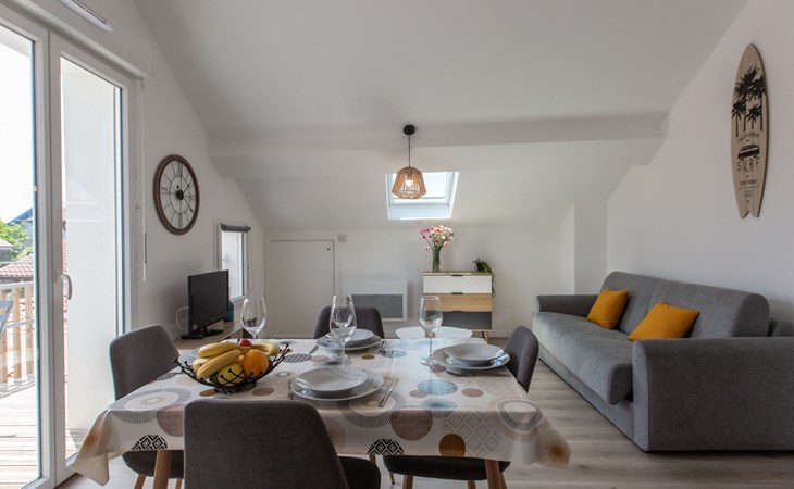 Capbreton: Appartementhaus "Cap Océan", auf 2 Stockwerken, Baujahr 2023. 17 Wohnungen in der Residenz. Im Ort, 150 m vom Meer, 150 m vom Strand. In der Anlage: Waschmaschine, Wäschetrockner (zur Mitbenutzung). Öffentliche Parkplätze auf der Strasse. Einkaufsgeschäft 300 m, Lebensmittelgeschäft 150 m, Supermarkt 1.8 km, Restaurant 50 m, Bäckerei 150 m, Fahrradverleih 100 m, Sandstrand "Du Prévent". Golfplatz (18 Loch) 4 km, Surfschule 150 m, Tennis 3 km, Minigolf 200 m, Reitstall 1 km. Nahe gelegene Sehenswürdigkeiten: Seignosse 15 km, Bayonne 22 km, Dax 37 km, Biarritz 37 km. Bekannte Seen in der Umgebung sind gut erreichbar: Réserve Naturelle des Marais d’Orx, Réserve Naturelle du courant d’Huchet.