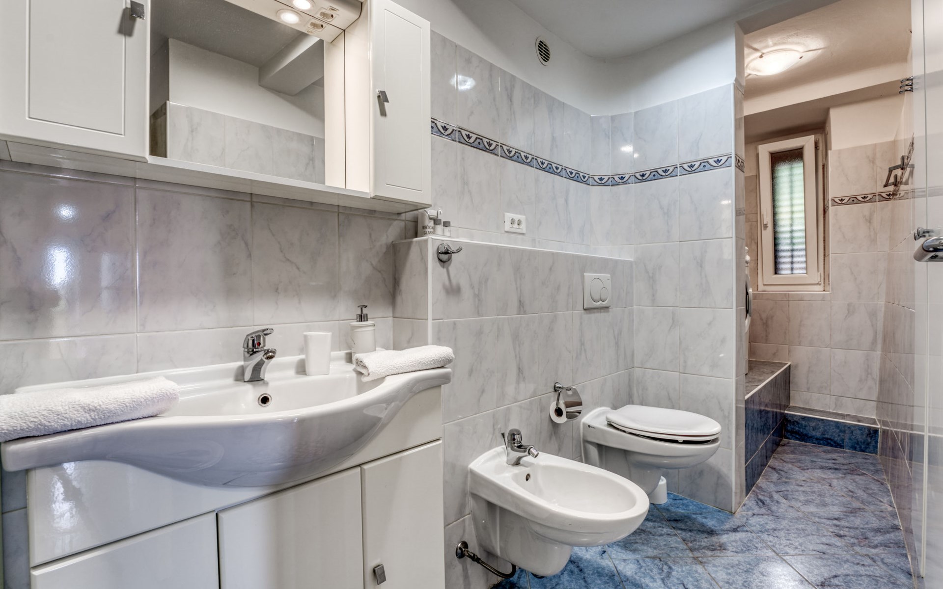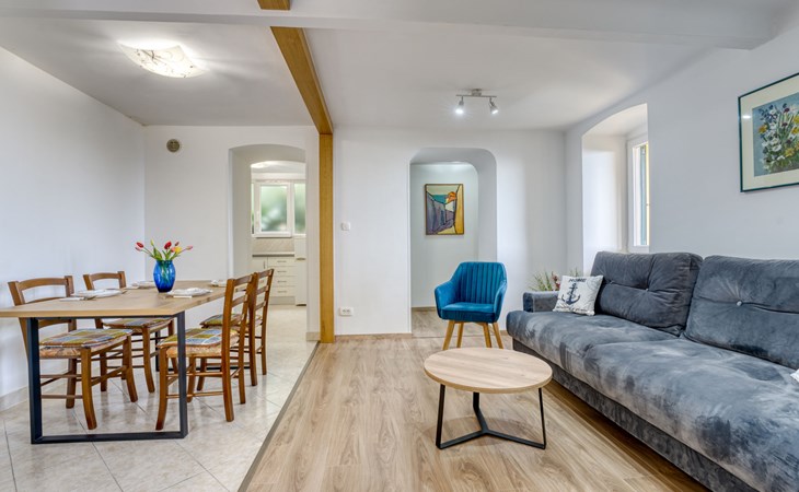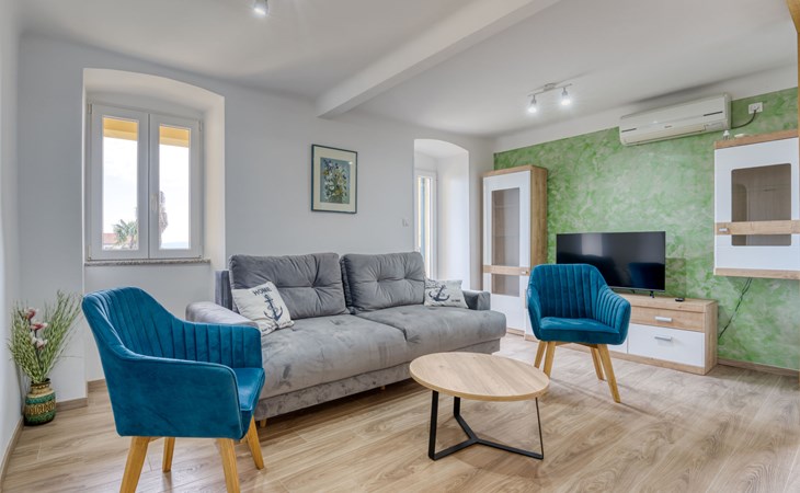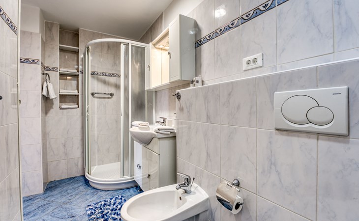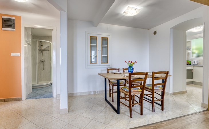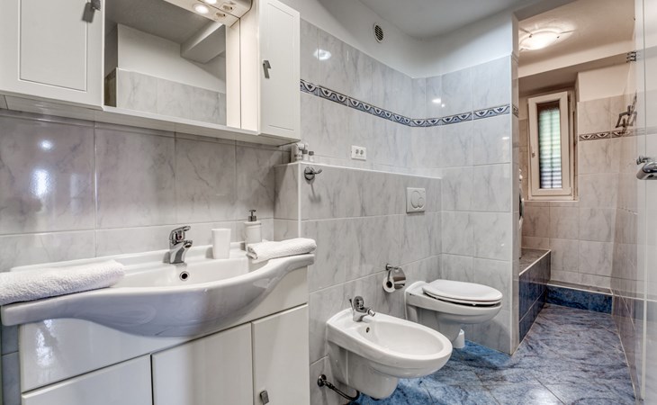 Mehrfamilienhaus "Vero". 400 m vom Zentrum von Opatija, sonnige Lage, 400 m vom Meer, vom Strand. Zur Mitbenutzung: Grundstück 1'000 m2 mit Pflanzen und Bäumen. Terrasse (30 m2), Gartenmöbel, Grill. Im Hause: Internetzugang. Parkplatz beim Haus auf dem Grundstück. Einkaufsgeschäft 450 m, Supermarkt 1.2 km, Restaurant 400 m, Bushaltestelle 500 m, Strandbad, betonierter Strand 400 m. Tennis 250 m, Wanderwege ab Haus 400 m.