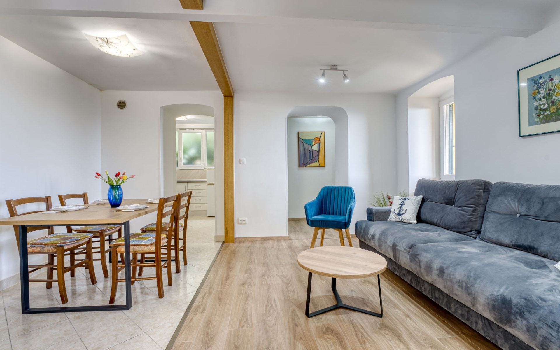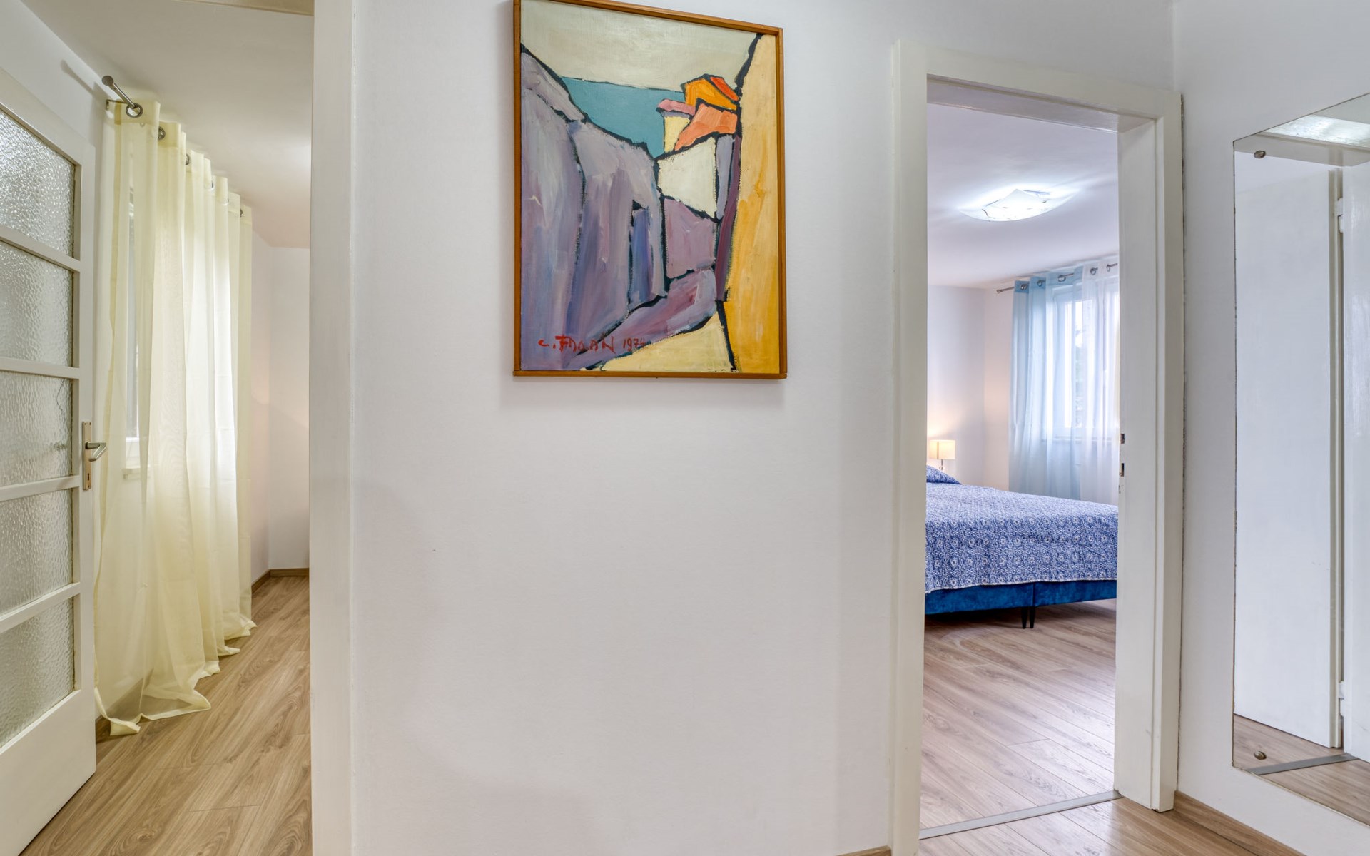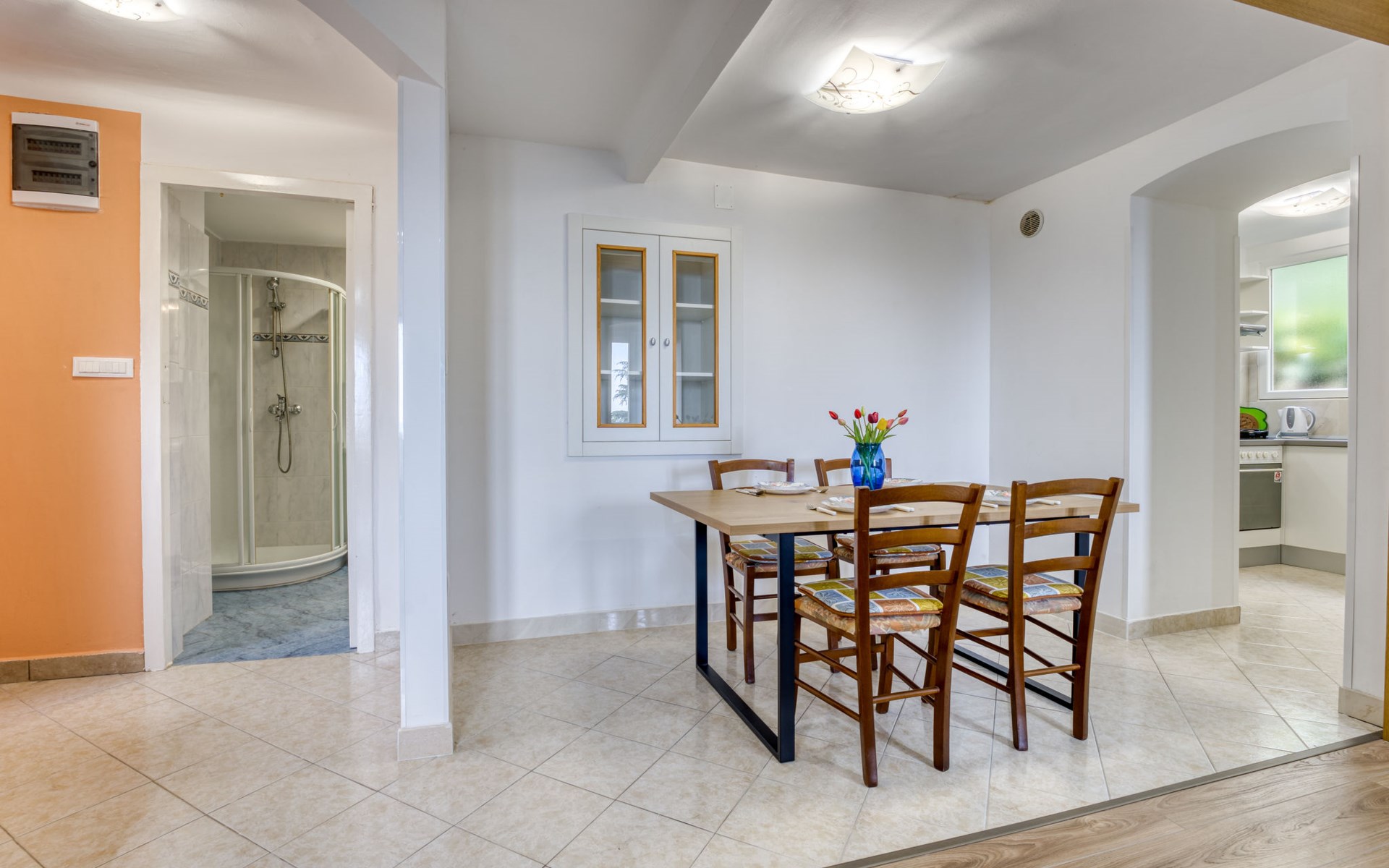 Mehrfamilienhaus "Vero". 400 m vom Zentrum von Opatija, sonnige Lage, 400 m vom Meer, vom Strand. Zur Mitbenutzung: Grundstück 1'000 m2 mit Pflanzen und Bäumen. Terrasse (30 m2), Gartenmöbel, Grill. Im Hause: Internetzugang. Parkplatz beim Haus auf dem Grundstück. Einkaufsgeschäft 450 m, Supermarkt 1.2 km, Restaurant 400 m, Bushaltestelle 500 m, Strandbad, betonierter Strand 400 m. Tennis 250 m, Wanderwege ab Haus 400 m.
