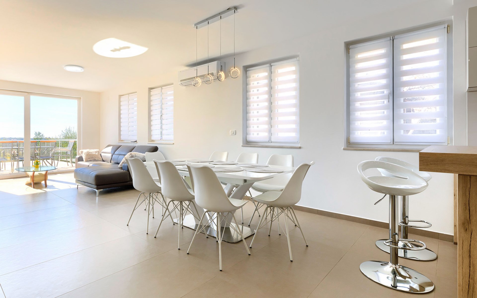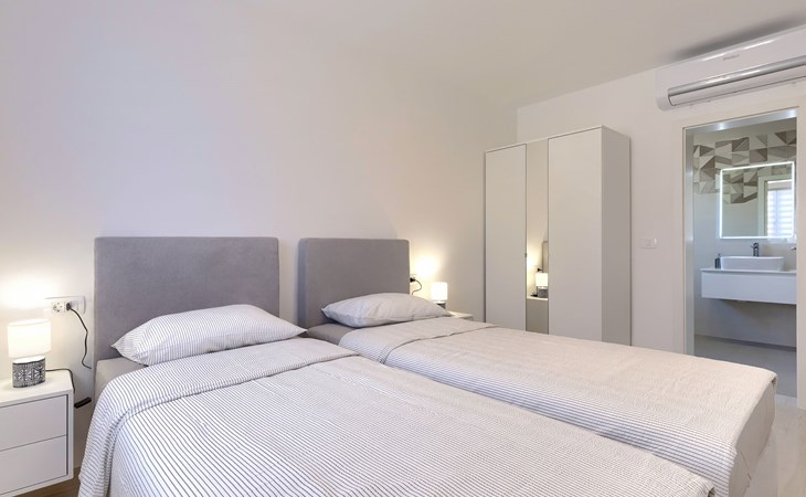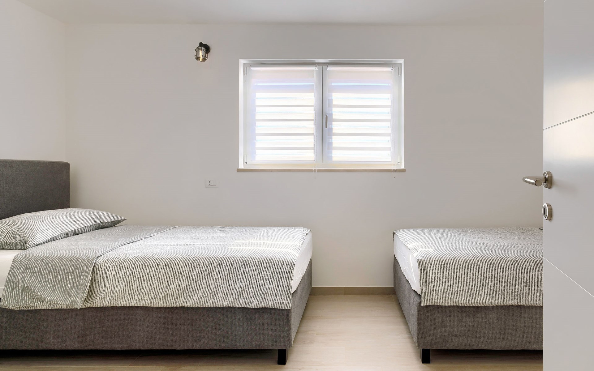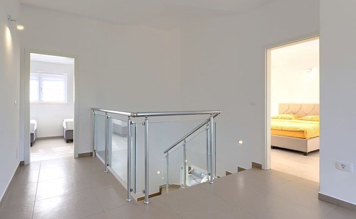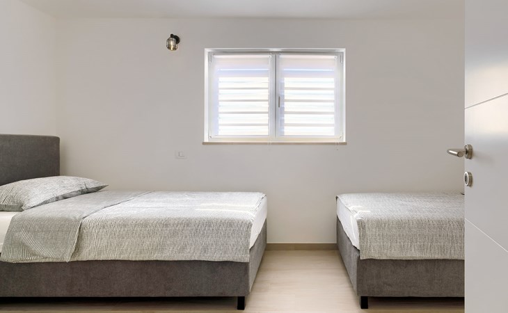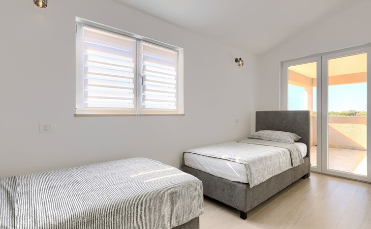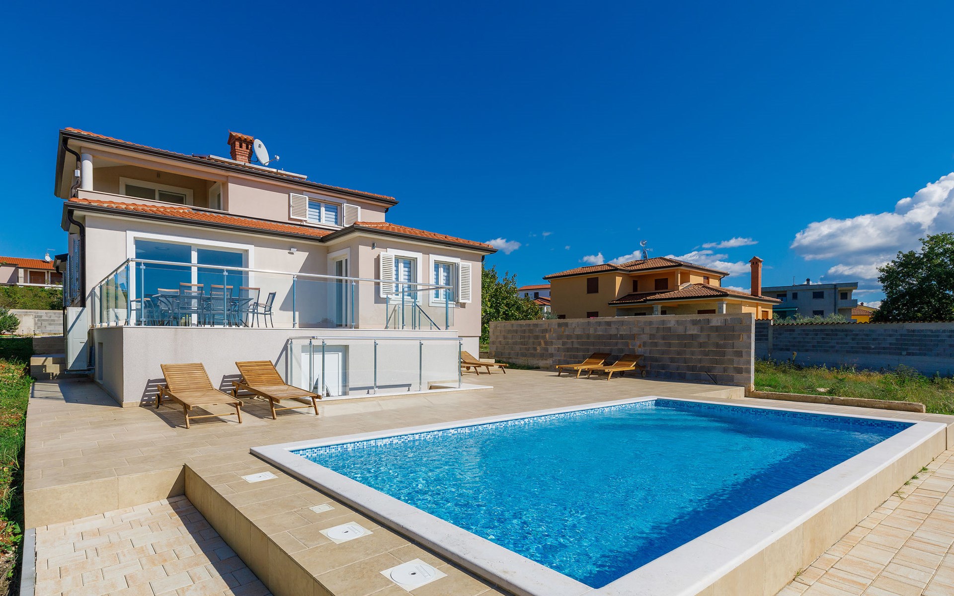 Einfamilienhaus "Villa Luna Maris", auf 2 Stockwerken. Im Weiler Vilanija, 5 km vom Zentrum von Umag, ruhige, sonnige Lage, 5 km vom Meer, in einer Sackgasse. Zur Alleinbenutzung: Grundstück 700 m2, Schwimmbad eckig (7 x 4 m, 150 cm tief, saisonale Verfügbarkeit: 01.Apr. - 30.Okt.) mit Innentreppe. Aussendusche. Im Hause: Internetzugang, Waschmaschine. Parkplatz (für 3 Autos) beim Haus auf dem Grundstück. Einkaufsgeschäft 5 km, Supermarkt 5 km, Restaurant 2 km, Bushaltestelle 2 km, Kieselstrand 5 km, Felsstrand 5 km. Wanderwege ab Haus 100 m, Radweg 150 m. Der Besitzer akzeptiert keine Jugendgruppen. Die Nachbarschaft ist sehr lärmempfindlich. Ruhe und gutes Benehmen wird erwartet. Das veranstalten von Feiern ist nicht gestattet.