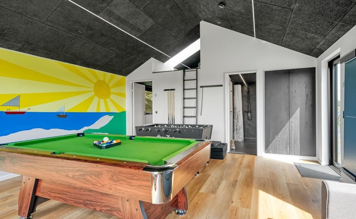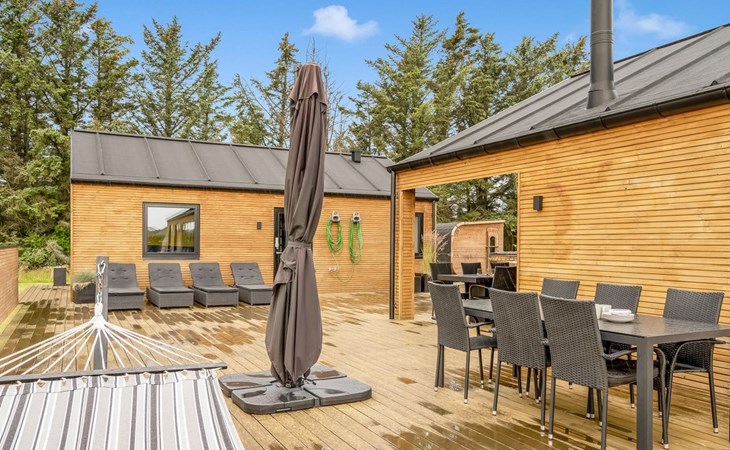 Einfamilienhaus, Baujahr 2023. 1.5 km vom Meer. Zur Alleinbenutzung: naturbelassenes Grundstück 2'713 m2. Aussendusche, Grill, Kinderspielplatz (Rutschbahn, Schaukel). Im Hause: Sauna, Tischfussball, Waschmaschine, Wäschetrockner. Parkplatz beim Haus. E-Ladestation. Lebensmittelgeschäft 1.2 km. Der Besitzer akzeptiert keine Jugendgruppen.