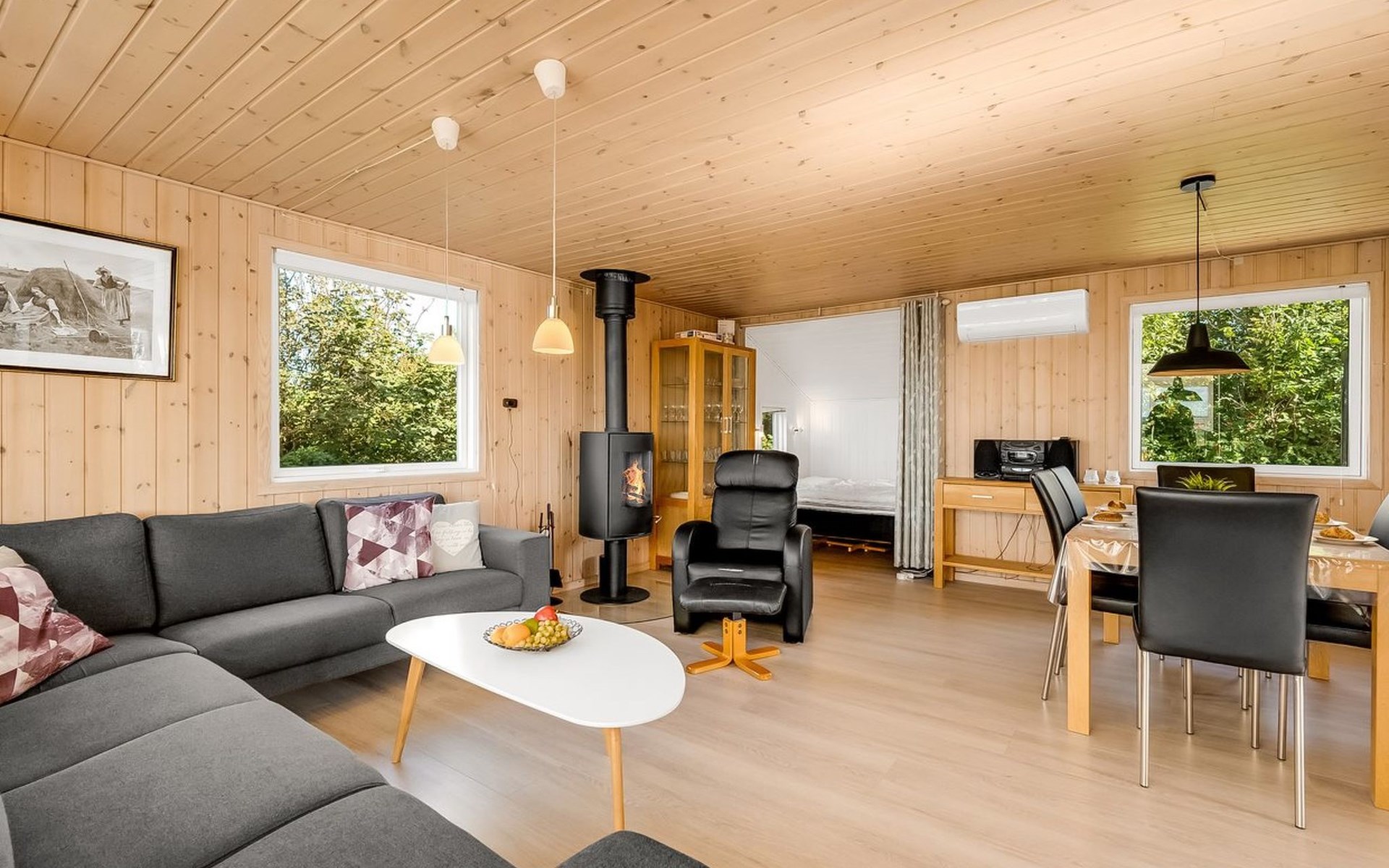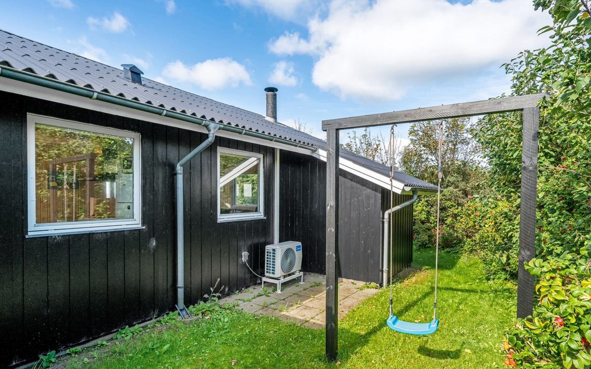Einfamilienhaus, Baujahr 1985. Zur Alleinbenutzung: Grundstück 998 m2, gepflegter Garten. Terrasse (20 m2), Kinderspielplatz (Schaukel). Im Hause: Waschmaschine. Parkplatz beim Haus. E-Ladestation. Lebensmittelgeschäft 500 m.