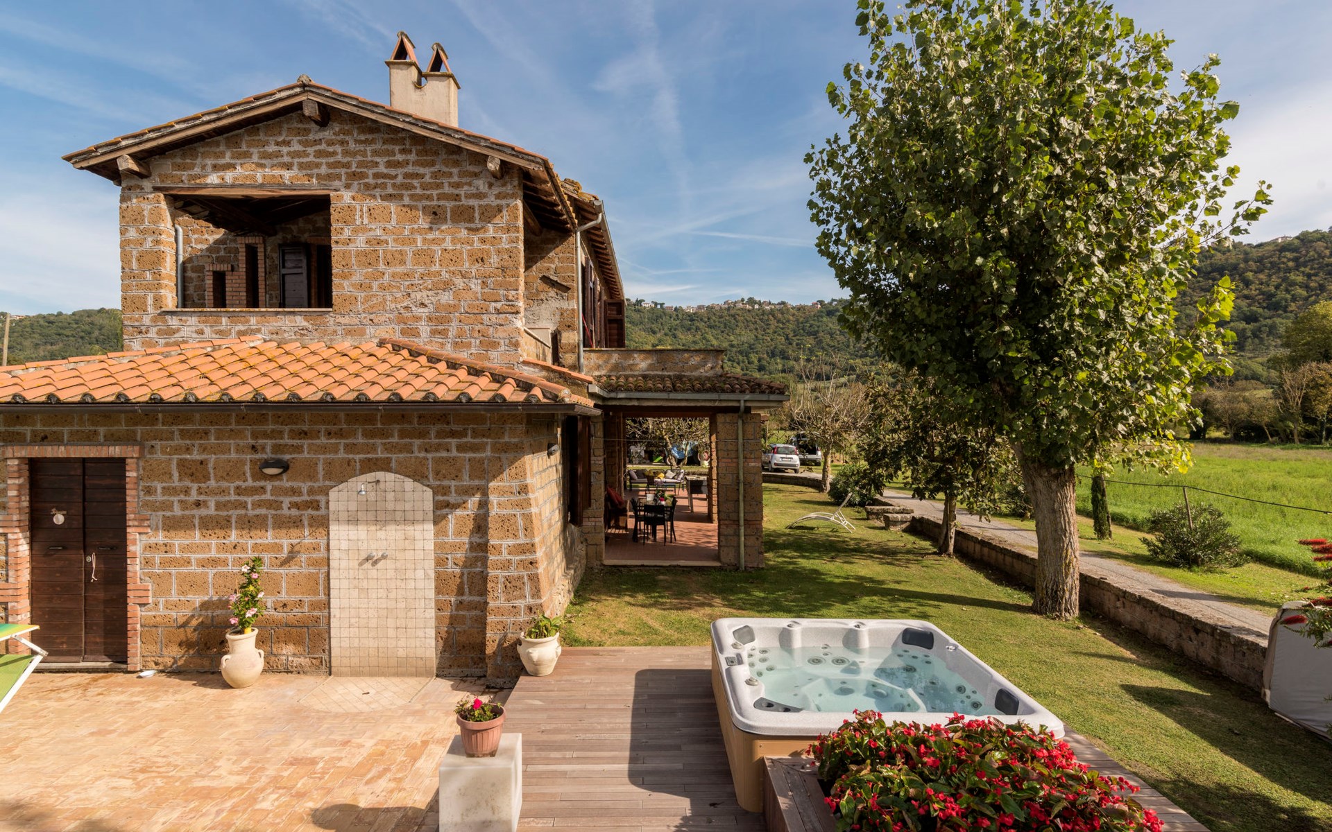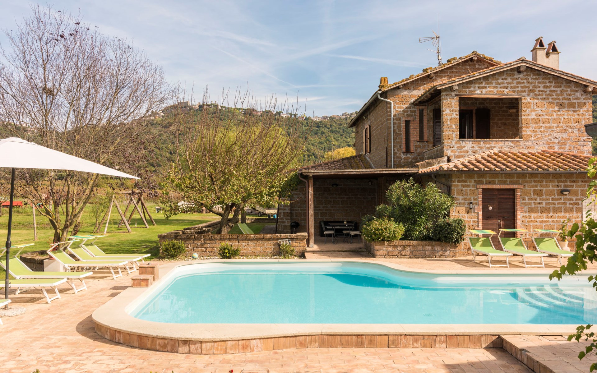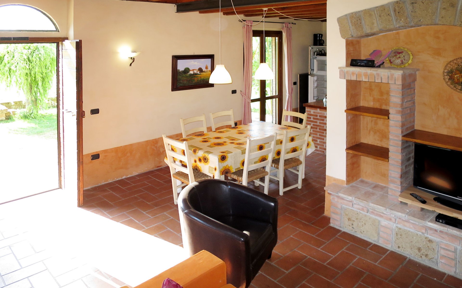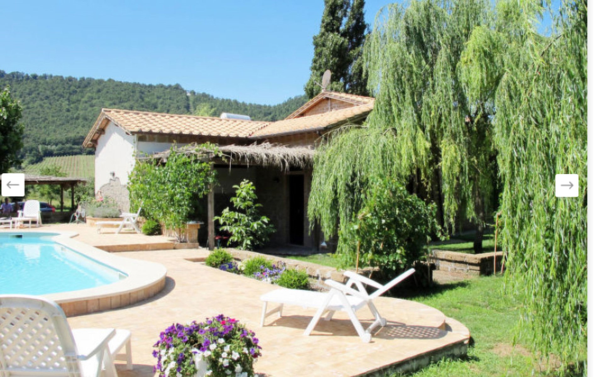 Schöner, gemütlicher Landsitz "Podere La Cavallara", umgeben von Feldern. 6 Wohnungen in der Residenz. 4 km vom Zentrum von Montefiascone, 17 km vom Zentrum von Viterbo, 85 km vom Zentrum von Roma, 1.5 km vom See. Zur Mitbenutzung: Grundstück 2'500 m2, gepflegter Garten mit Rasen und Bäumen, Schwimmbad (12 x 6 m, 140 - 150 cm tief, saisonale Verfügbarkeit: 16.Mai. - 03.Okt.) mit Salzelektrolyse-Reinigungssystem. Aussendusche, Gartenmöbel, Grill, Kinderspielplatz. In der Anlage: Wireless LAN, Sprudelbad (extra). Waschmaschine (zur Mitbenutzung), Fahrräder vorhanden. Zufahrt (200 m Naturweg). Parkplatz (überdacht) auf dem Grundstück. Einkaufsgeschäft 1.5 km, Supermarkt 4 km, Bushaltestelle 2.8 km, Bahnstation "Montefiascone" 7 km, Sandstrand "Lido Di Tarquinia" 50 km, Grasstrand "Lago Di Bolsena" 1.5 km, Thermalbad "Terme Dei Papi" 26 km, Badesee "Lago di Bolsena" 1.5 km. Nahe gelegene Sehenswürdigkeiten: Bolsena 18 km, Civita Di Bagno Regio 18 km, Viterbo 19 km, Grottte Di Castro 25 km, Orvieto 30 km, Pitigliano 40 km. Bitte beachten: Fahrzeug empfohlen.
