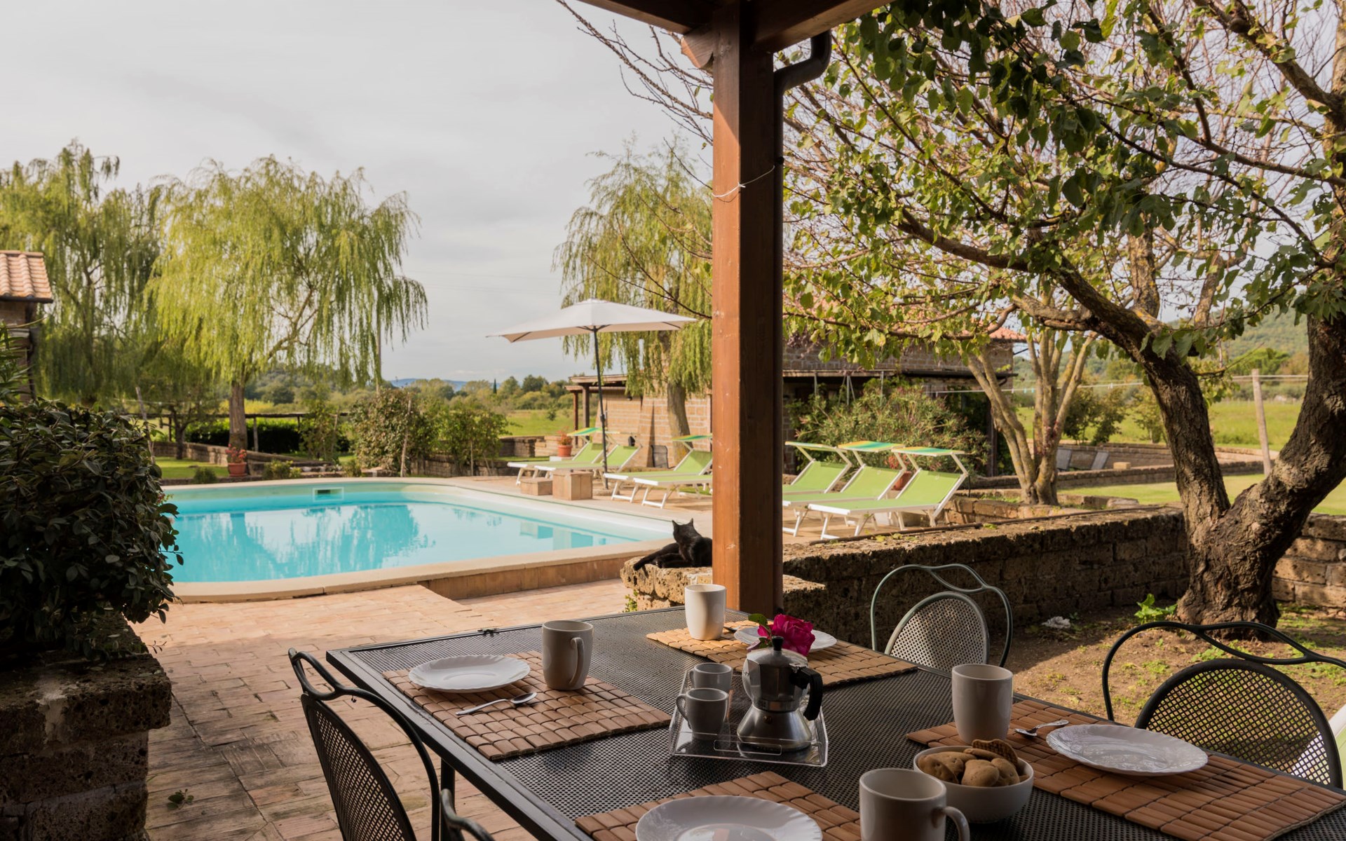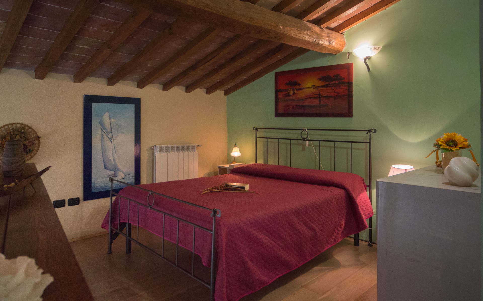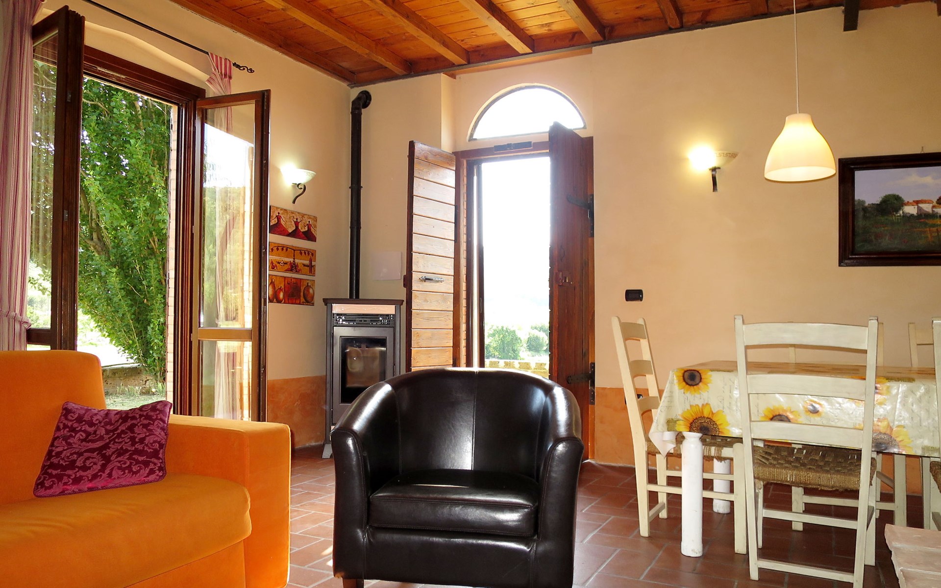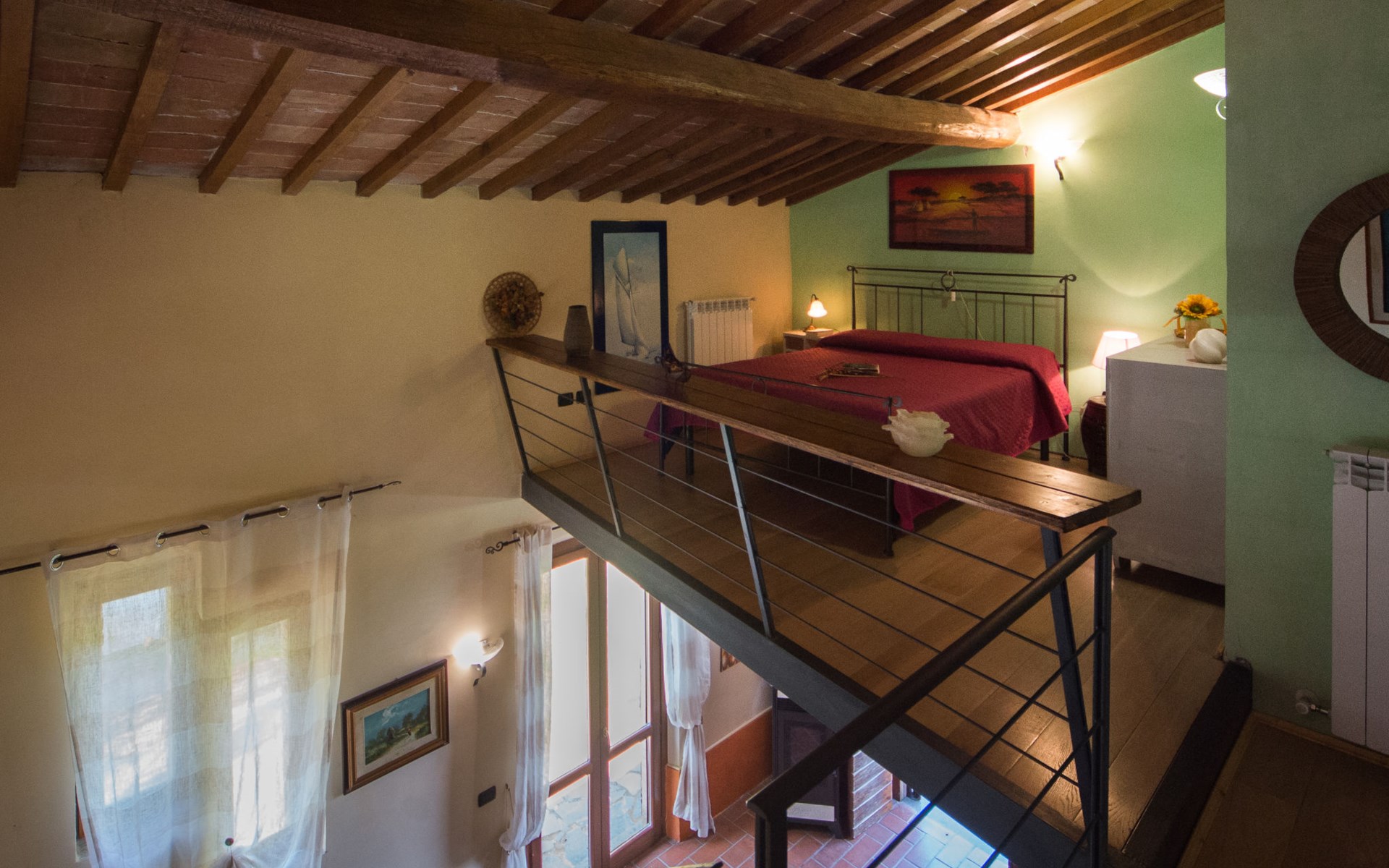 Schöner, gemütlicher Landsitz "Podere La Cavallara", umgeben von Feldern. 6 Wohnungen in der Residenz. 4 km vom Zentrum von Montefiascone, 17 km vom Zentrum von Viterbo, 85 km vom Zentrum von Roma, 1.5 km vom See. Zur Mitbenutzung: Grundstück 2'500 m2, gepflegter Garten mit Rasen und Bäumen, Schwimmbad (12 x 6 m, 140 - 150 cm tief, saisonale Verfügbarkeit: 16.Mai. - 03.Okt.) mit Salzelektrolyse-Reinigungssystem. Aussendusche, Gartenmöbel, Grill, Kinderspielplatz. In der Anlage: Wireless LAN, Sprudelbad (extra). Waschmaschine (zur Mitbenutzung), Fahrräder vorhanden. Zufahrt (200 m Naturweg). Parkplatz (überdacht) auf dem Grundstück. Einkaufsgeschäft 1.5 km, Supermarkt 4 km, Bushaltestelle 2.8 km, Bahnstation "Montefiascone" 7 km, Sandstrand "Lido Di Tarquinia" 50 km, Grasstrand "Lago Di Bolsena" 1.5 km, Thermalbad "Terme Dei Papi" 26 km, Badesee "Lago di Bolsena" 1.5 km. Nahe gelegene Sehenswürdigkeiten: Bolsena 18 km, Civita Di Bagno Regio 18 km, Viterbo 19 km, Grottte Di Castro 25 km, Orvieto 30 km, Pitigliano 40 km. Bitte beachten: Fahrzeug empfohlen.