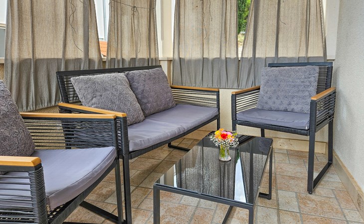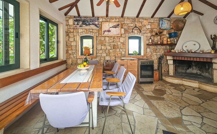 Doppelhaus "Ana". 400 m vom Zentrum von Supetar, 500 m vom Meer, 500 m vom Strand, in einer Sackgasse. Zur Mitbenutzung: Grundstück 450 m2 (eingezäunt). Gartenmöbel, Grill. Im Hause: Internetzugang, Waschmaschine (zur Mitbenutzung). Parkplatz beim Haus auf dem Grundstück. Supermarkt 1 km, Bushaltestelle 4 km, Fähre 2 km, Kieselstrand 500 m.
