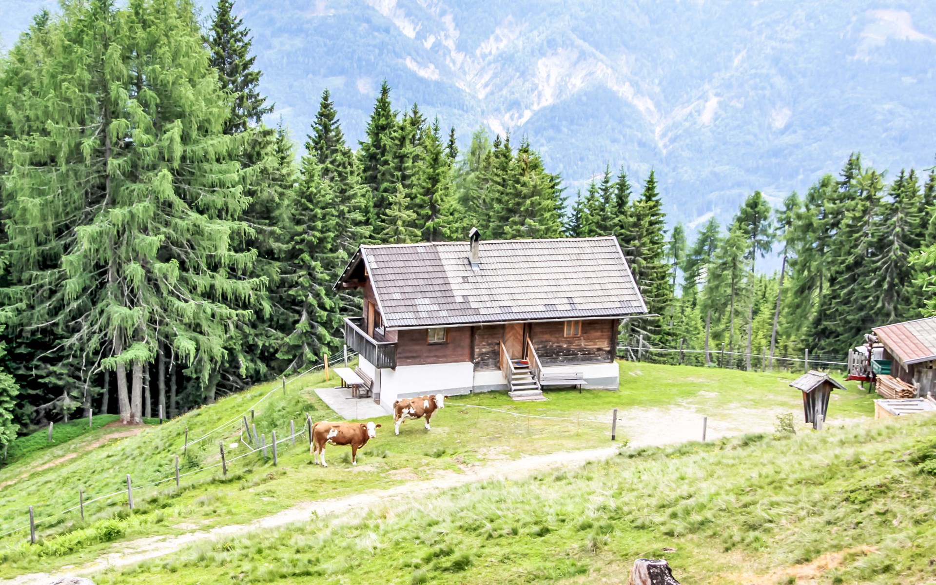 Greifenburg 8 km von Dellach: Einfaches Chalet "Wassertheureralm". Oberhalb von Greifenburg, alleinstehende, ruhige, sonnige Lage, im Grünen. Zur Alleinbenutzung: Grundstück 3'000 m2 (eingezäunt). 3.5 km lange holprige Zufahrt (Bergstrasse). Im Winter bitte Schneeketten mitbringen. Parkplatz beim Haus. Lebensmittelgeschäft 11 km, Restaurant 200 m, Bushaltestelle 11 km, Freibad 11 km, Hallenbad 36 km. Golfplatz (18 Loch) 14 km, Tennis 11 km, Reitstall 14 km, Gondelbahn 20 km, Skischule 18 km, Schlittelbahn 50 m, Langlaufloipe 11 km, Eisfeld 11 km. Bekannte Seen in der Umgebung sind gut erreichbar: Badesee Greifenburg 12 km, Weissensee 23 km. Bitte beachten: Fahrzeug empfohlen. Das Chalet befindet sich auf der Wassertheurer Alm auf ca 1400 m Seehöhe. Im Sommer hat man vom Chalet aus zahlreiche Wandermöglichkeiten. Das Haus wird mit Holzofen beheizt (Holz inkl.).