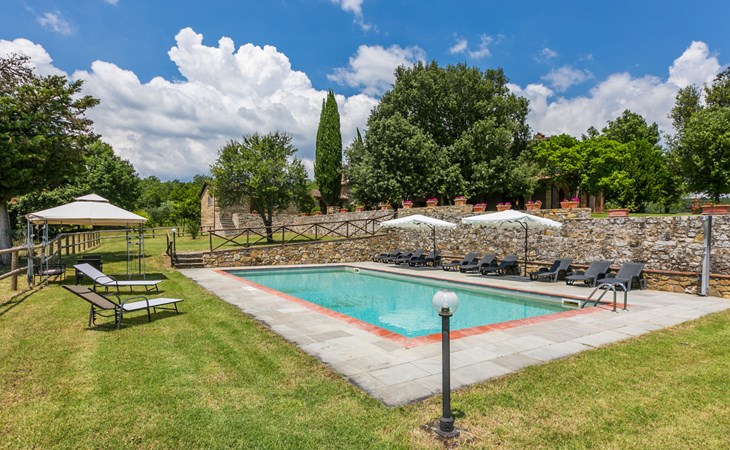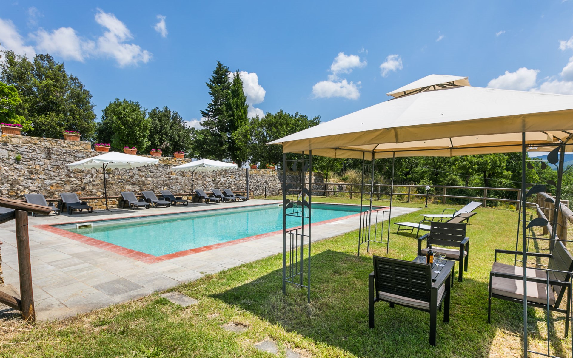 Freistehender auf Weingut Landsitz "Casavecchia". 1 km vom Zentrum von Pieve a Presciano, 17 km vom Zentrum von Montevarchi, 61 km vom Zentrum von Firenze, erhöhte Lage auf einem Hügel, im Grünen. Zur Alleinbenutzung: grosser Garten 1'500 m2 (eingezäunt), Schwimmbad (12 x 6 m, 150 cm tief, saisonale Verfügbarkeit: 01.Jun. - 30.Sep.). Aussendusche, Tischtennis, Gartenmöbel, Grill, Poolpflege durch den Besitzer/Gärtner. Zufahrt bis zum Haus (800 m Naturweg). Parkplatz auf dem Grundstück. Lebensmittelgeschäft 1 km, Supermarkt 10 km, Restaurant 1 km, Bushaltestelle 200 m, Thermalbad "Rapolano Terme" 29 km, See Trasimeno 70 km. Nahe gelegene Sehenswürdigkeiten: Bucine 2.4 km, Monte San Savino 24 km, Castelnuovo Berardenga 26 km, Gaiole in Chianti 33 km, Siena 46 km, Montepulciano 55 km. Ab Hof Verkauf von bäuerlichen Produkten.