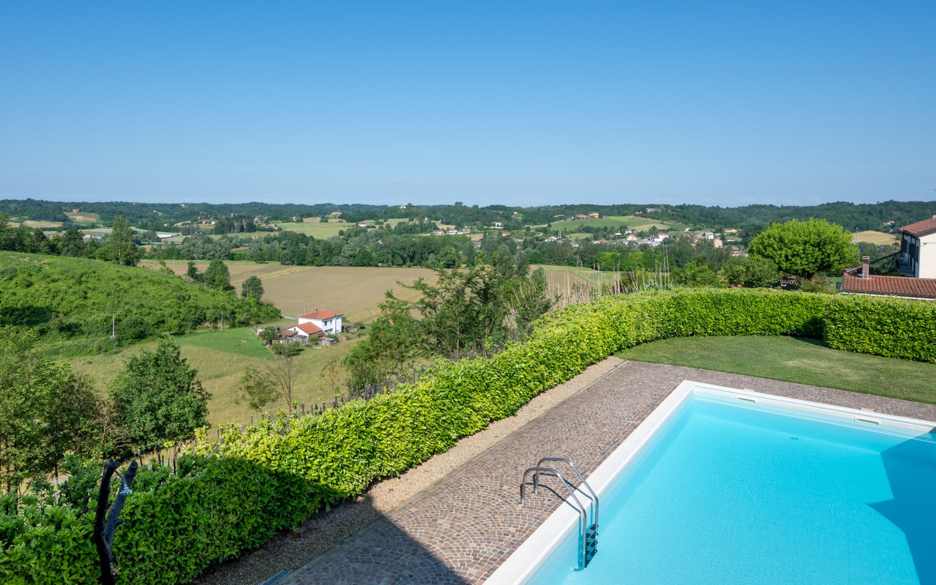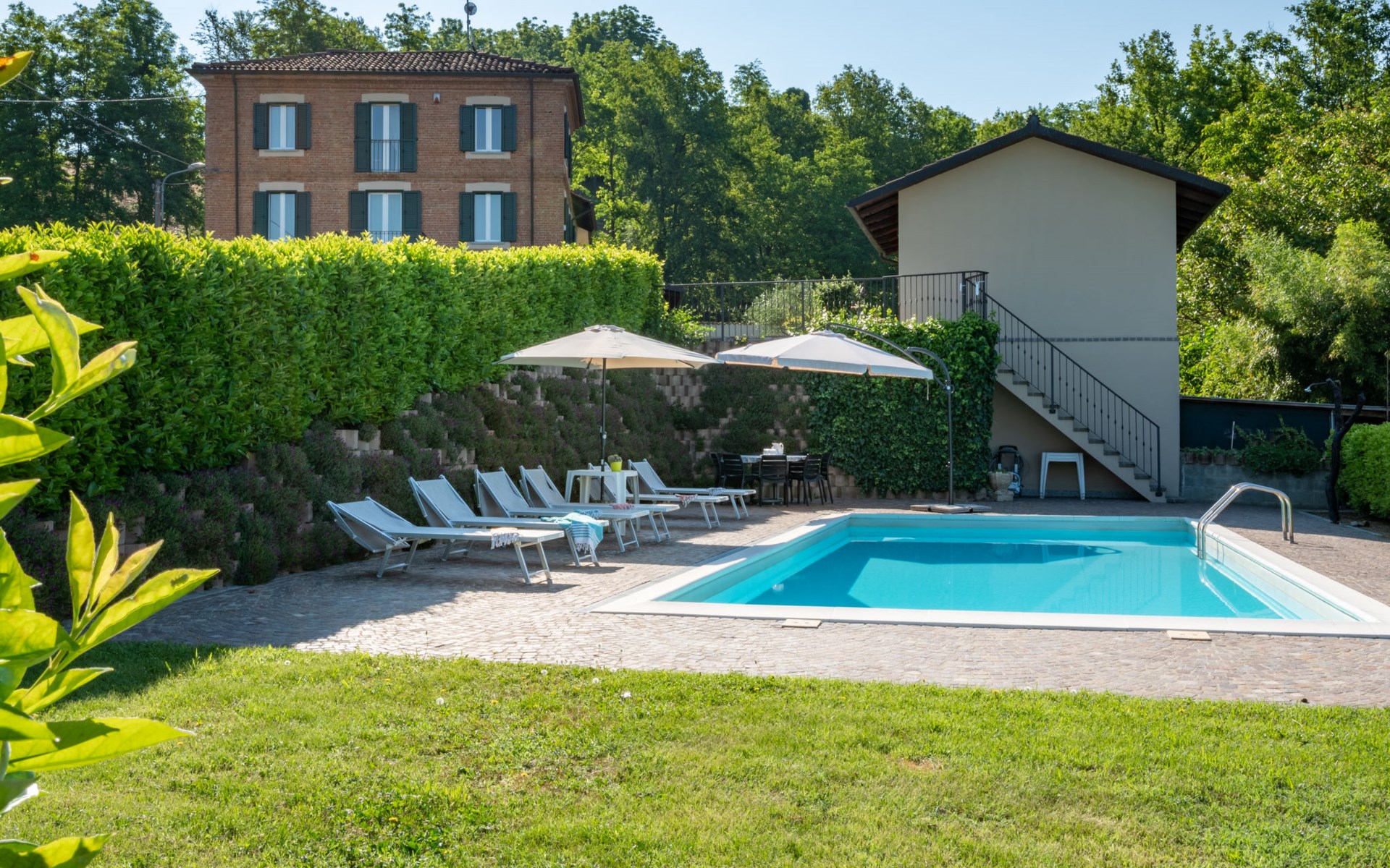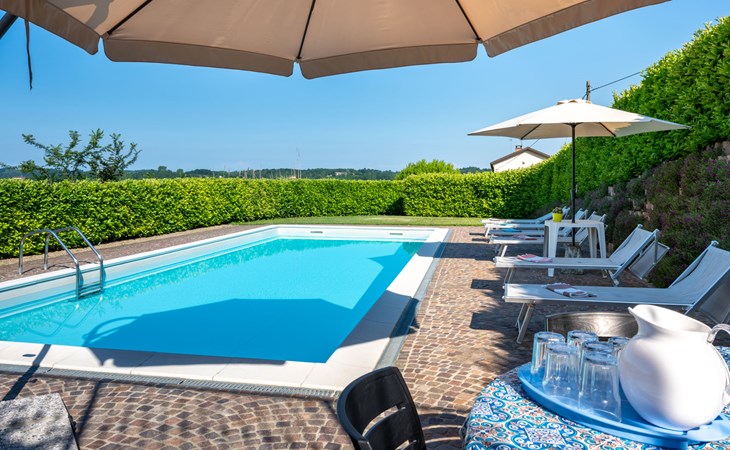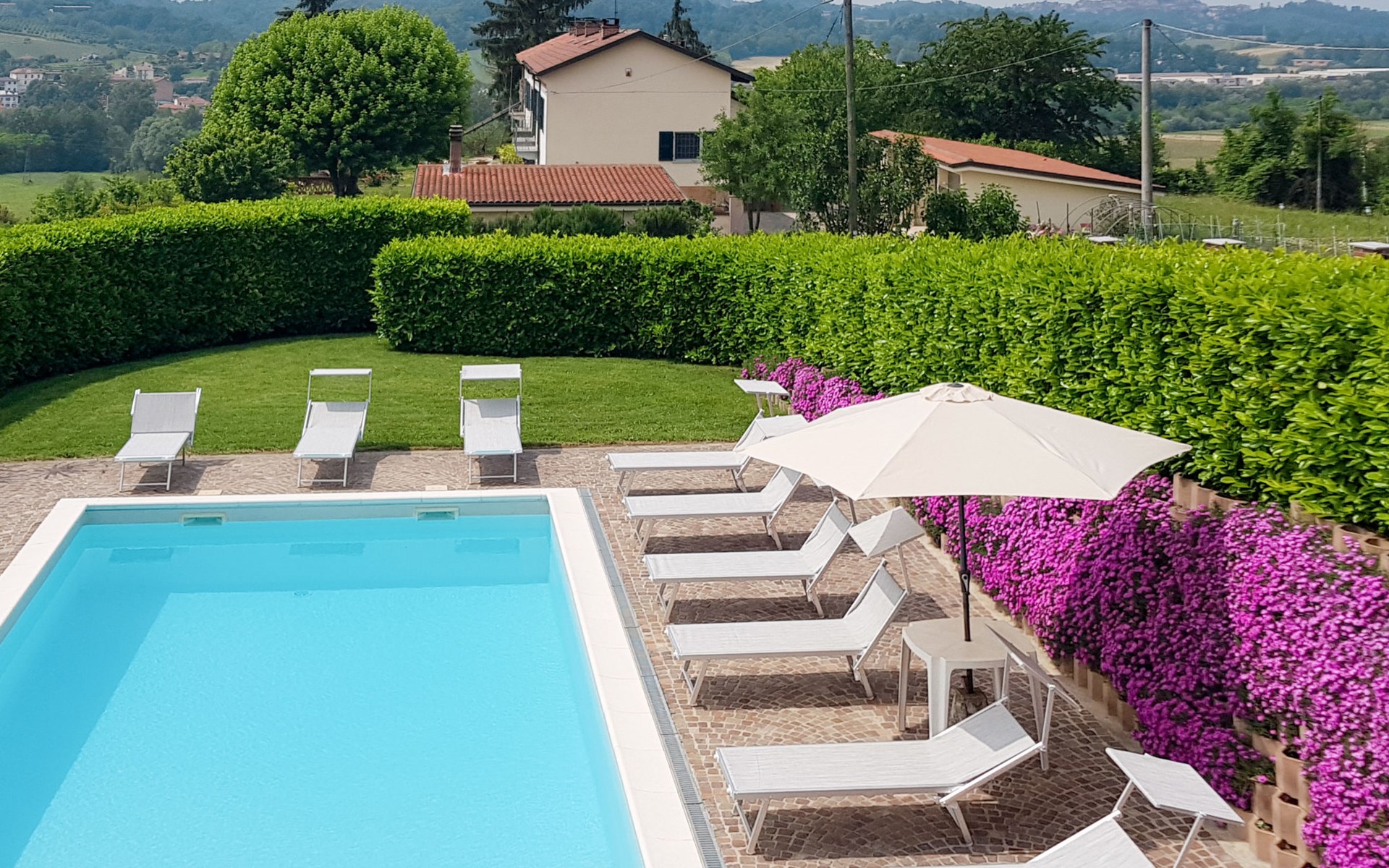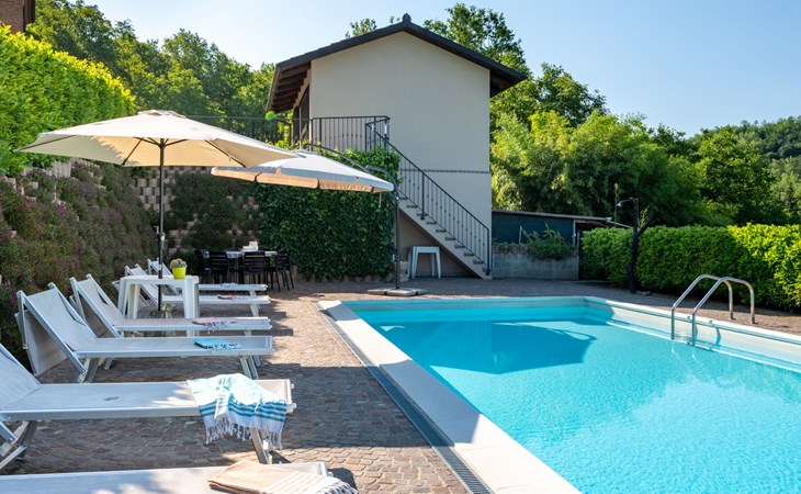 Sehr komfortables Landhaus "Marmorito", einseitig angebaut, umgeben von Wiesen und Feldern. 3 km vom Zentrum von Portacomaro, 9 km vom Zentrum von Asti, 40 km vom Zentrum von Alba, im Villenviertel. Zur Alleinbenutzung: Grundstück 3'000 m2 (eingezäunt), gepflegter Garten mit Rasen und Pflanzen, Schwimmbad (12 x 5 m, 100 - 200 cm tief, saisonale Verfügbarkeit: 05.Apr. - 30.Okt.). Dusche/WC im Poolbereich, Aussendusche, Poolpflege durch den Besitzer/Gärtner. Im Hause: Fitnessraum, Tischfussball. Parkplatz beim Haus auf dem Grundstück. Einkaufsgeschäft 3 km, Supermarkt 6 km, Bushaltestelle 1.7 km, Bahnstation "Asti" 9 km. Golfplatz (18 Loch) 18 km. Bitte beachten: Fahrzeug empfohlen. Ein Teil des Hauses ist geschlossen und nicht bewohnt.