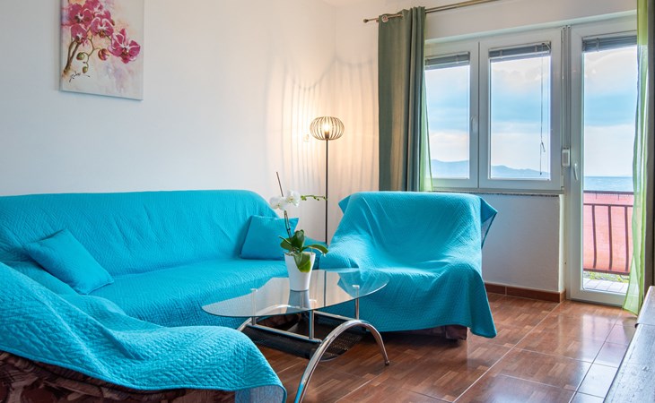 Mehrfamilienhaus. 900 m vom Zentrum von Senj, 100 m vom Meer, 100 m vom Strand. Zur Alleinbenutzung: Terrasse (16 m2), Grill. Im Hause: Internetzugang. Parkplatz beim Haus auf dem Grundstück. Supermarkt 1.1 km, Restaurant 500 m, Café 850 m, Bushaltestelle 1 km, Kieselstrand 100 m. Nahe gelegene Sehenswürdigkeiten: Nehaj Fortress 2.7 km, Northern Velebit National Park 42 km, Senj City Museum 1.2 km. Jugendgruppen nur auf Anfrage.