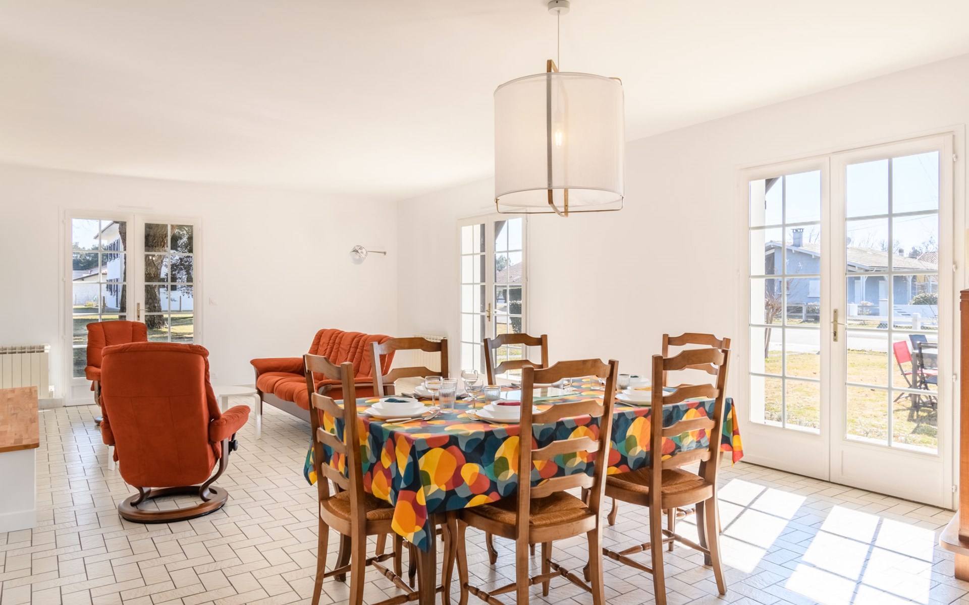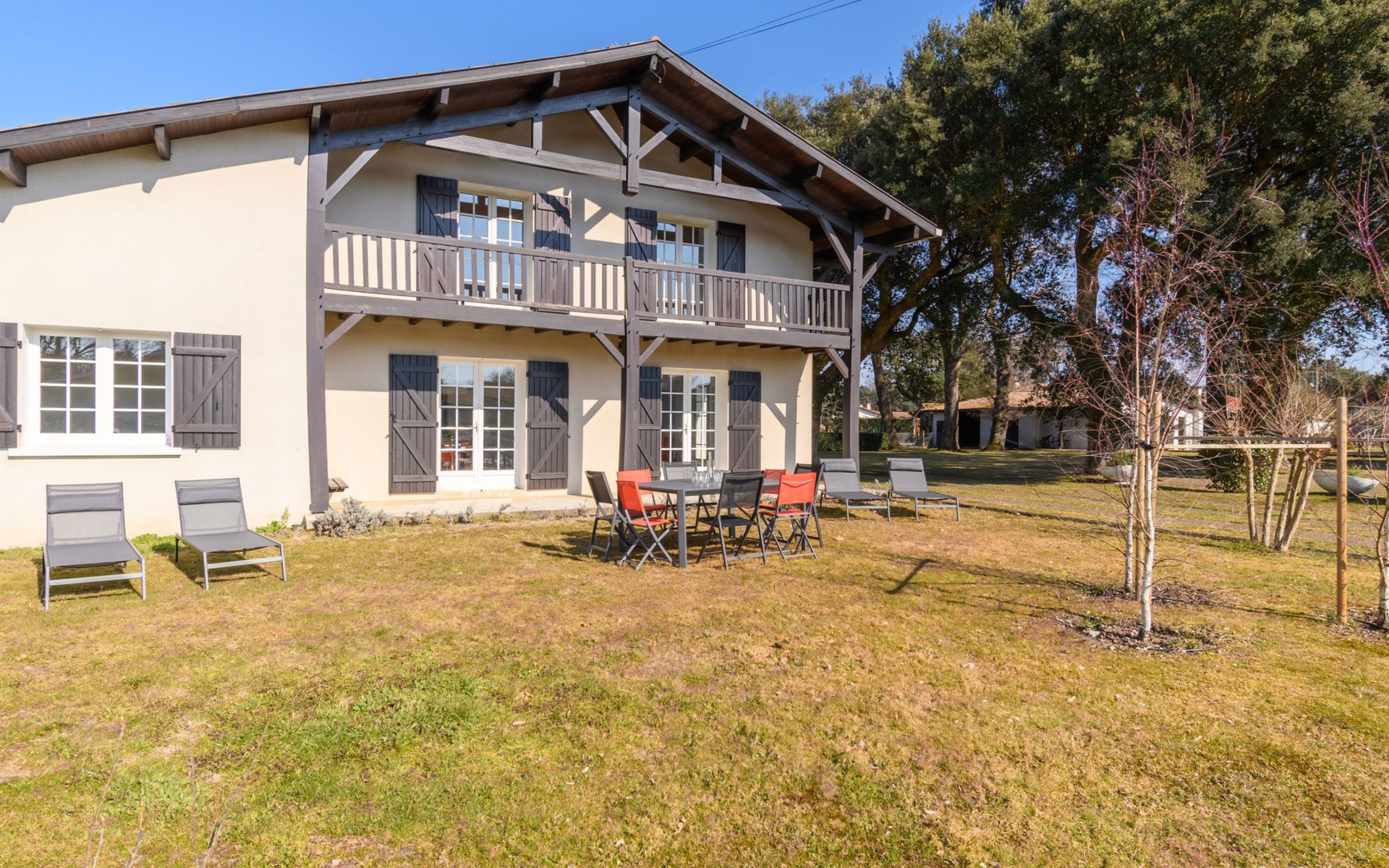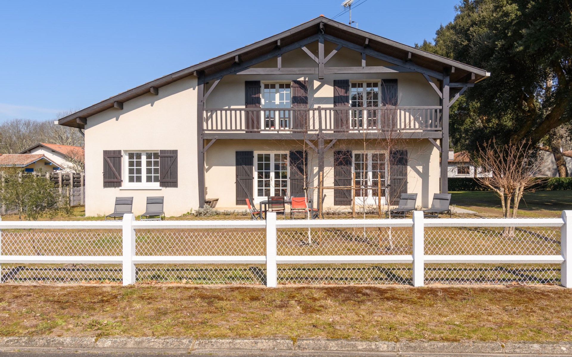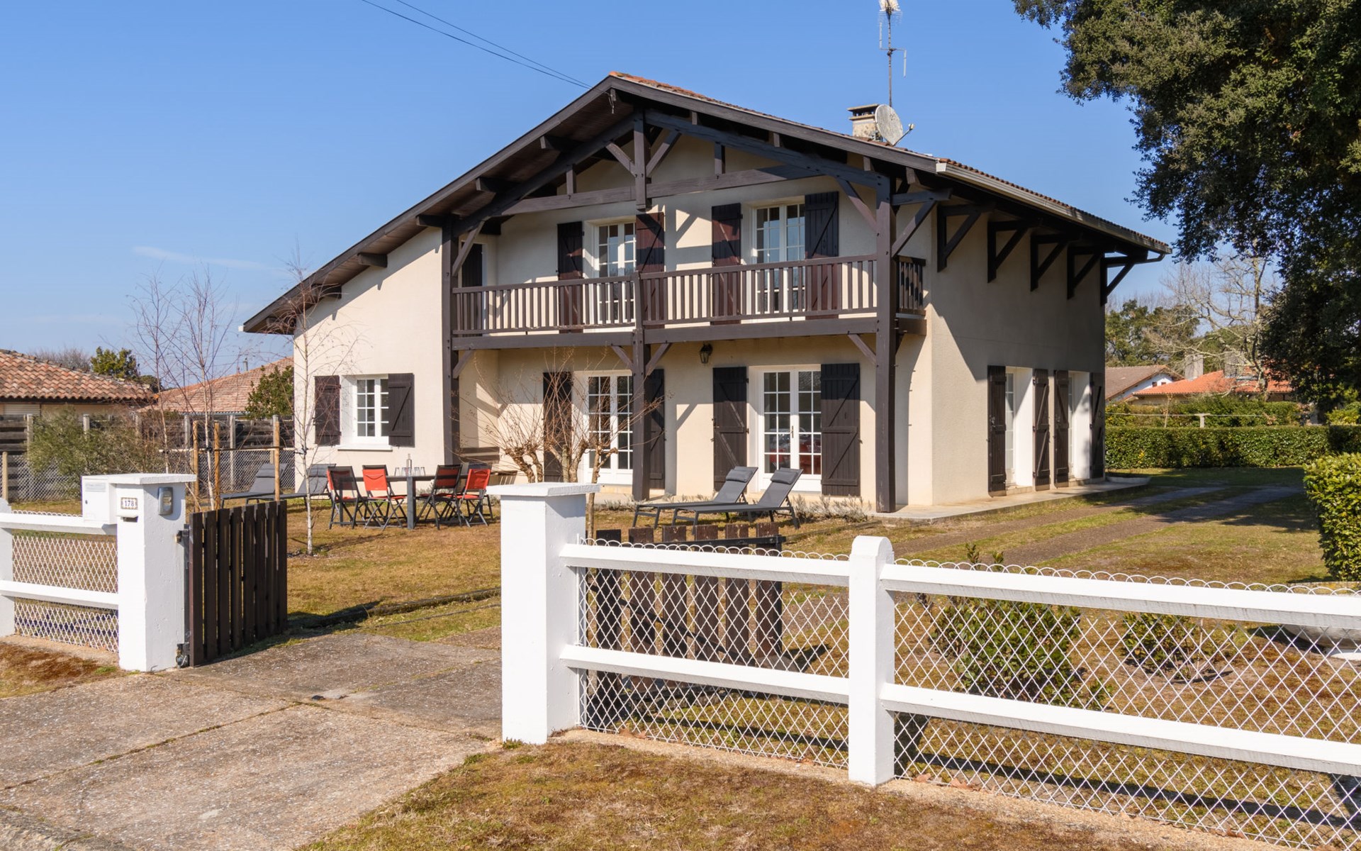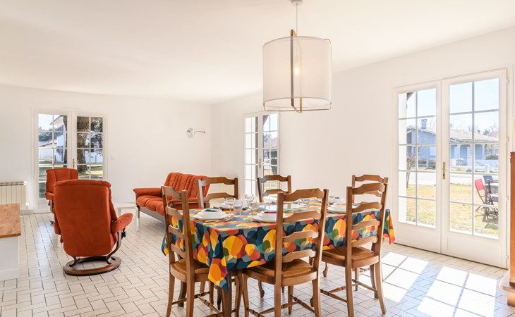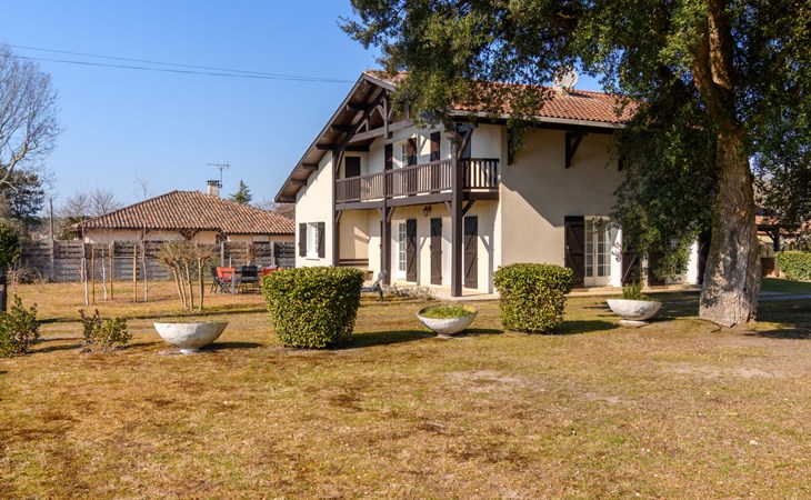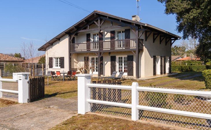 Grosses Haus "Les Chênes", auf 2 Stockwerken, renoviert im Jahre 2022, umgeben von Bäumen. 700 m vom Zentrum von Lit-et-Mixe, 4 km vom Zentrum von Saint-Julien-en-Born, 20 km vom Zentrum von Mimizan / Léon, in einem Wohnquartier, exzellente Lage: Absolut zentral und dennoch ruhig, 9.5 km vom Meer, 9.5 km vom Strand. Zur Alleinbenutzung: naturbelassenes Grundstück 2'500 m2 (eingezäunt) mit Bäumen, Parkplatz (für 3 Autos) beim Haus auf dem Grundstück. Einkaufsgeschäft 700 m, Supermarkt 1.7 km, Restaurant, Sandstrand "Cap de L'Homy / Contis-Plage" 9.5 km. Golfplatz (18 Loch) 30 km. Bekannte Seen in der Umgebung sind gut erreichbar: Lac de Léon 16 km. Bitte beachten: geeignet für Familien. Objekt geeignet für 6 Erwachsene + 4 Kinder. Ein Teil des Hauses ist geschlossen und nicht bewohnt.
