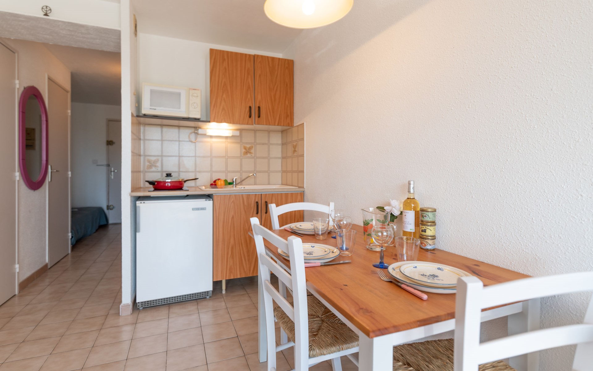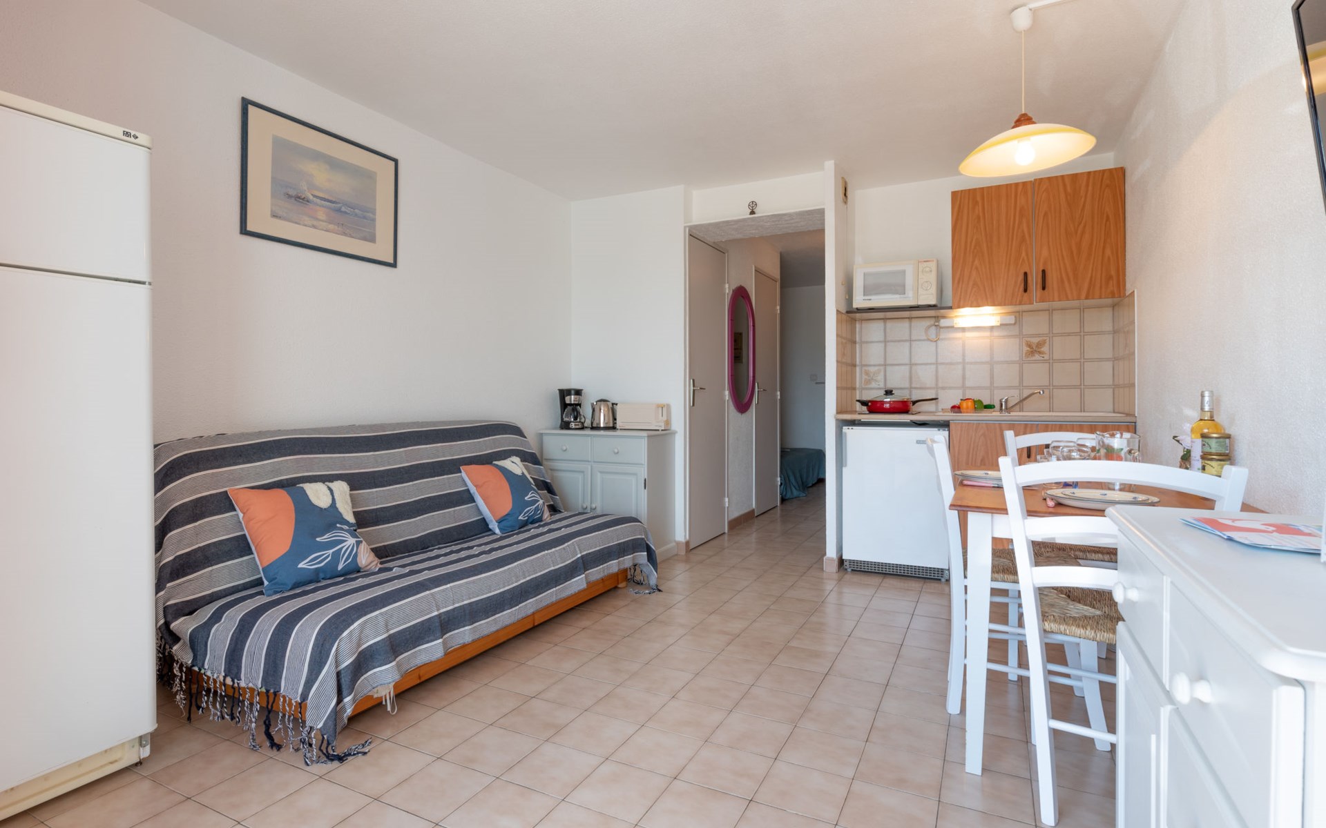 Residenz "Le Lagon Bleu", auf 4 Stockwerken. Im Ortsteil le Palais de la Mer, 2 km vom Zentrum von le Grau du Roi, 850 m vom Meer. Zur Mitbenutzung: Schwimmbad rund (saisonale Verfügbarkeit: 15.Jun. - 15.Sep.). In der Anlage: Fahrstuhl. Einkaufsgeschäft 300 m, Restaurant, Sandstrand "Nord" 800 m, Freibad 2.1 km, Thermalbad "Thalazur" 4.5 km. Nahe gelegene Sehenswürdigkeiten: Casino Flamand 800 m, Seaquarium 1.4 km, Arènes Grau du Roi 3.2 km, Aigues Mortes 8.5 km, La Grande Motte 12 km, Nîmes 52 km. Wandergebiete: Reserve Naturelle De Camargue. Bitte beachten: Die Schlüsselübergabe findet bei der Agentur Interhome in Port Camargue statt, 2 km. Hauptstrasse in der Nähe. Flugplatz 25 km vom Haus.