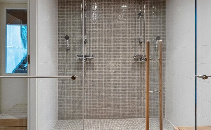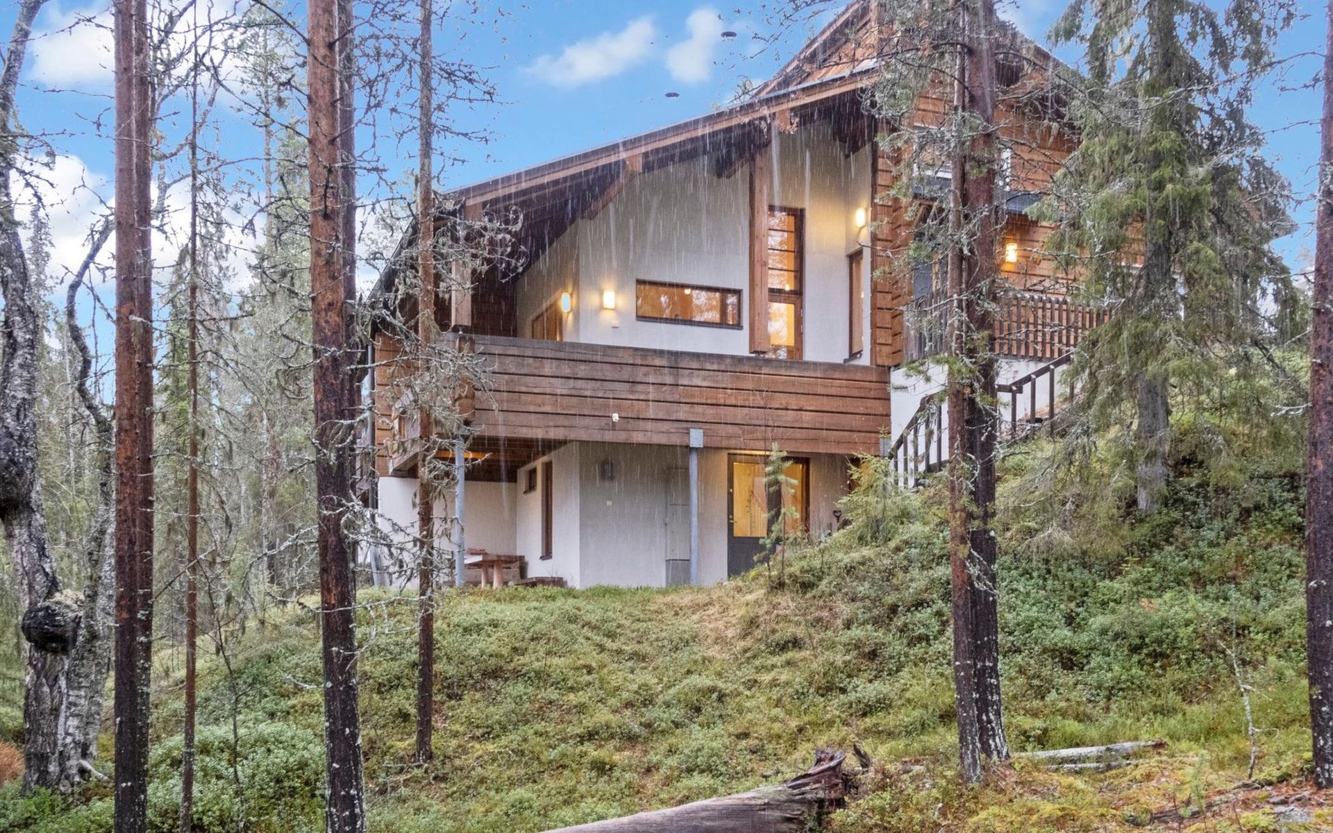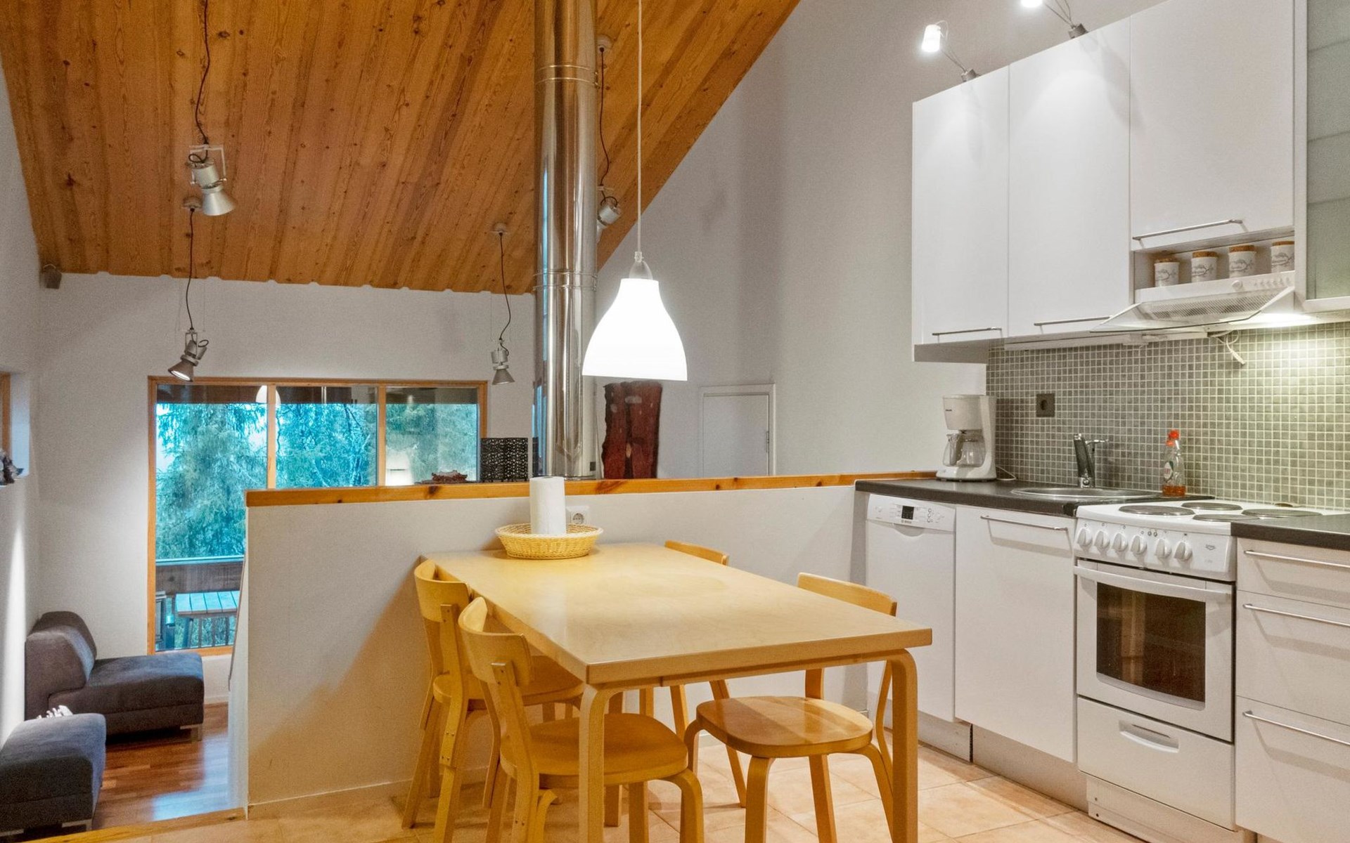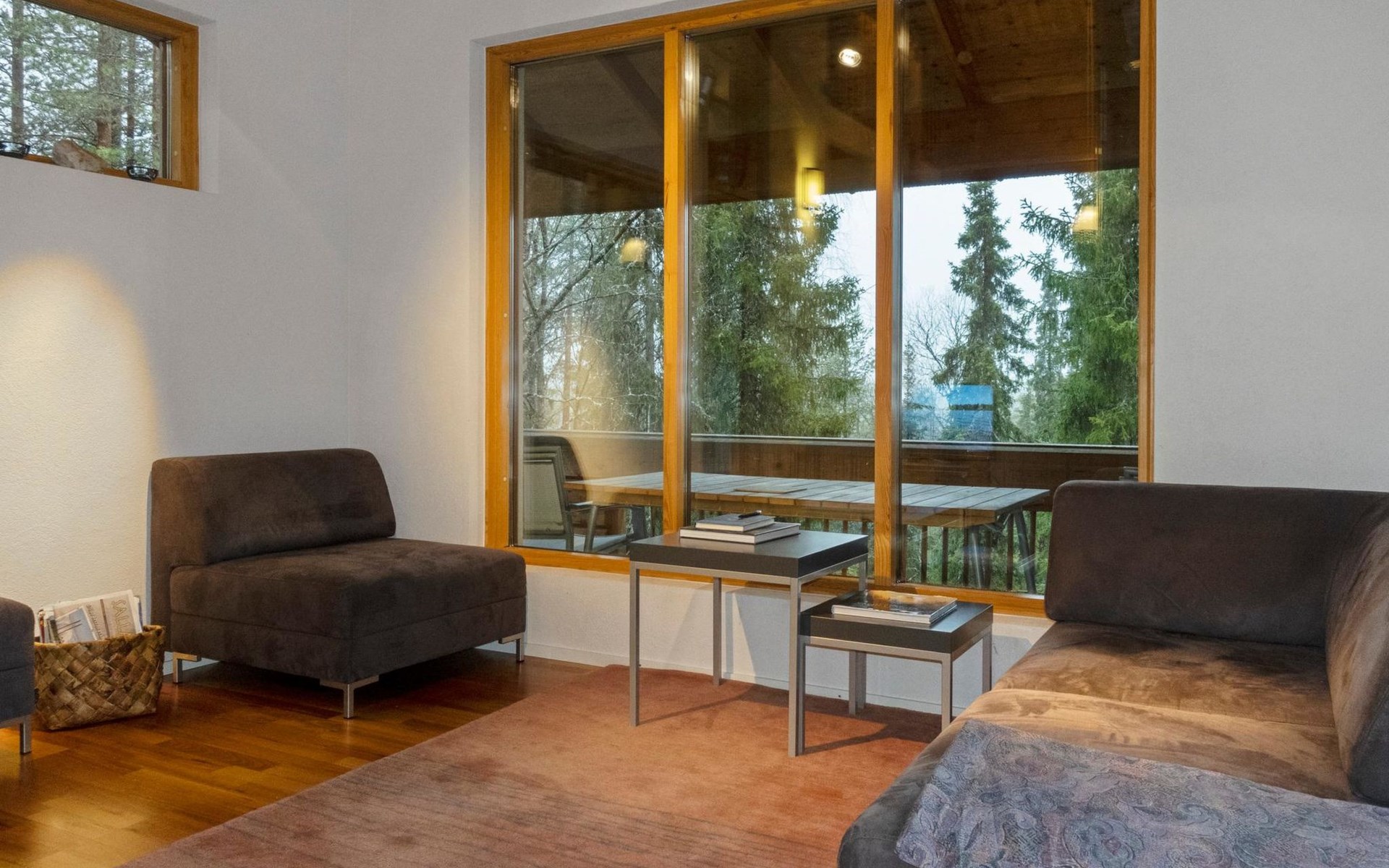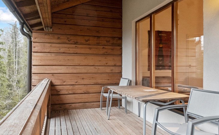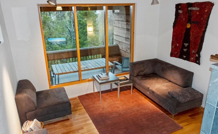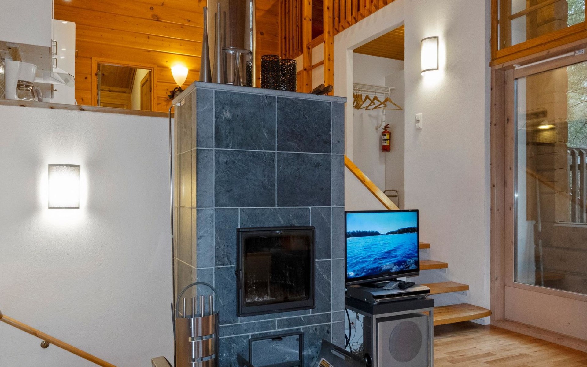 On the ground floor, bedroom with double bed, sauna, washroom, utility room and wardrobe. The apartment has two separate WCs, one on both floors.
