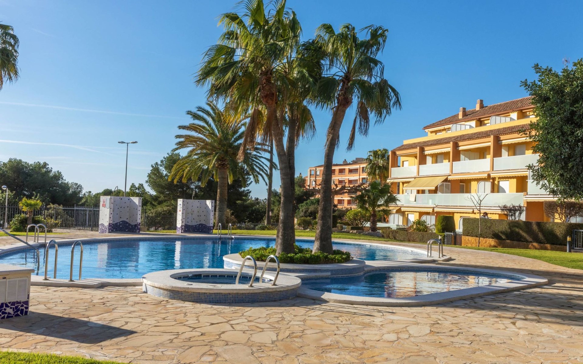 Las Fuentes: Gemütliches Appartementhaus "Sierra de Irta". 60 Wohnungen in der Residenz. Im Ort, 2 km vom Zentrum von Alcossebre, ruhige Lage in einem Wohnquartier, 300 m vom Meer, 500 m vom Strand. Zur Mitbenutzung: wunderschöner Garten zum Entspannen, Schwimmbad nierenförmig (180 m2, 80 - 200 cm tief, saisonale Verfügbarkeit: 01.Jun. - 30.Sep. Öffnungszeiten Schwimmbad: 09:00-22:00). Kinderbecken, Aussendusche. Im Hause: Fahrstuhl. Parkplatz (überdacht). Supermarkt 800 m, Restaurant 300 m, Bar 200 m, Café 850 m, Bushaltestelle "Plaza Tanduay" 250 m, Bahnstation "Alcalá de Xivert" 11 km, Sandstrand "Las Fuentes" 500 m, Tauchzentrum 1 km. Sporthafen 1 km, Kinderspielplatz 300 m. Nahe gelegene Sehenswürdigkeiten: Peñiscola 32 km, Ciudad de Artes y Ciencias Valencia 120 km, Morella 92 km, Delta del Ebro 70 km, Alcalá de Xivert-Castillo y campanario 11 km, Coves de Sant Josep 80 km. Wandergebiete: Parque Natural Sierra de Irta 1 km. Bitte beachten: Fahrzeug empfohlen. Der Besitzer akzeptiert keine Jugendgruppen. Die Nachbarschaft ist sehr lärmempfindlich. Ruhe und gutes Benehmen wird erwartet.