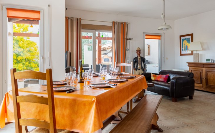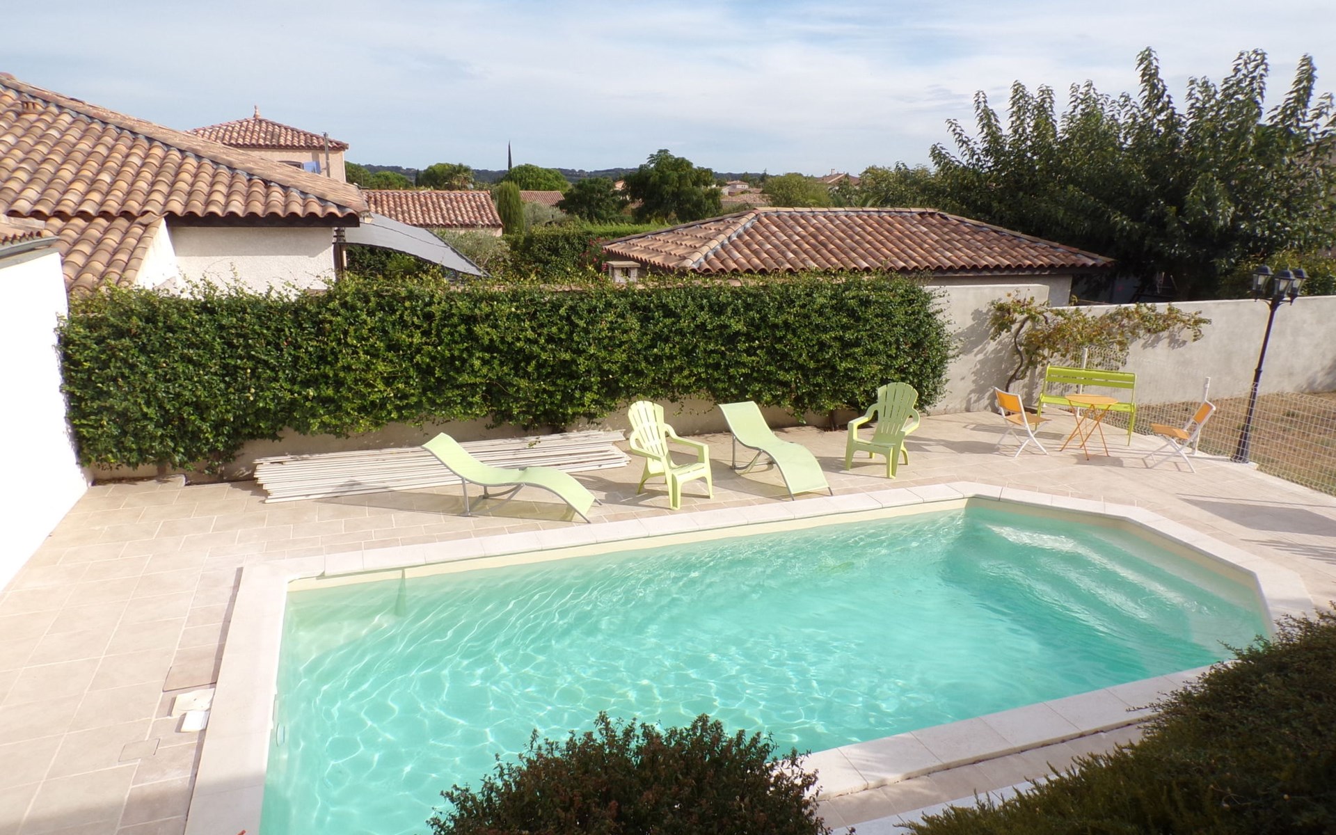Schöne Villa "Akwaba". Im Ort d'Alignan du Vent, 25 km vom Meer, 25 km vom Strand. Zur Alleinbenutzung: Garten 600 m2 (eingezäunt) mit Pflanzen und Bäumen, Schwimmbad eckig, eingezäunt (4 x 8 m, 150 cm tief, saisonale Verfügbarkeit: 01.Mai. - 30.Sep.) mit Innentreppe und Rollladenabdeckung. Boccia, Parkplatz beim Haus. Bäckerei 300 m, Café 400 m, Bushaltestelle "ligne 12 Béziers / 669 Pézenas" 200 m, Bahnstation "Béziers" 22 km, Sandstrand "Valras" 25 km, See Salagou Parc du haut Languedoc 35 km. Reitstall 2 km. Nahe gelegene Sehenswürdigkeiten: Béziers 22 km, Pézenas 7 km, Agde 22 km, Carcassonne 108 km, Région de vignes et de Patrimoine. Wandergebiete: Les Balcons volcaniques 15 km, Sentier des Béals 17 km, Cirque de Mourèze 17 km.