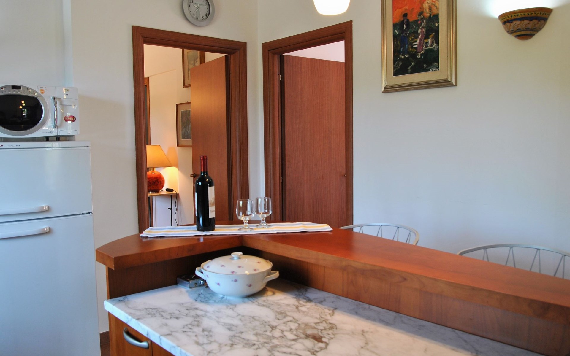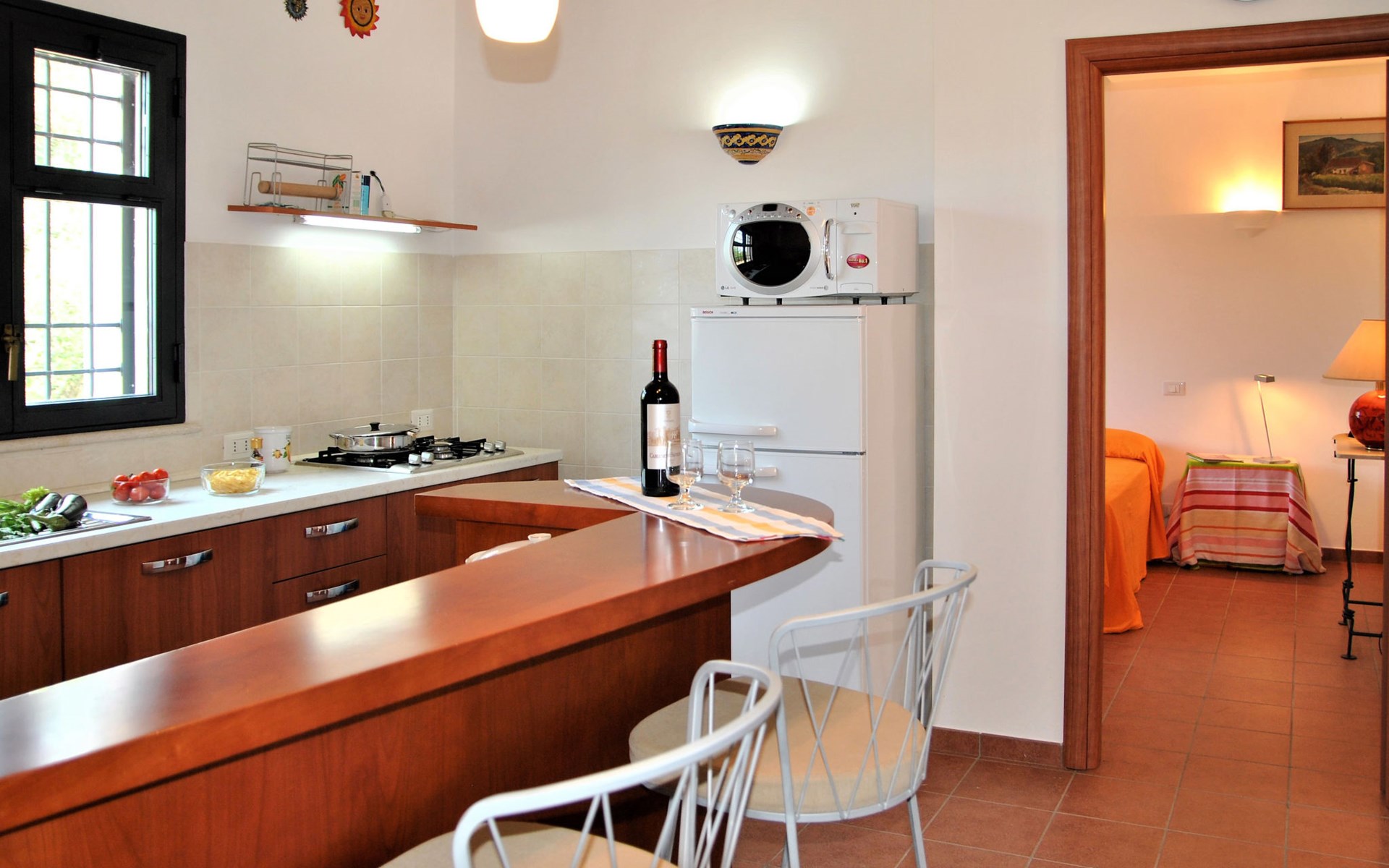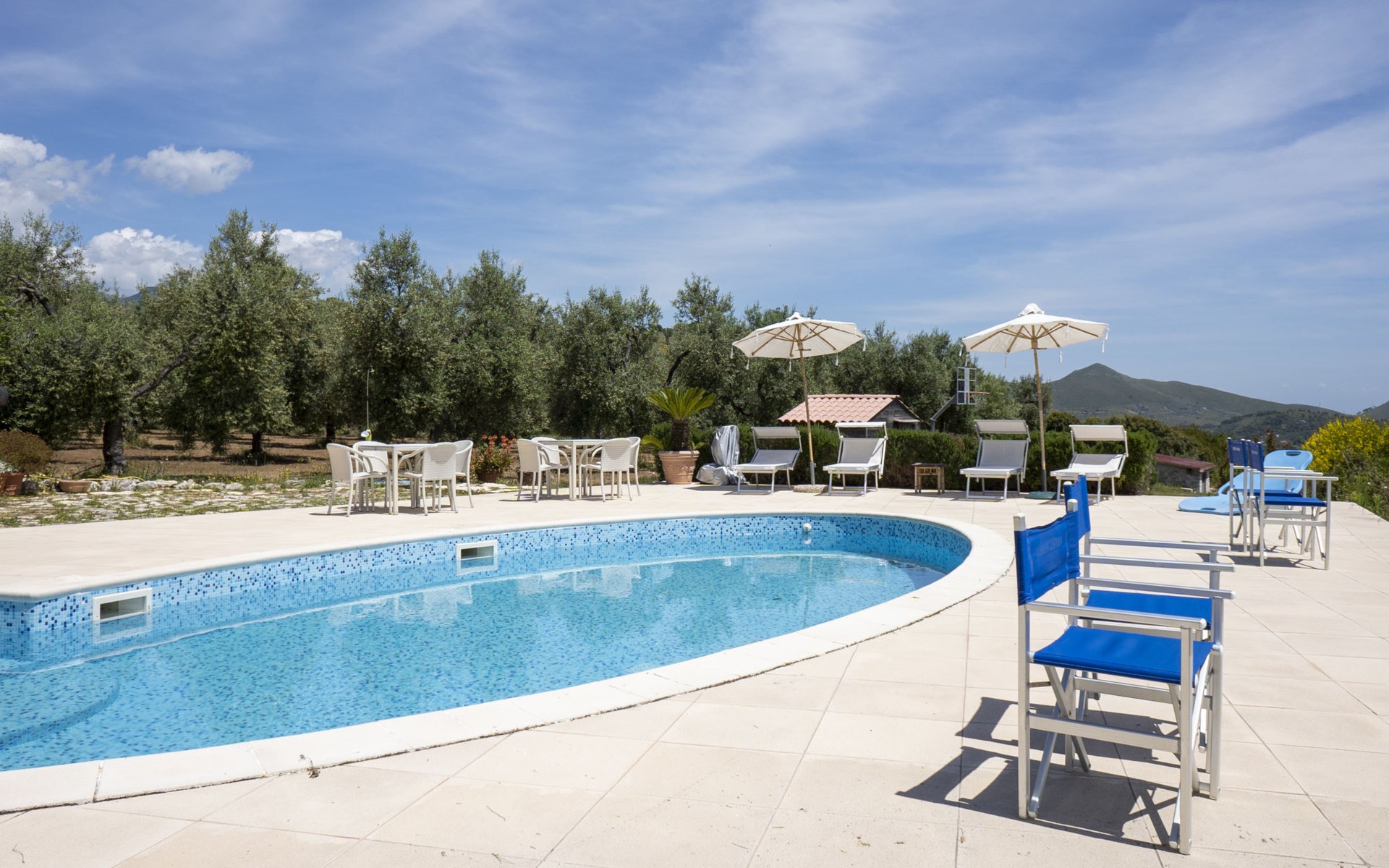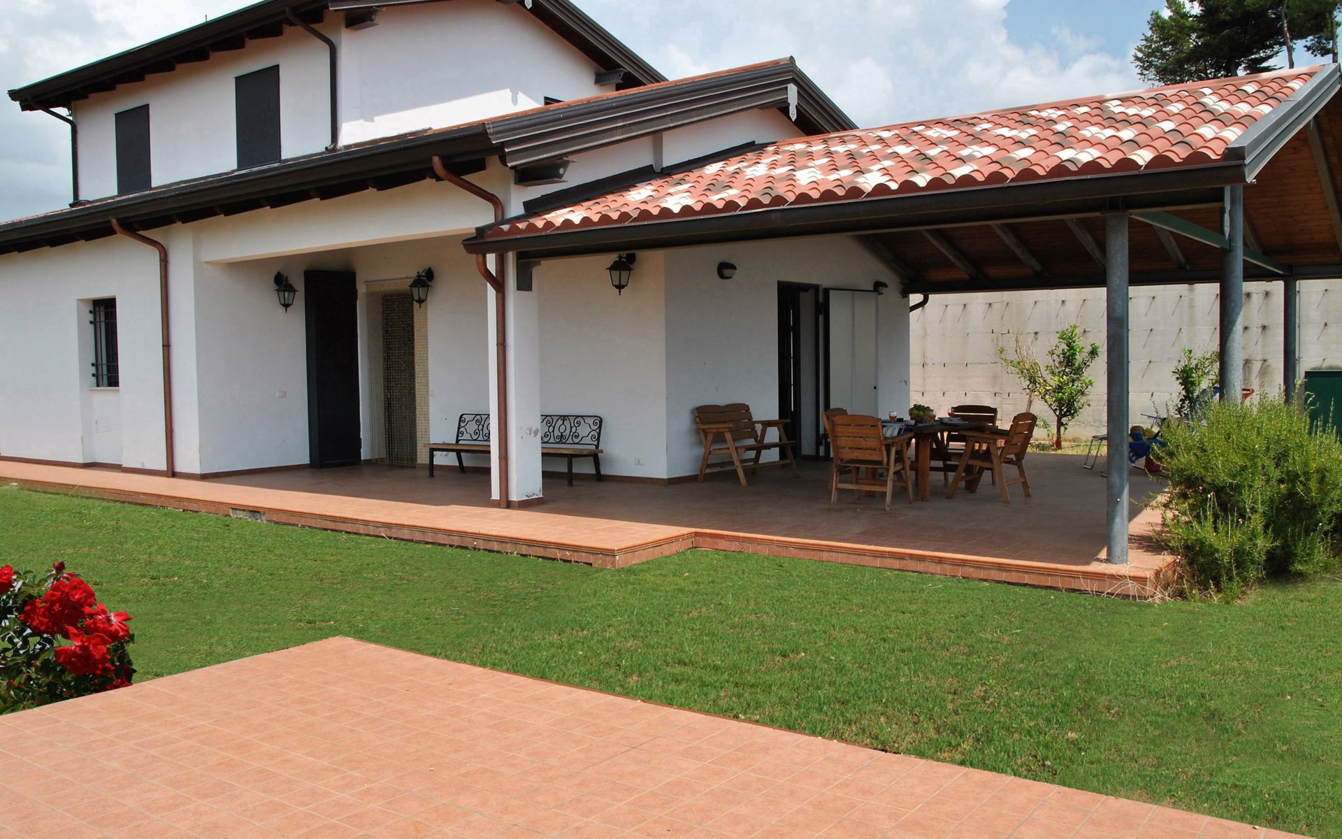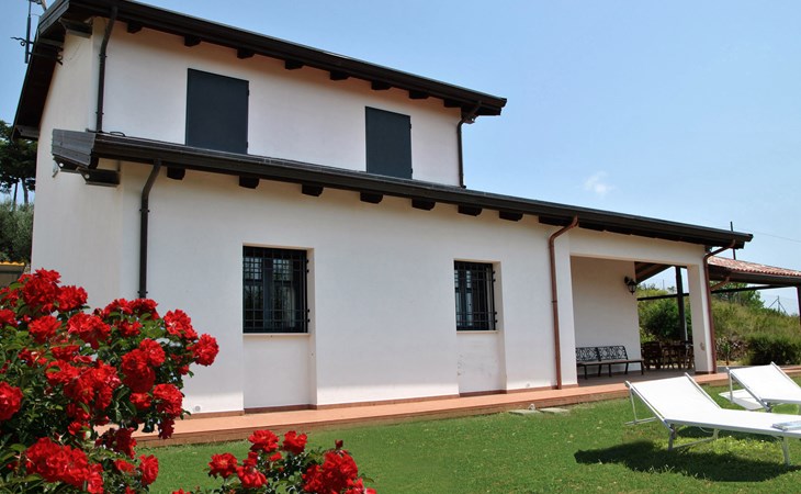 Freistehendes Zweifamilienhaus "Quattro Rose". 2 Wohnungen im Ferienhaus. Im Ortsteil Intignano, 9 km vom Zentrum von Sperlonga, am Hang, 9 km vom Meer, 9 km vom Strand. Zur Mitbenutzung: Park 2'000 m2, Schwimmbad nierenförmig (10 x 5 m, 150 cm tief, saisonale Verfügbarkeit: 01.Jun. - 30.Sep.). Aussendusche. Zur Alleinbenutzung: Garten 300 m2. 100 m lange holprige Zufahrt (1 km Bergstrasse). Parkplatz auf dem Grundstück. Einkaufsgeschäft 8 km, Lebensmittelgeschäft 8 km, Supermarkt 8 km, Einkaufszentrum 3 km, Bushaltestelle 8 km, Bahnstation "Formia (Roma- Napoli)" 17 km, Fähre "Isole Pontine" 17 km, Freibad 300 m. Nahe gelegene Sehenswürdigkeiten: Itri 8 km, Villa tiberio 8 km, Gaeta 22 km, Terracina 24 km, San Felice Circeo 29 km. Bitte beachten: Fahrzeug empfohlen. Das Schwimmbad befindet sich 300 m vom Haus entfernt auf einem anderen Grundstück.