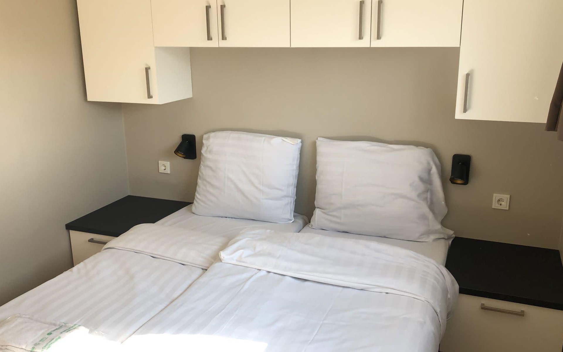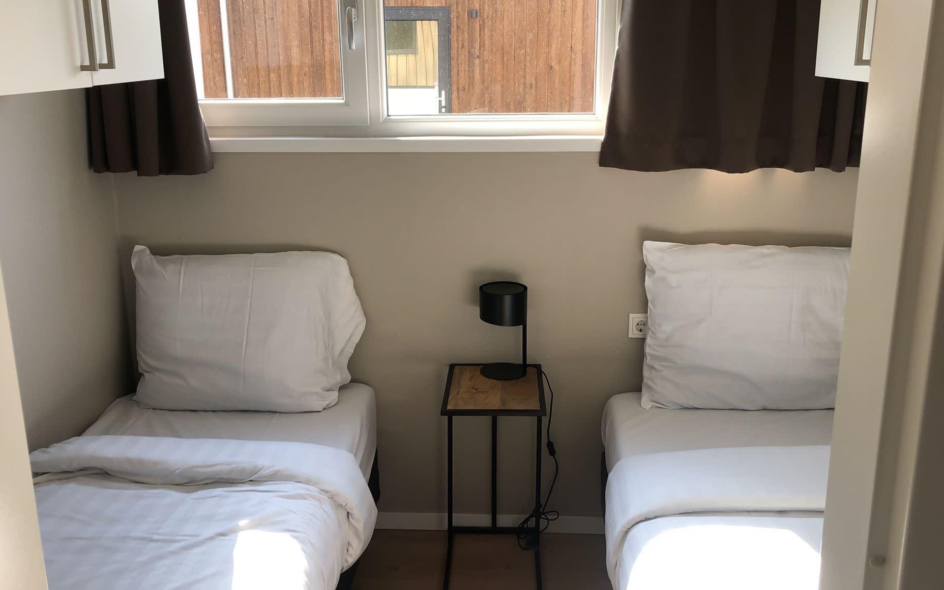 Der Pavillon 4+2 ist ein kleines, gemütliches Chalet mit modernem Charakter. Dieses freistehende und ebenerdige Chalet ist für maximal 6 Personen geeignet. Im Wohnzimmer befindet sich ein gemütliches Sofa mit Fernseher, eine geräumige Essecke und eine Küche mit Induktionsherd, Geschirrspüler und Nespresso Maschine. Insgesamt hat das Chalet 3 Schlafzimmer, 1 mit einem Doppelbett, alle mit 2 Einzelbetten. Außerdem gibt es ein modernes Badezimmer mit Duschkabine, Toilette und Waschbecken. Im Garten lädt eine Terrasse mit Gartenmöbeln zum Entspannen ein. Direkt beim Ferienhaus kann 1 Auto geparkt werden und das WLAN steht kostenlos zur Verfügung.
