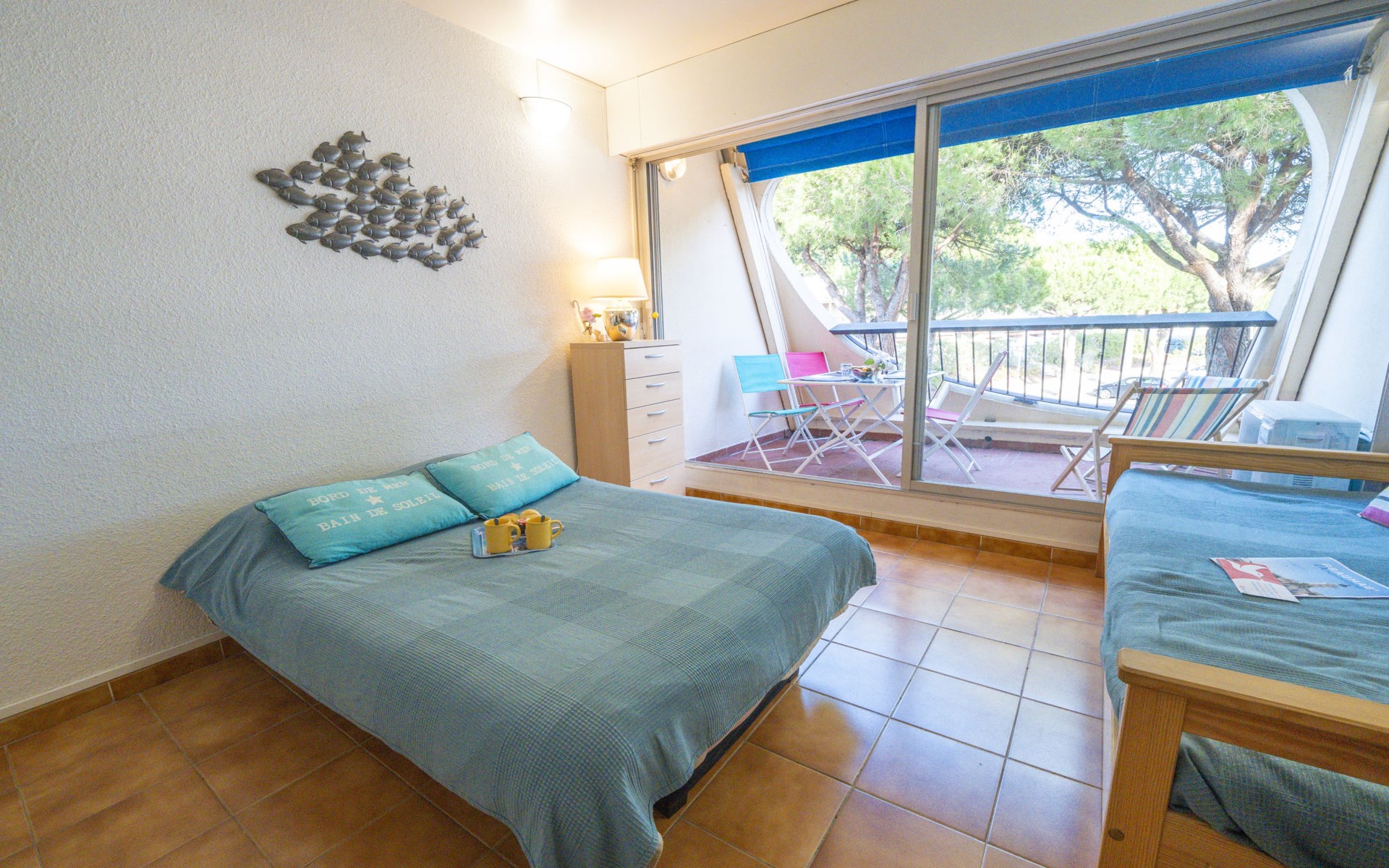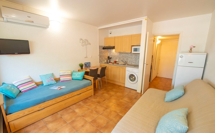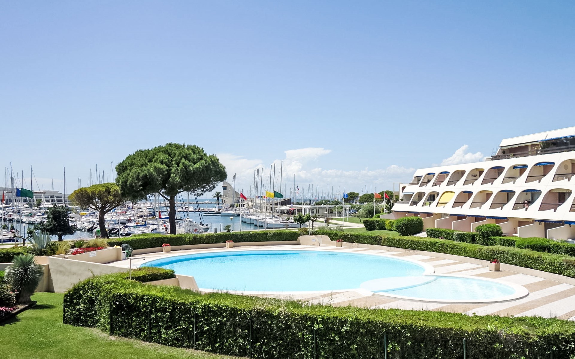 Residenz "Escale Port", auf 3 Stockwerken. Im Ortsteil la Plage Nord, 150 m vom Meer, 150 m vom Strand. Zur Mitbenutzung: Schwimmbad (100 - 250 cm tief, saisonale Verfügbarkeit: 15.Jun. - 15.Sep.). Kinderbecken, Parkplatz (beschränkte Anzahl). Einkaufsgeschäft, Lebensmittelgeschäft, Supermarkt 350 m, Einkaufszentrum 150 m, Restaurant, Sandstrand "Plage Nord" 150 m, Thermalbad "Thalazur les Bains de Camargue" 4 km. Sporthafen 50 m, Jacht-Hafen 50 m, Tennis 1 km, Minigolf 400 m, Reitstall 1 km. Nahe gelegene Sehenswürdigkeiten: Seaquarium 7 km, Casino Flamingo 8 km, Aigues-Mortes 10 km, La Grande-Motte 13 km, Montpellier 32 km, Nîmes 52 km. Wandergebiete: Réserve Naturelle de Camargue.