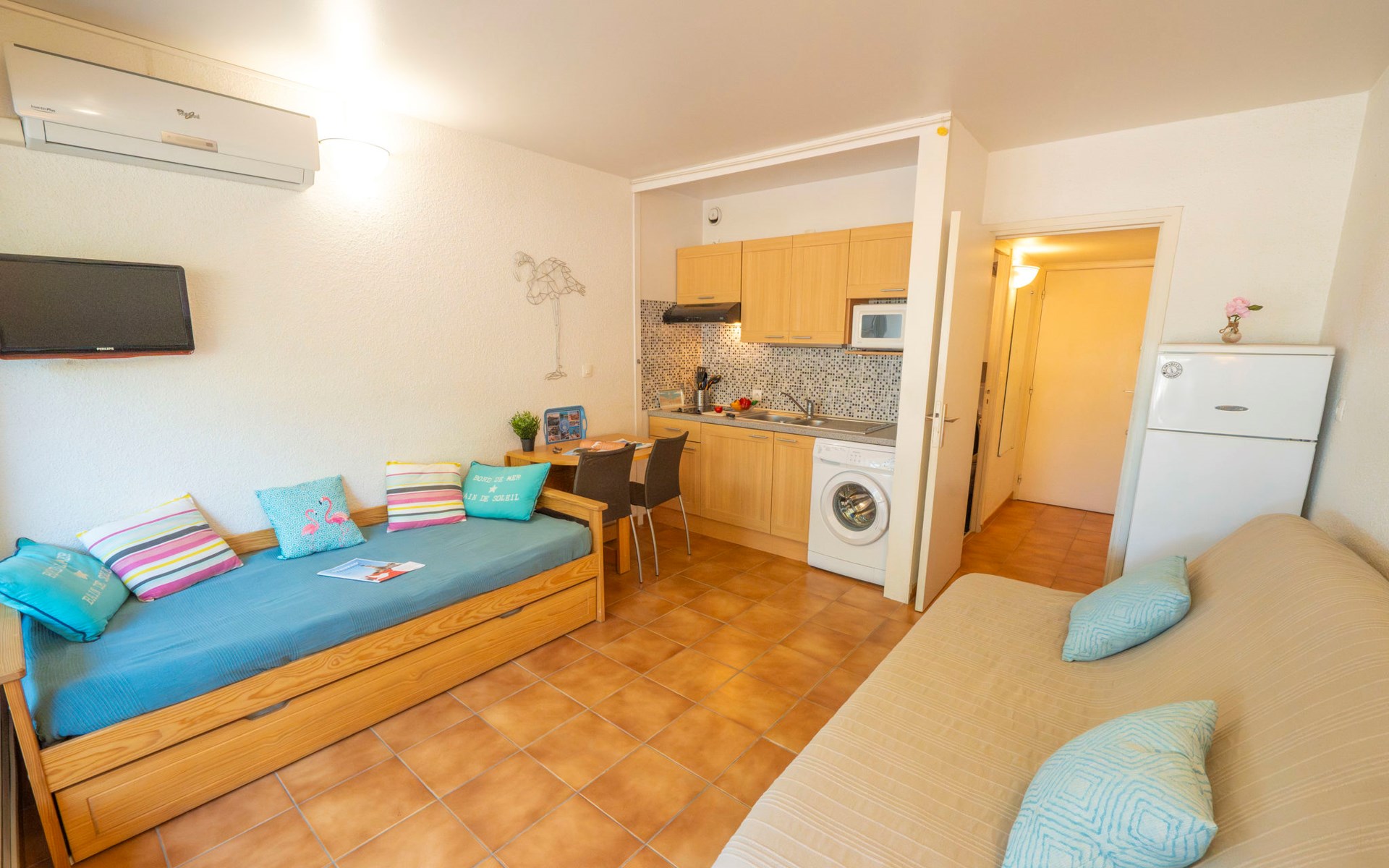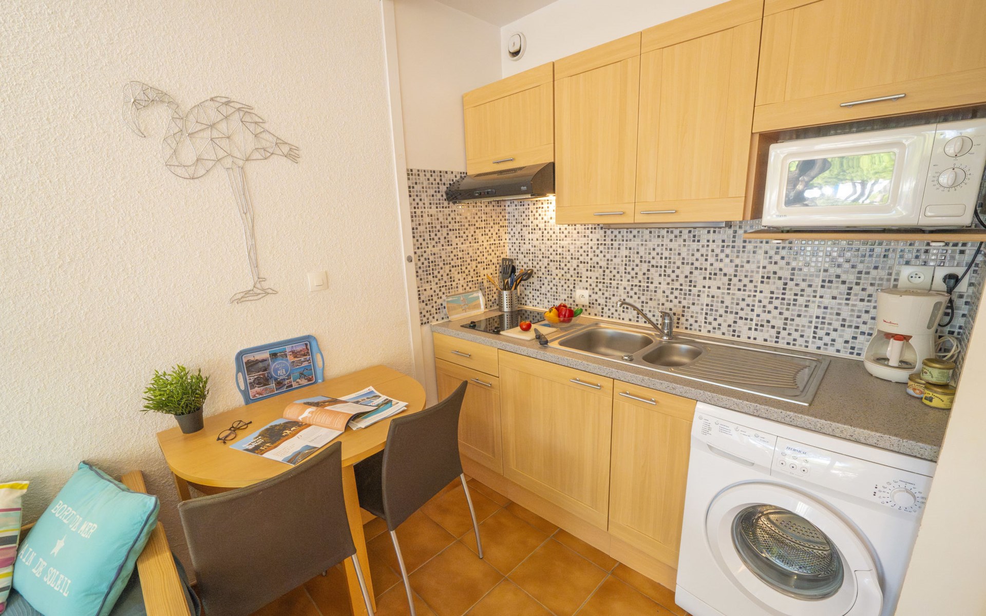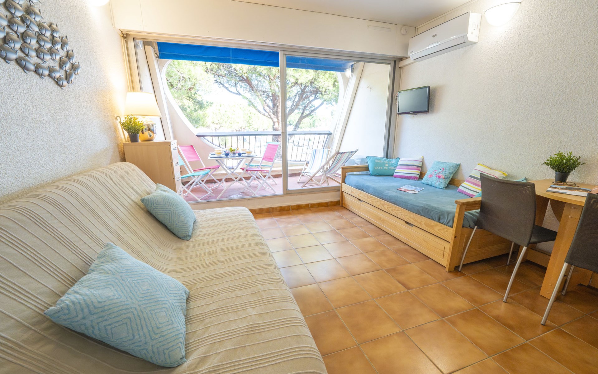 Residenz "Escale Port", auf 3 Stockwerken. Im Ortsteil la Plage Nord, 150 m vom Meer, 150 m vom Strand. Zur Mitbenutzung: Schwimmbad (100 - 250 cm tief, saisonale Verfügbarkeit: 15.Jun. - 15.Sep.). Kinderbecken, Parkplatz (beschränkte Anzahl). Einkaufsgeschäft, Lebensmittelgeschäft, Supermarkt 350 m, Einkaufszentrum 150 m, Restaurant, Sandstrand "Plage Nord" 150 m, Thermalbad "Thalazur les Bains de Camargue" 4 km. Sporthafen 50 m, Jacht-Hafen 50 m, Tennis 1 km, Minigolf 400 m, Reitstall 1 km. Nahe gelegene Sehenswürdigkeiten: Seaquarium 7 km, Casino Flamingo 8 km, Aigues-Mortes 10 km, La Grande-Motte 13 km, Montpellier 32 km, Nîmes 52 km. Wandergebiete: Réserve Naturelle de Camargue.