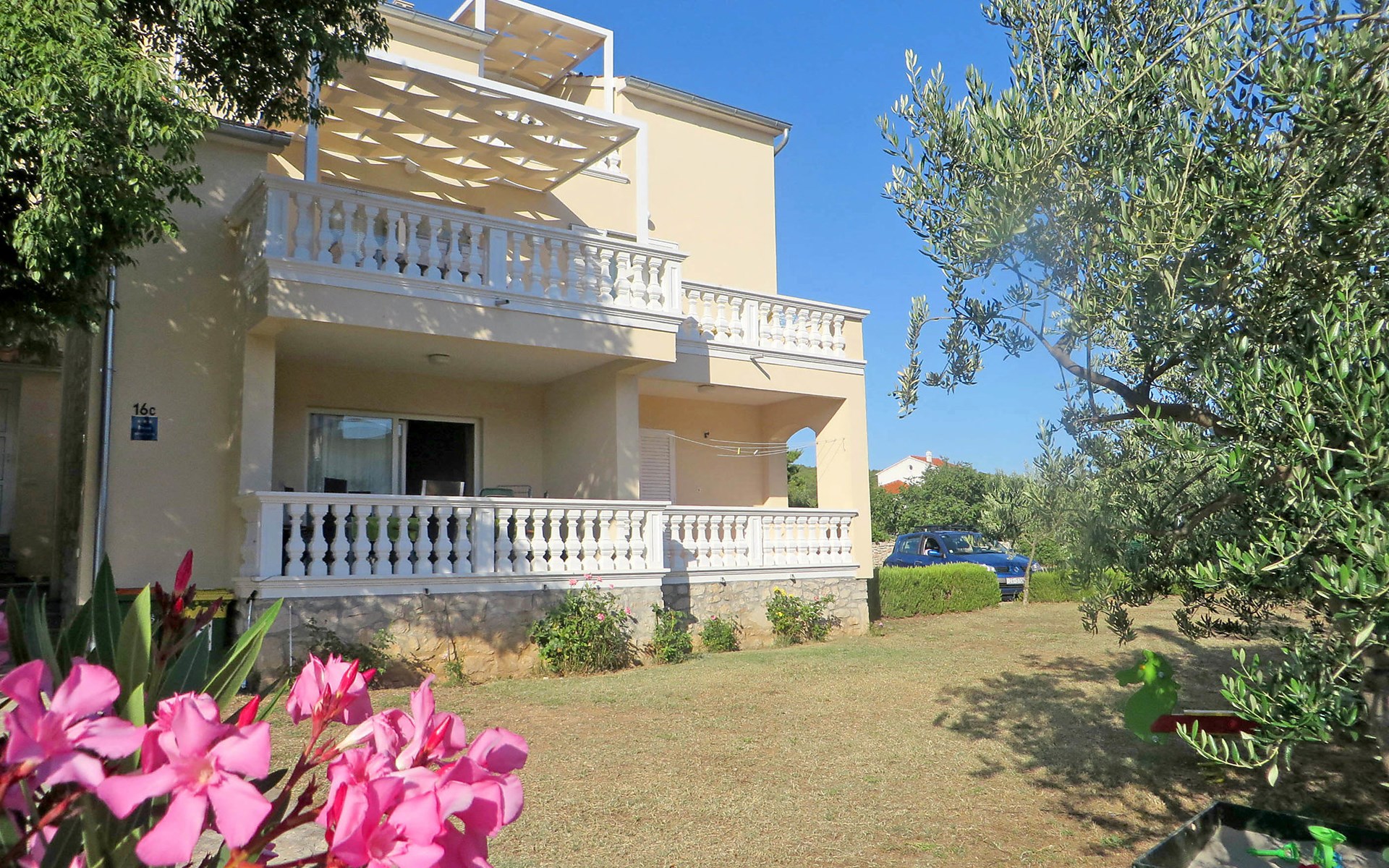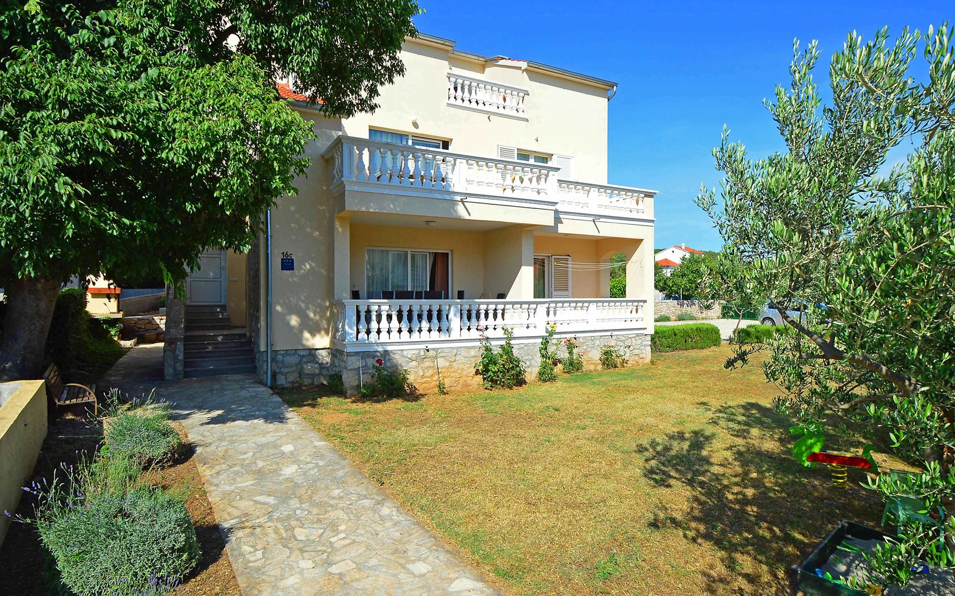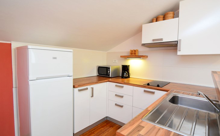 Sovlje 5 km von Vodice: Dreifamilienhaus "Cvita". Ruhige, sonnige, erhöhte Lage, 300 m vom Meer, 300 m vom Strand. Zur Mitbenutzung: Grundstück 680 m2 (eingezäunt). Gartenmöbel, Grill, Kinderspielplatz (Schaukel, Sandkasten). Im Hause: Internetzugang. Parkplatz beim Haus auf dem Grundstück. Einkaufsgeschäft 1.5 km, Restaurant, Café 80 m, Bushaltestelle 4.9 km, Kieselstrand, betonierter Strand 300 m.