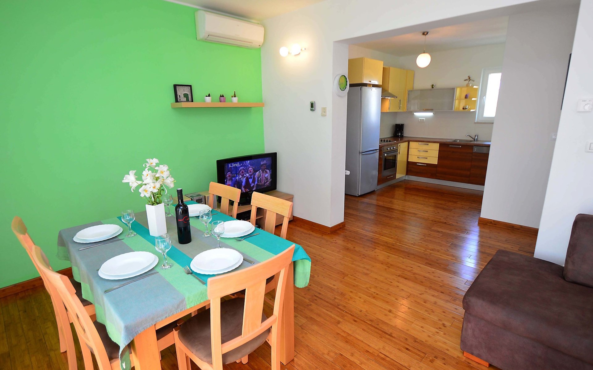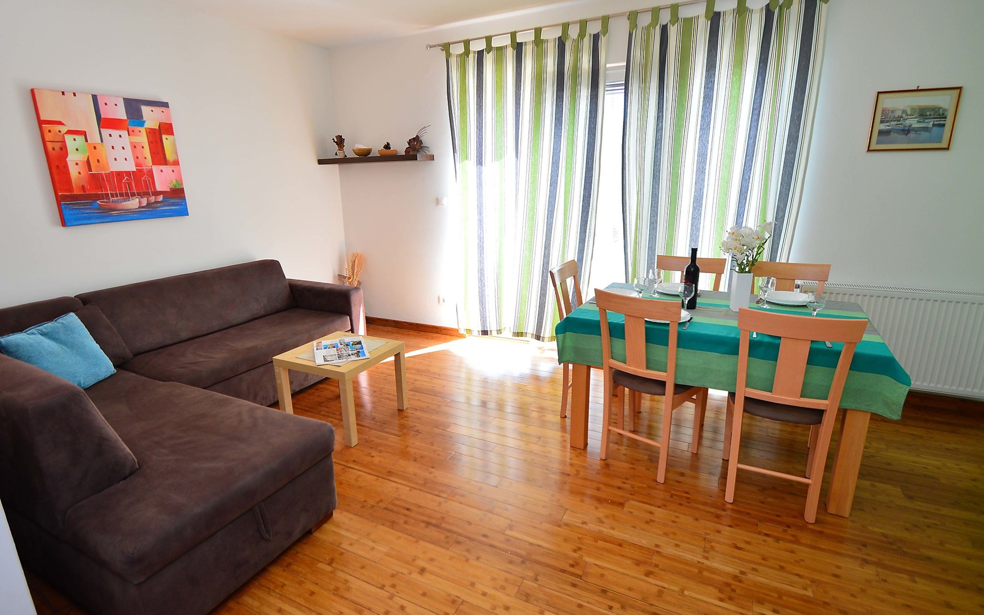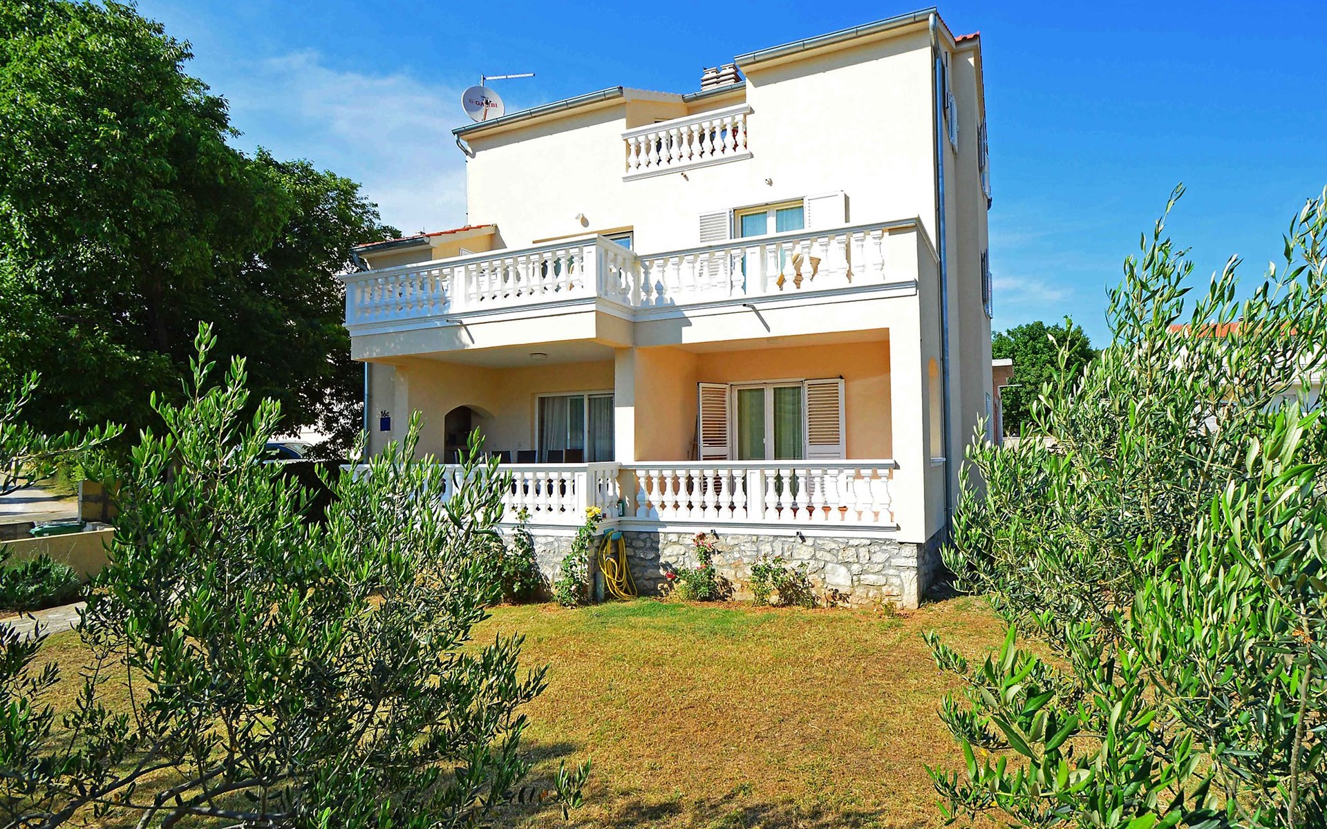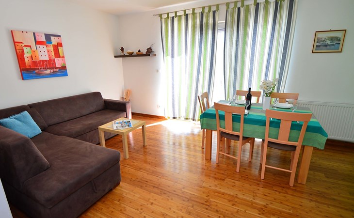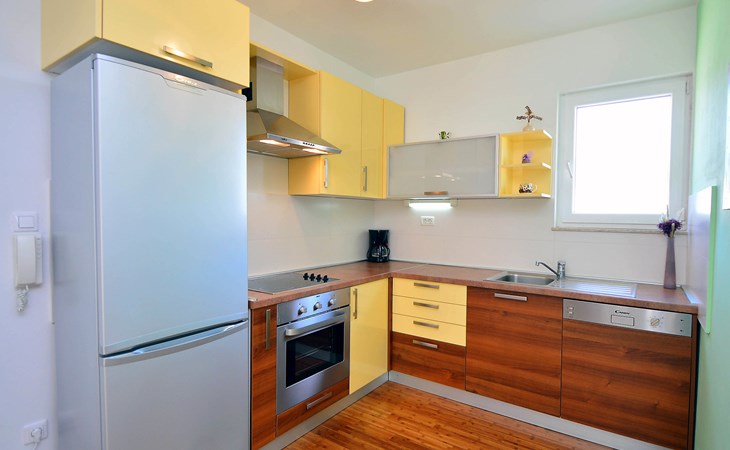 Sovlje 5 km von Vodice: Dreifamilienhaus "Cvita". Ruhige, sonnige, erhöhte Lage, 300 m vom Meer, 300 m vom Strand. Zur Mitbenutzung: Grundstück 680 m2 (eingezäunt). Gartenmöbel, Grill, Kinderspielplatz (Schaukel, Sandkasten). Im Hause: Internetzugang. Parkplatz beim Haus auf dem Grundstück. Einkaufsgeschäft 1.5 km, Restaurant, Café 80 m, Bushaltestelle 4.9 km, Kieselstrand, betonierter Strand 300 m.